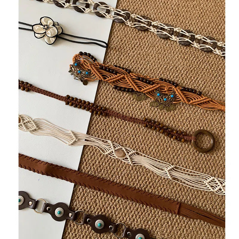 Bohemian woven beaded waist rope women's ethnic style splicing with skirt versatile casual tassel thin belt tide