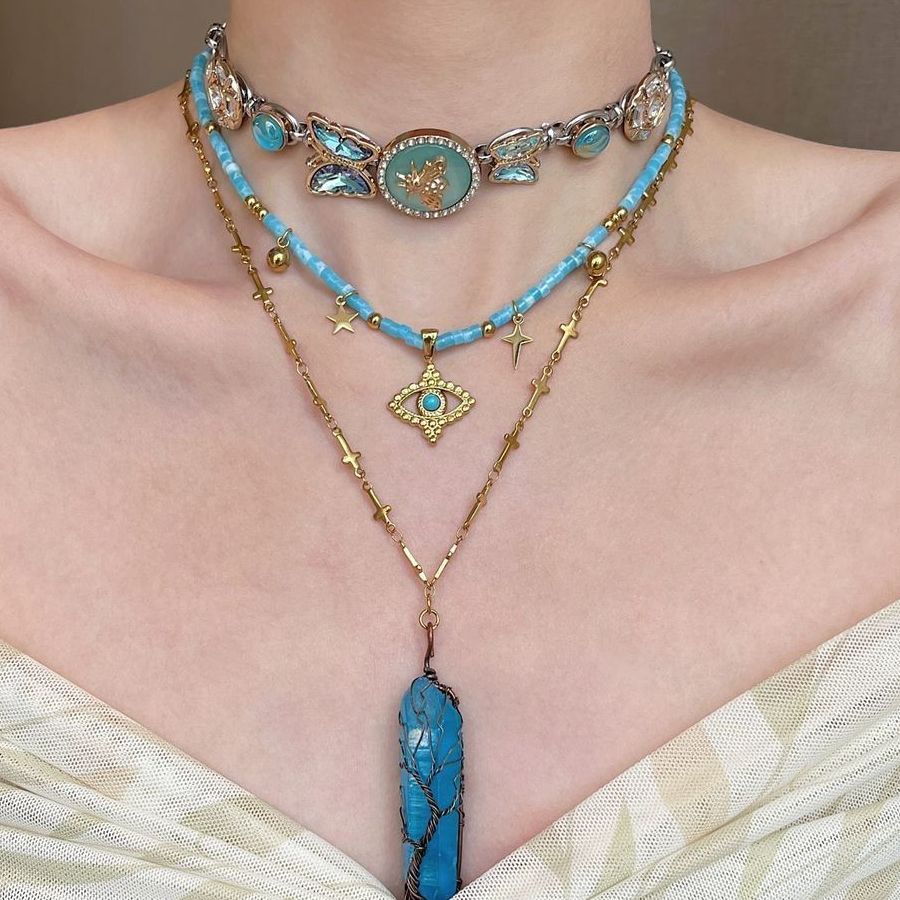 Devil's eye butterfly beaded necklace choker stacked wearing babes