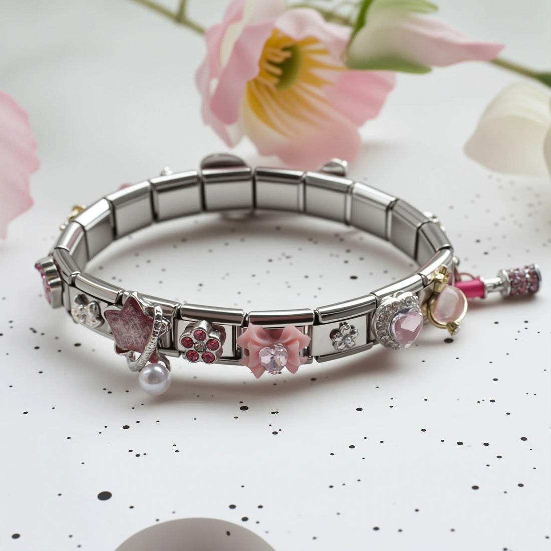 Stainless steel Italian module bracelet dream pink rhinestone DIY elastic bracelet Italian charms