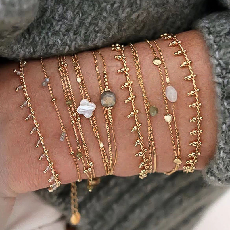 European and American stainless steel stacked bracelet set, four-leaf clover natural shell pendant, simple design, jewelry set, women