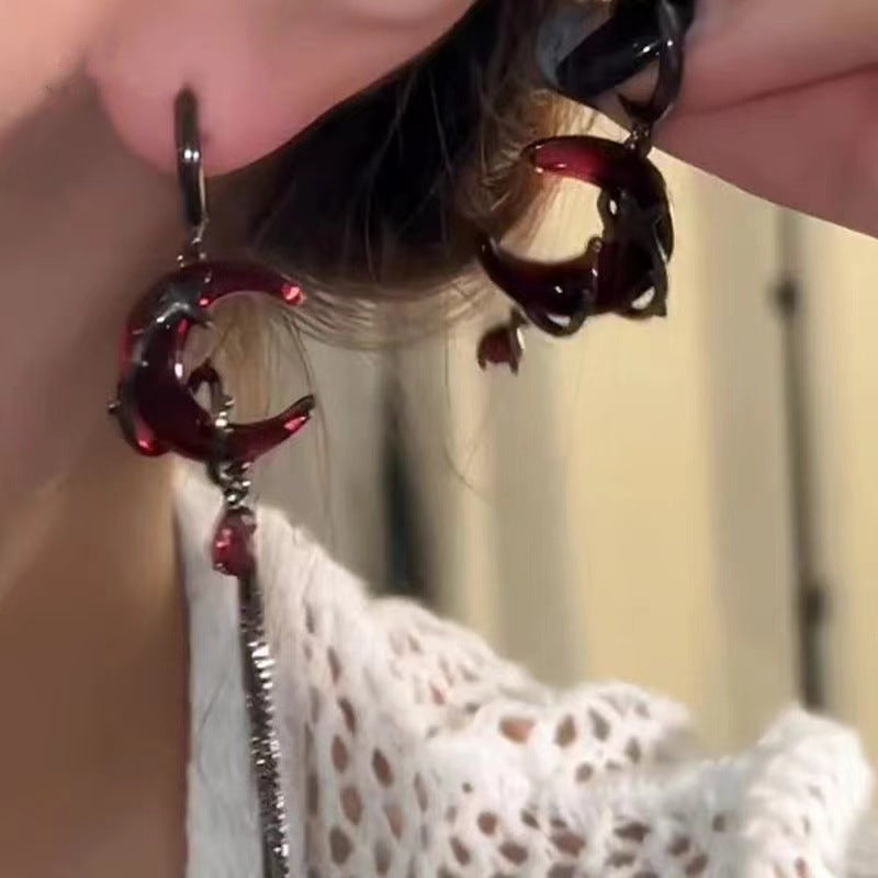 Dark Asymmetrical Crescent Earrings Starlight Ear Buckles Women's Sweet Cool Spice Girls Merry Su Pendant Earrings Earrings Wholesale
