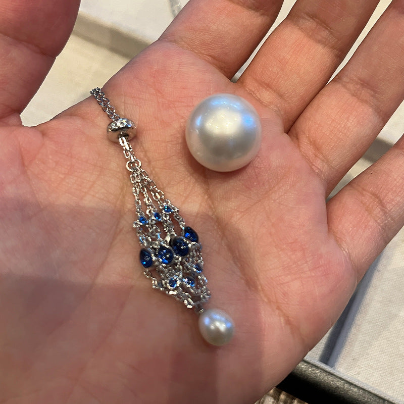 Live broadcast explosive 925 silver lace white crystal necklace lace tassel collarbone chain French court style necklace