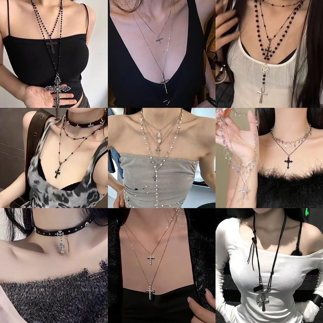 Y2K heavy industry cross necklace millennial babes sweet cool subculture wandering wasteland punk goth niche tide