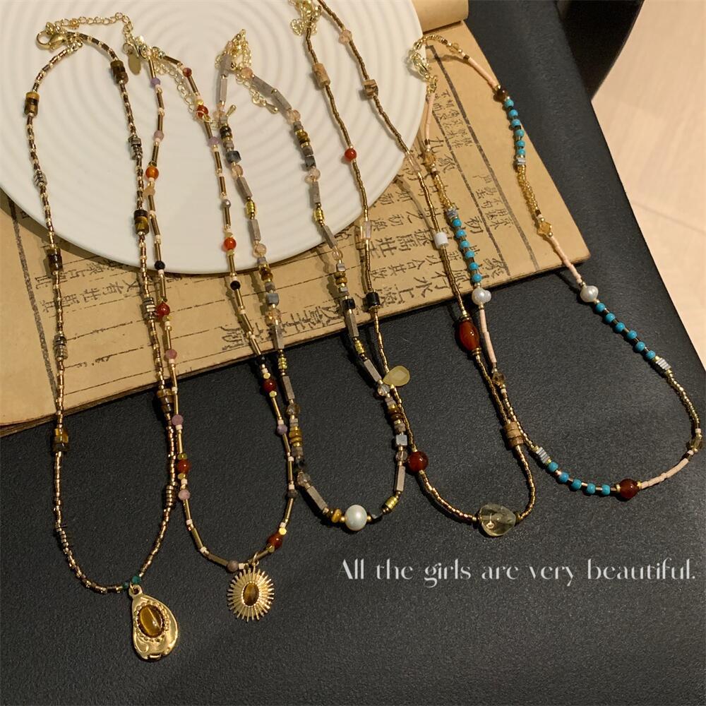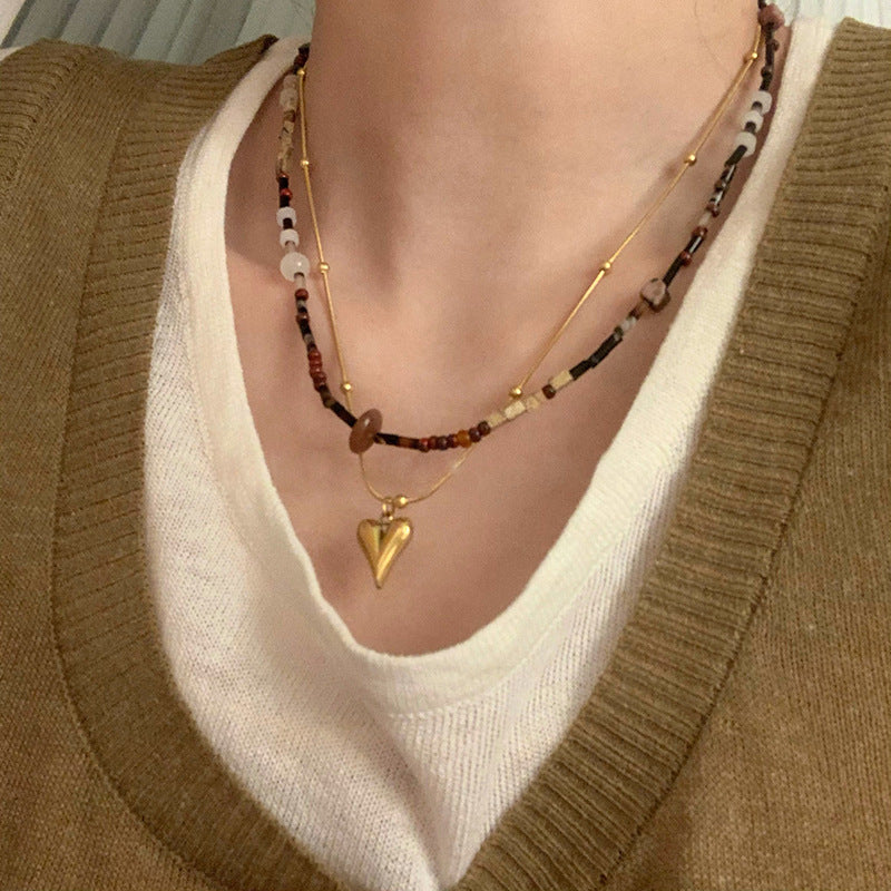 Retro beaded necklace collection love pendant necklace, temperament stacked collarbone chain women's 2023 new ins style