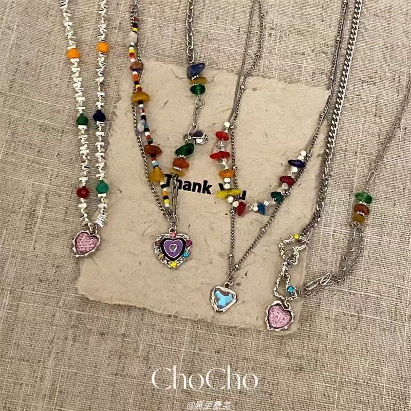 Color gravel love necklace women's summer niche design sense collarbone chain sweet cool Spice girl style neck chain accessories