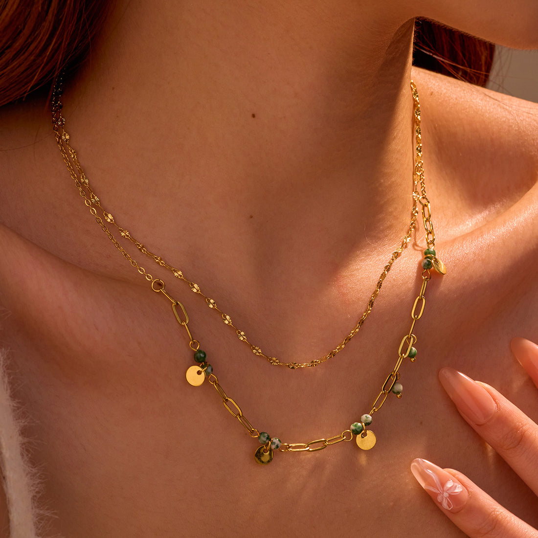 new products niche high-end stainless steel necklace natural stone double-layer pendant women's titanium steel collarbone chain