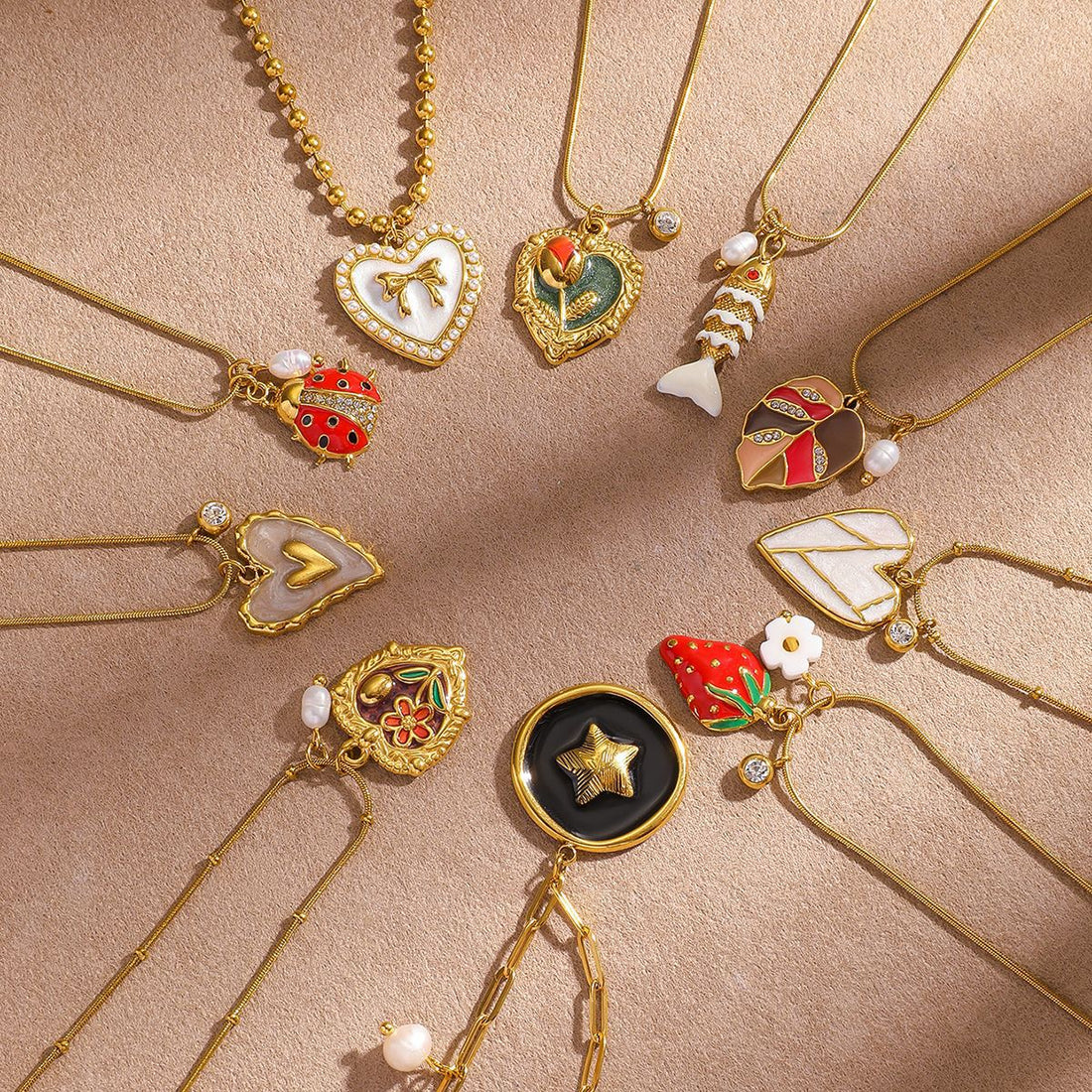 MYYA European and American stainless steel non-fading necklace dripping oil love strawberry ladybug pendant neck chain plated with 18k gold necklace
