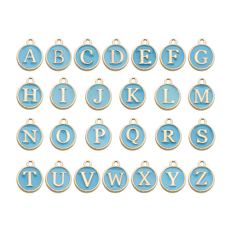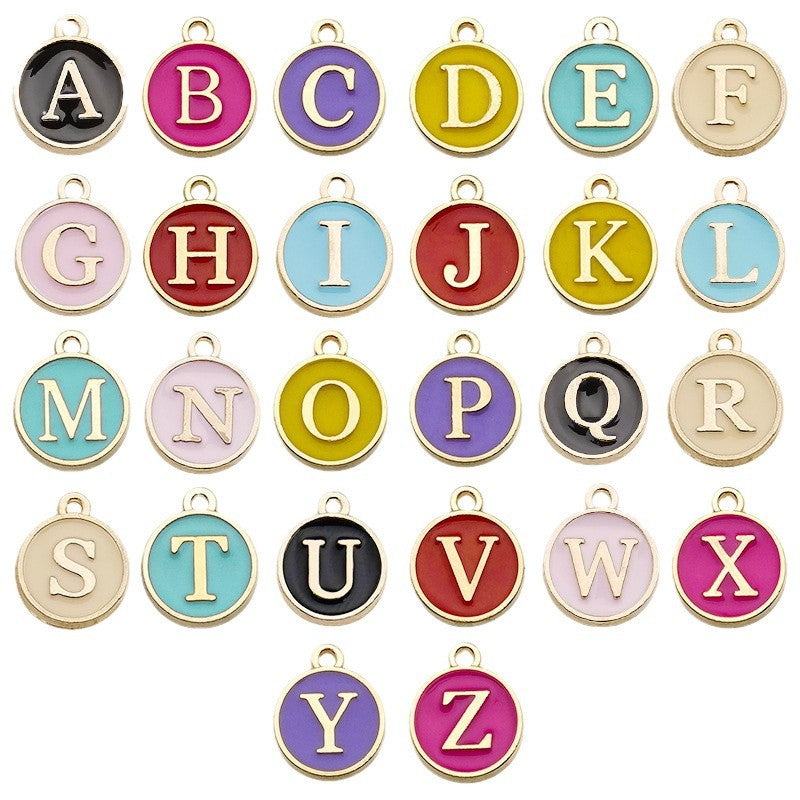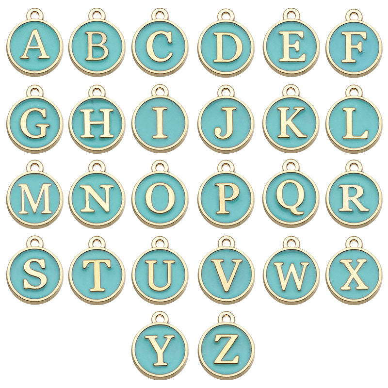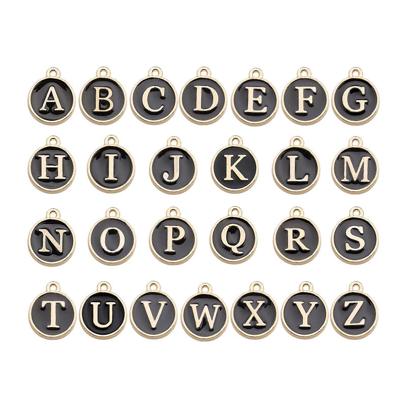 1 DIY jewelry accessories, double-sided oil drip bracelet, earrings, small pendant, oil drip 26 English letters alloy pendant