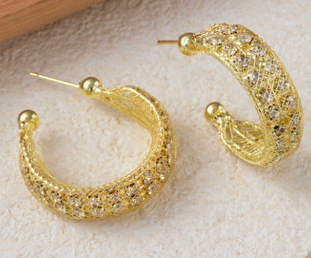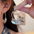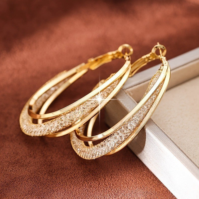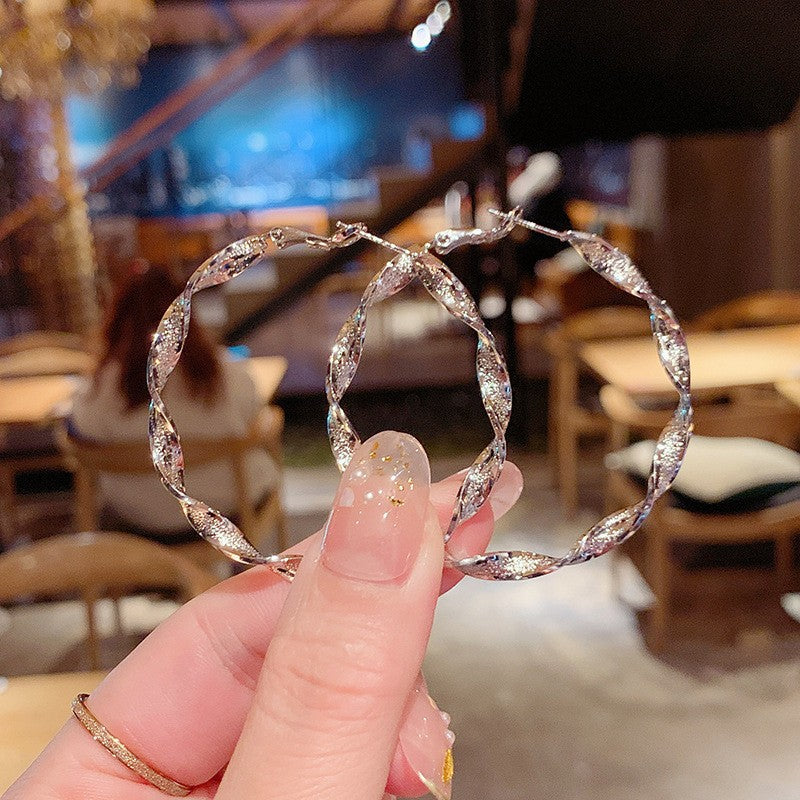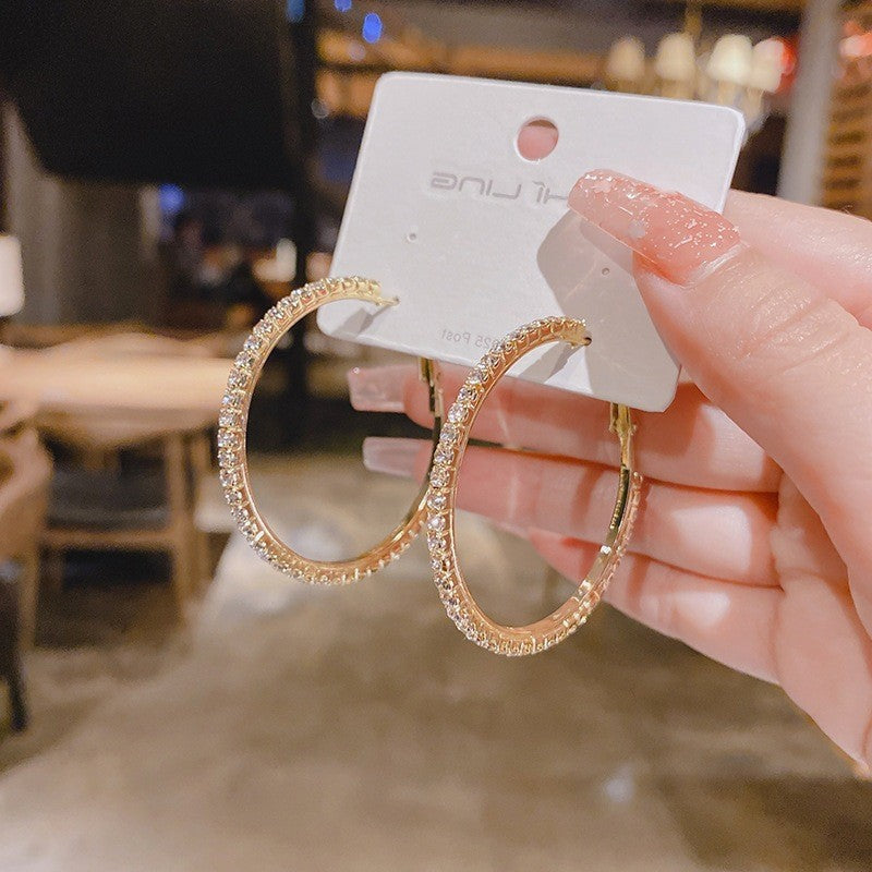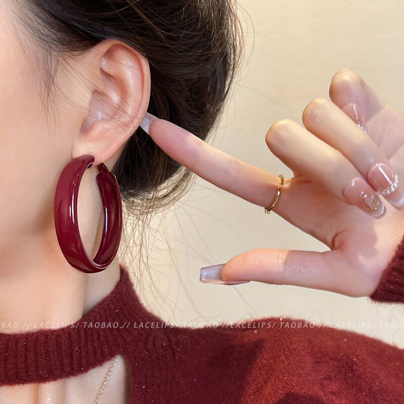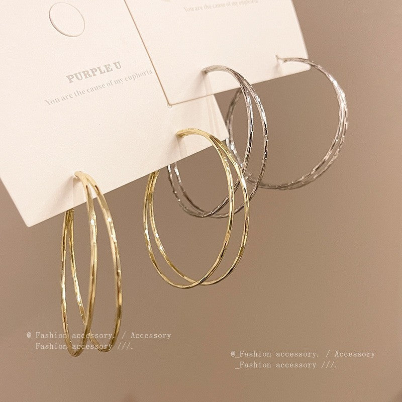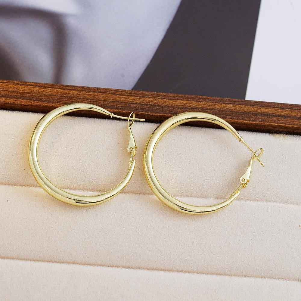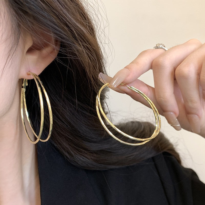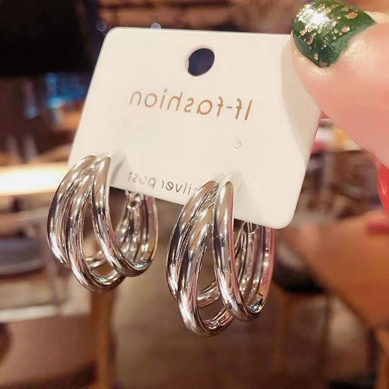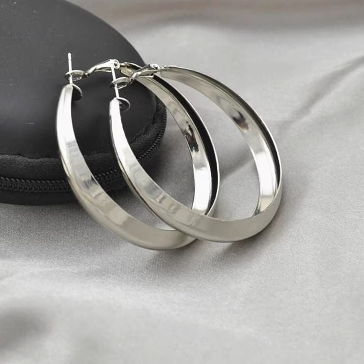 2025 Europe and the United States popular 925 silver needle plain ring earrings women's high sense foreign trade exaggerated earrings ear buckle ring wholesale