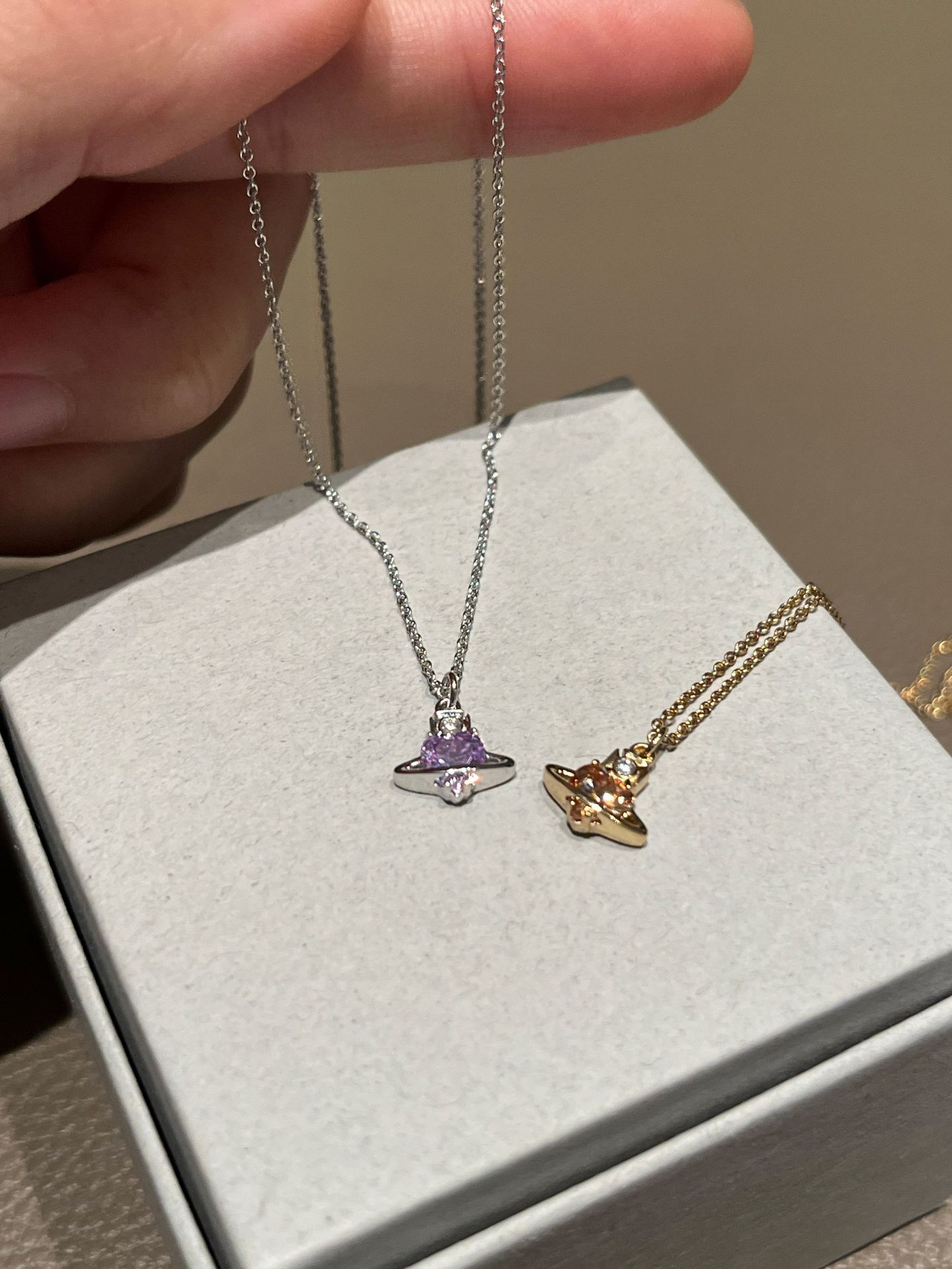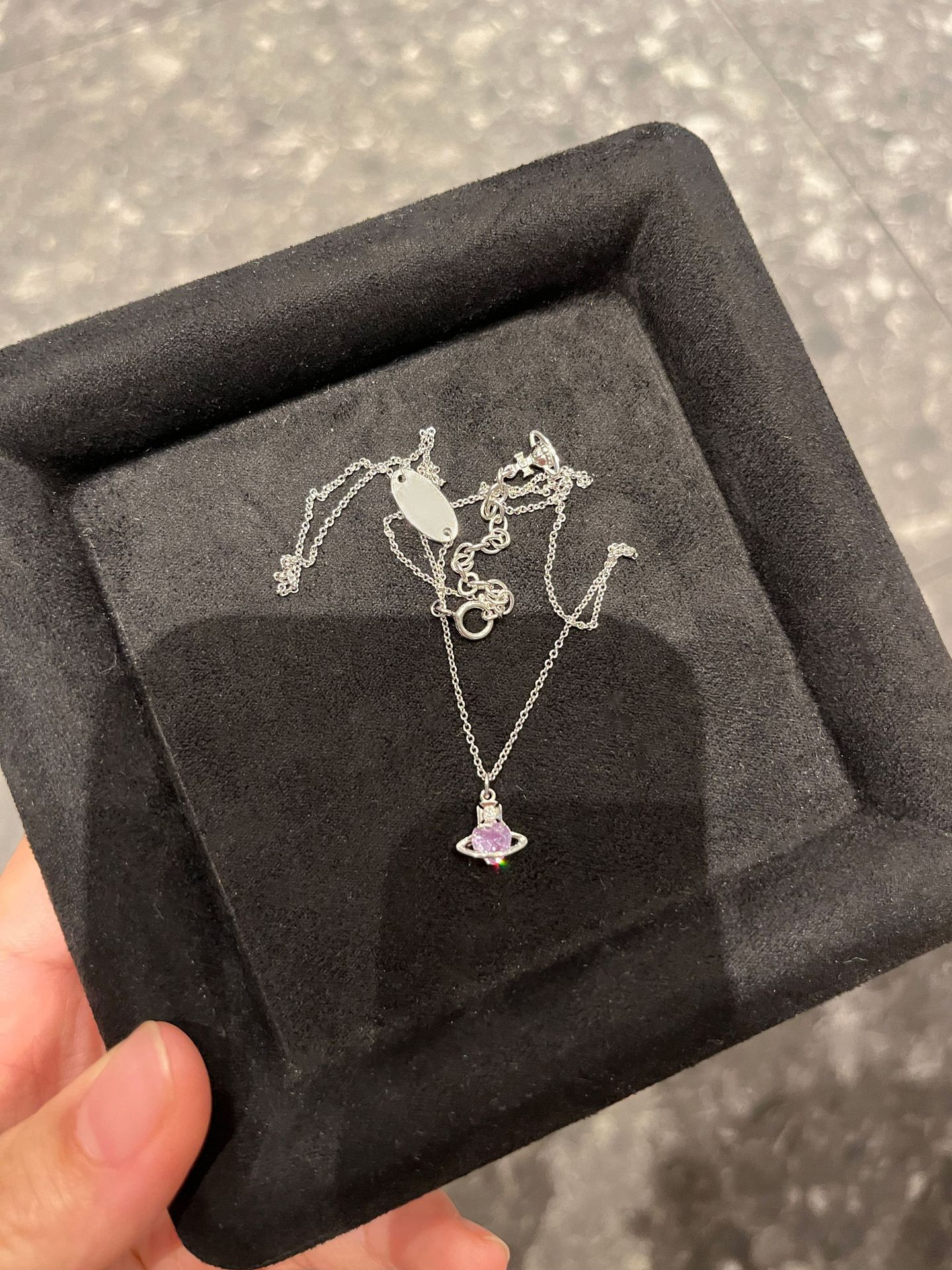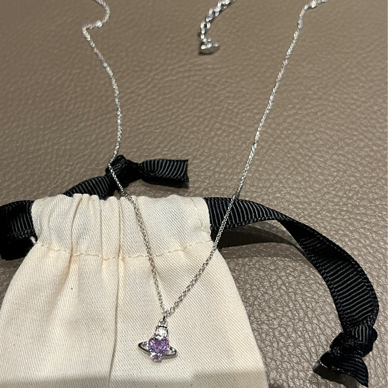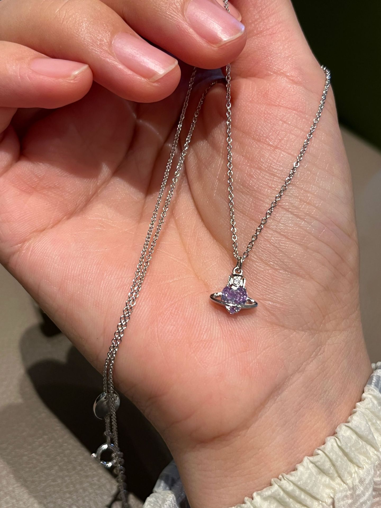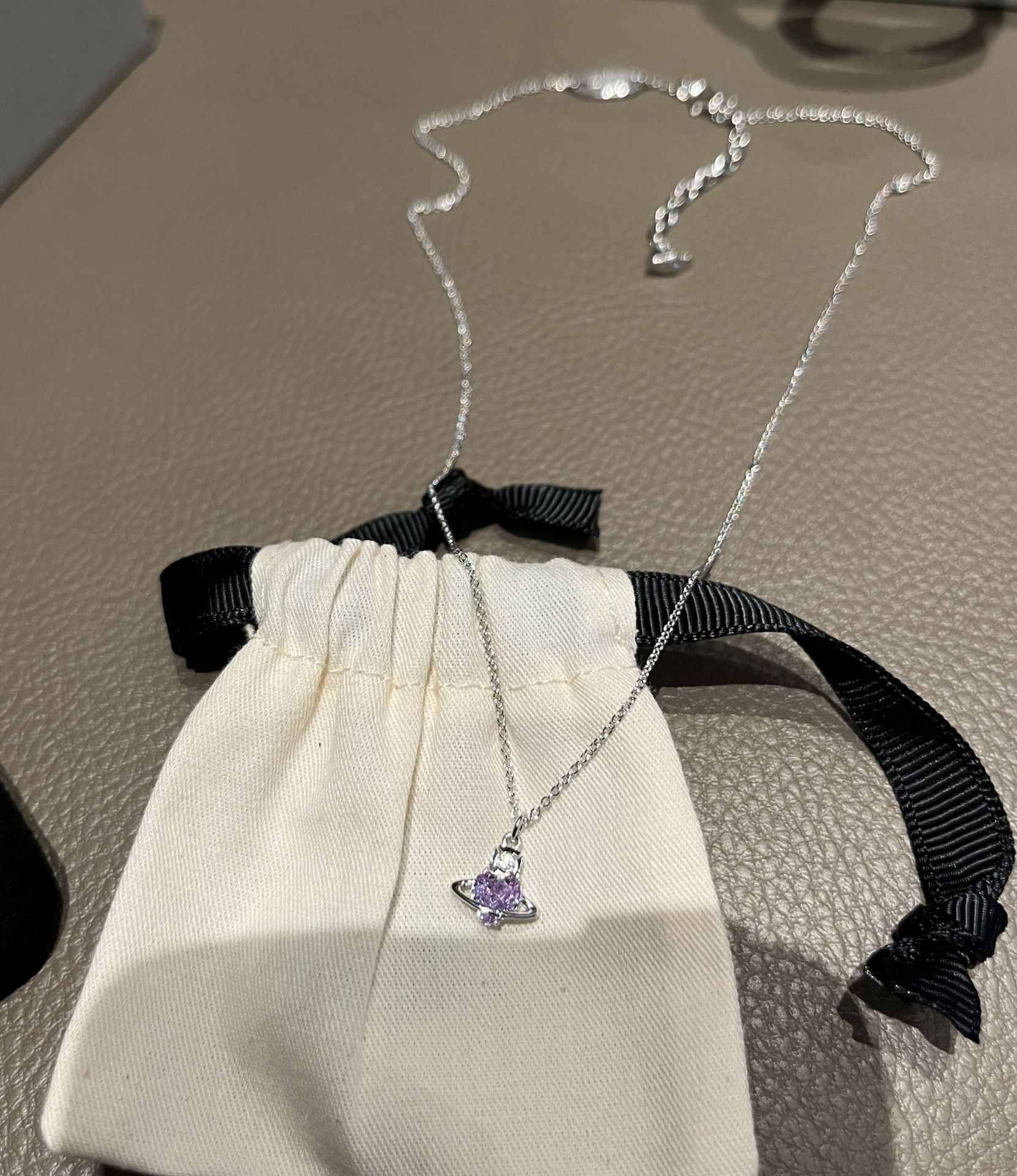 23 new Seiko West Queen Mother 925 silver heart Saturn necklace mini purple gold love diamond design