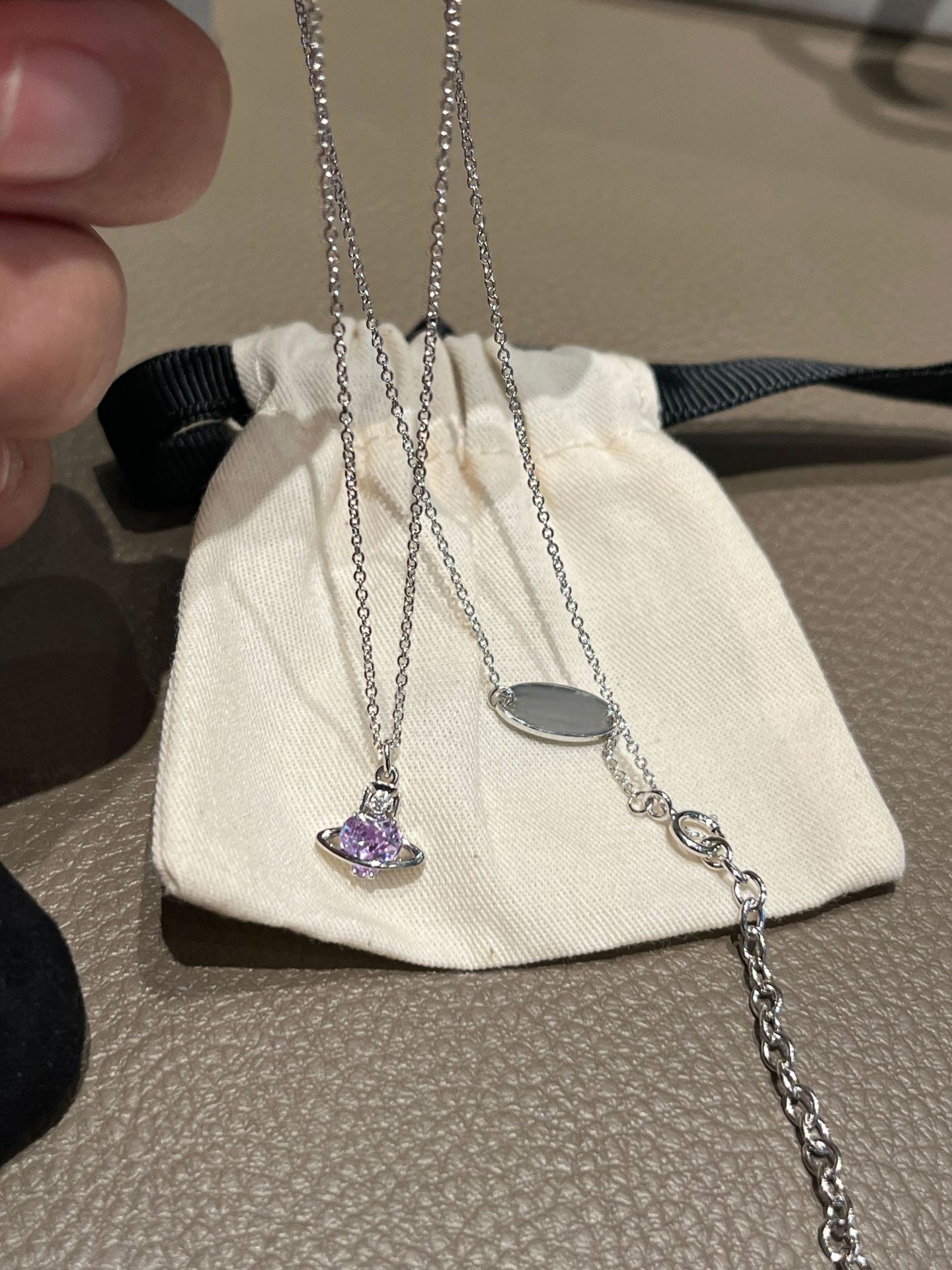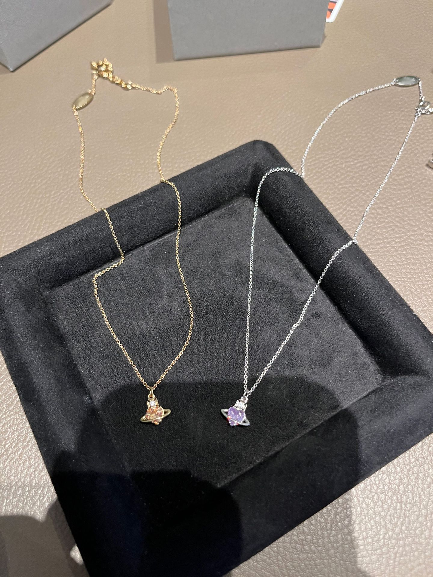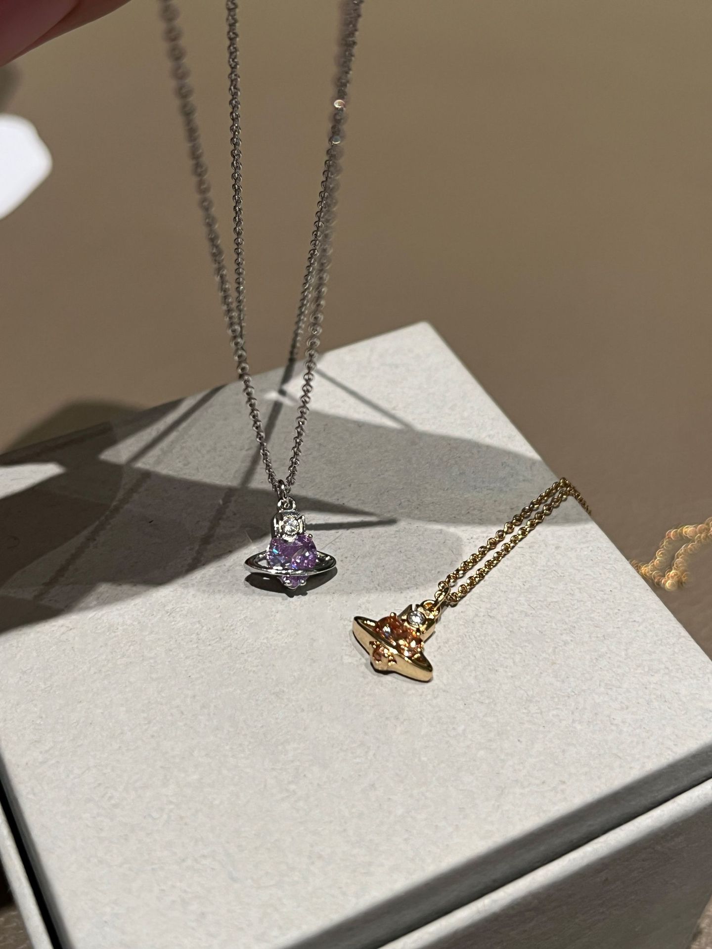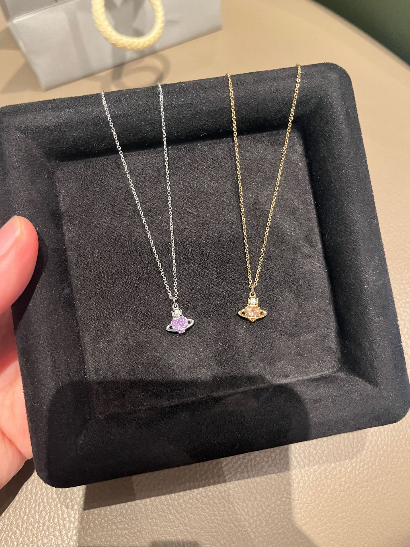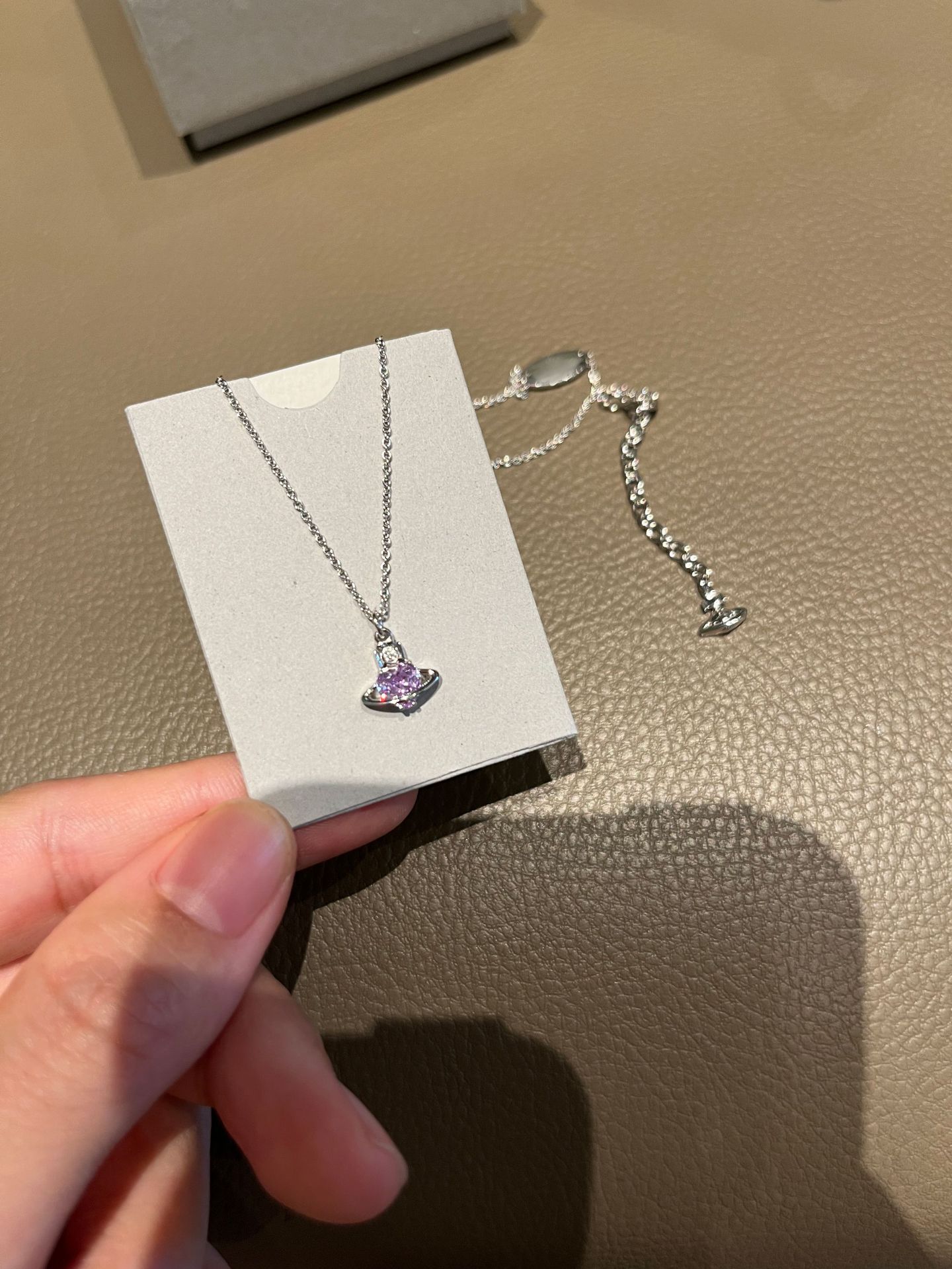 23 new Seiko West Queen Mother 925 silver heart Saturn necklace mini purple gold love diamond design