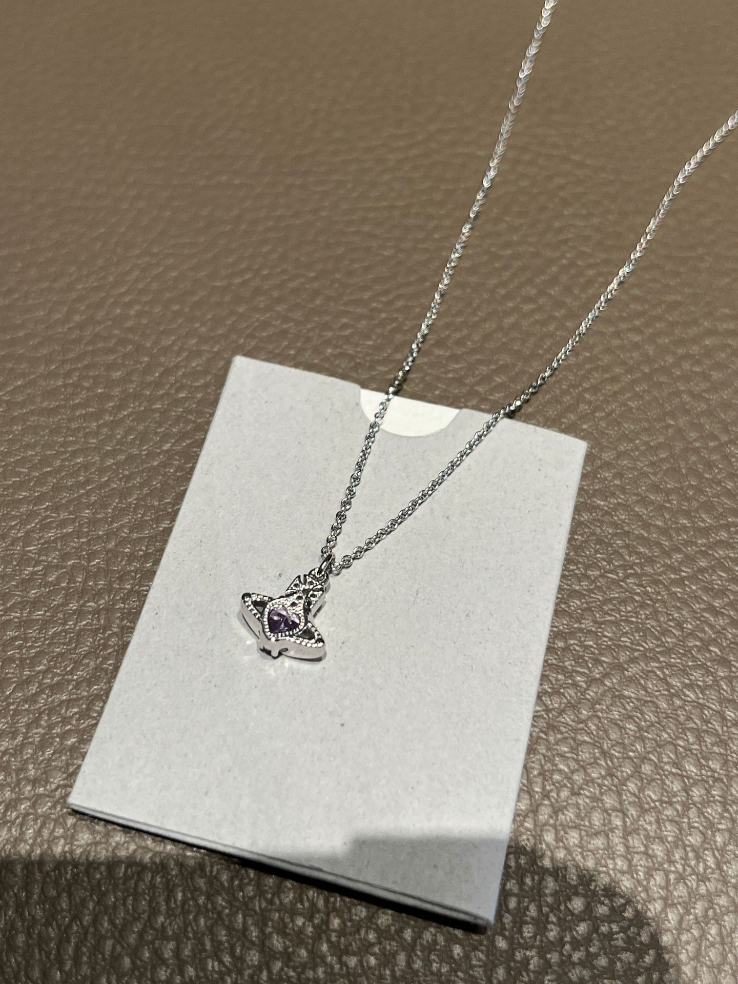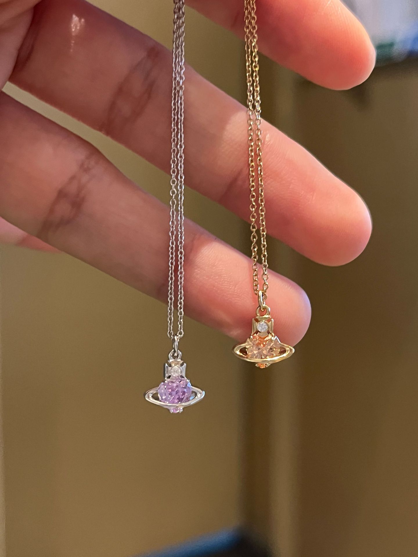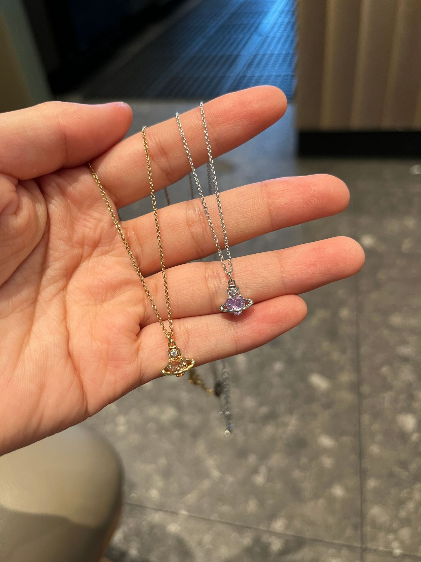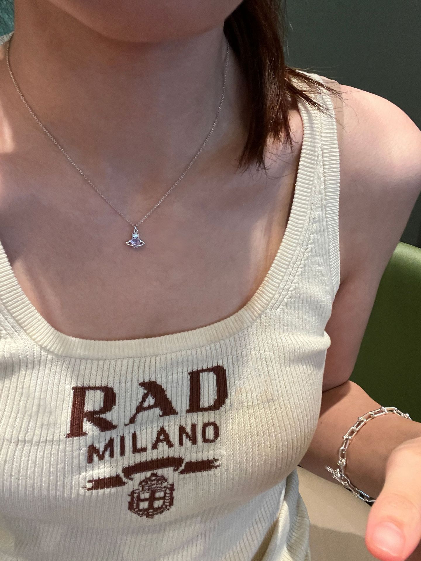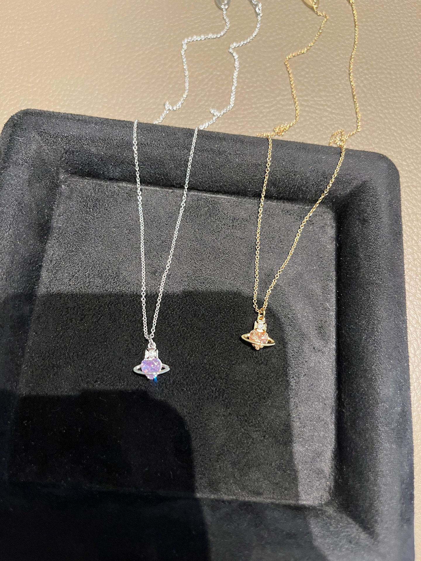 23 new Seiko West Queen Mother 925 silver heart Saturn necklace mini purple gold love diamond design