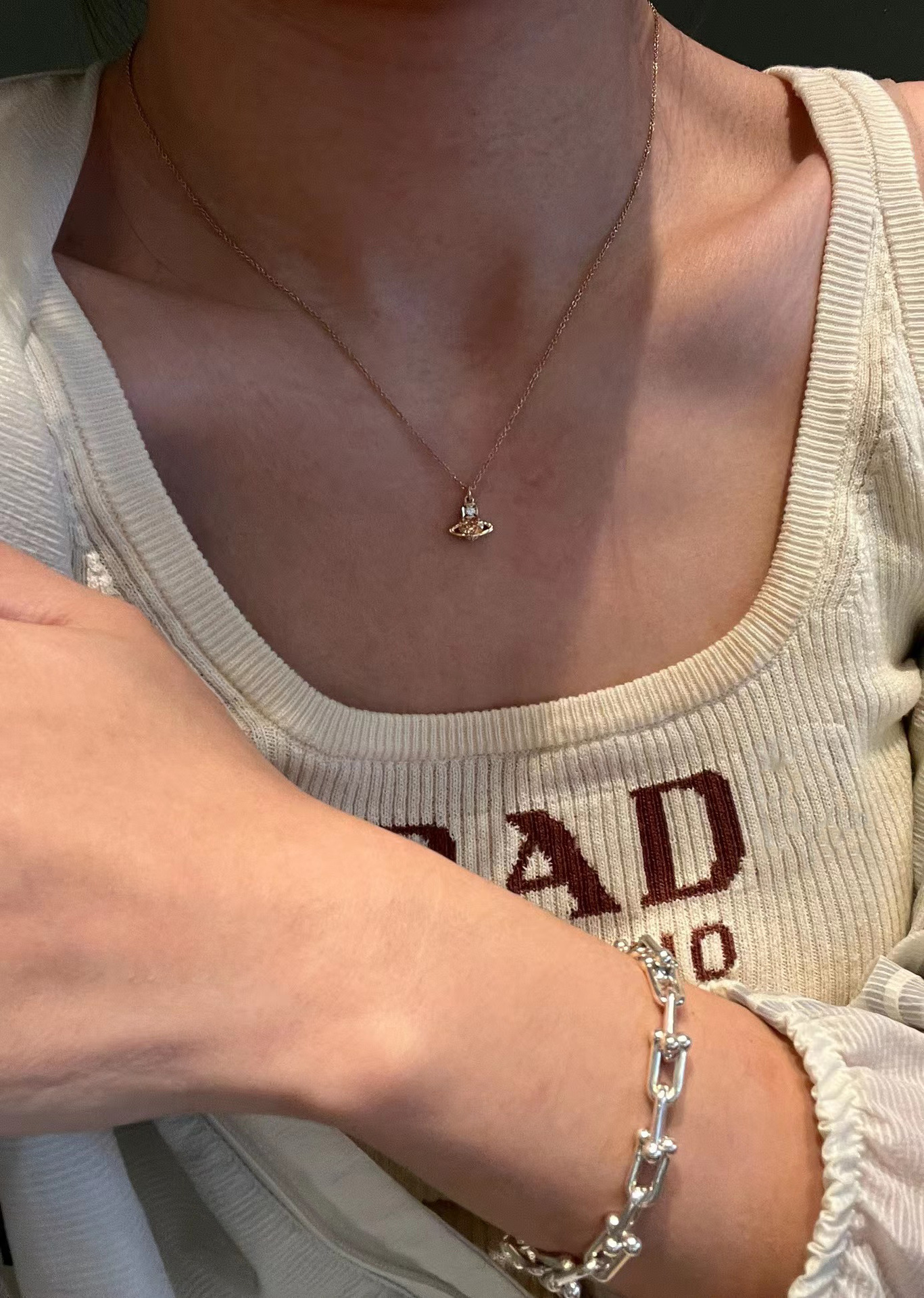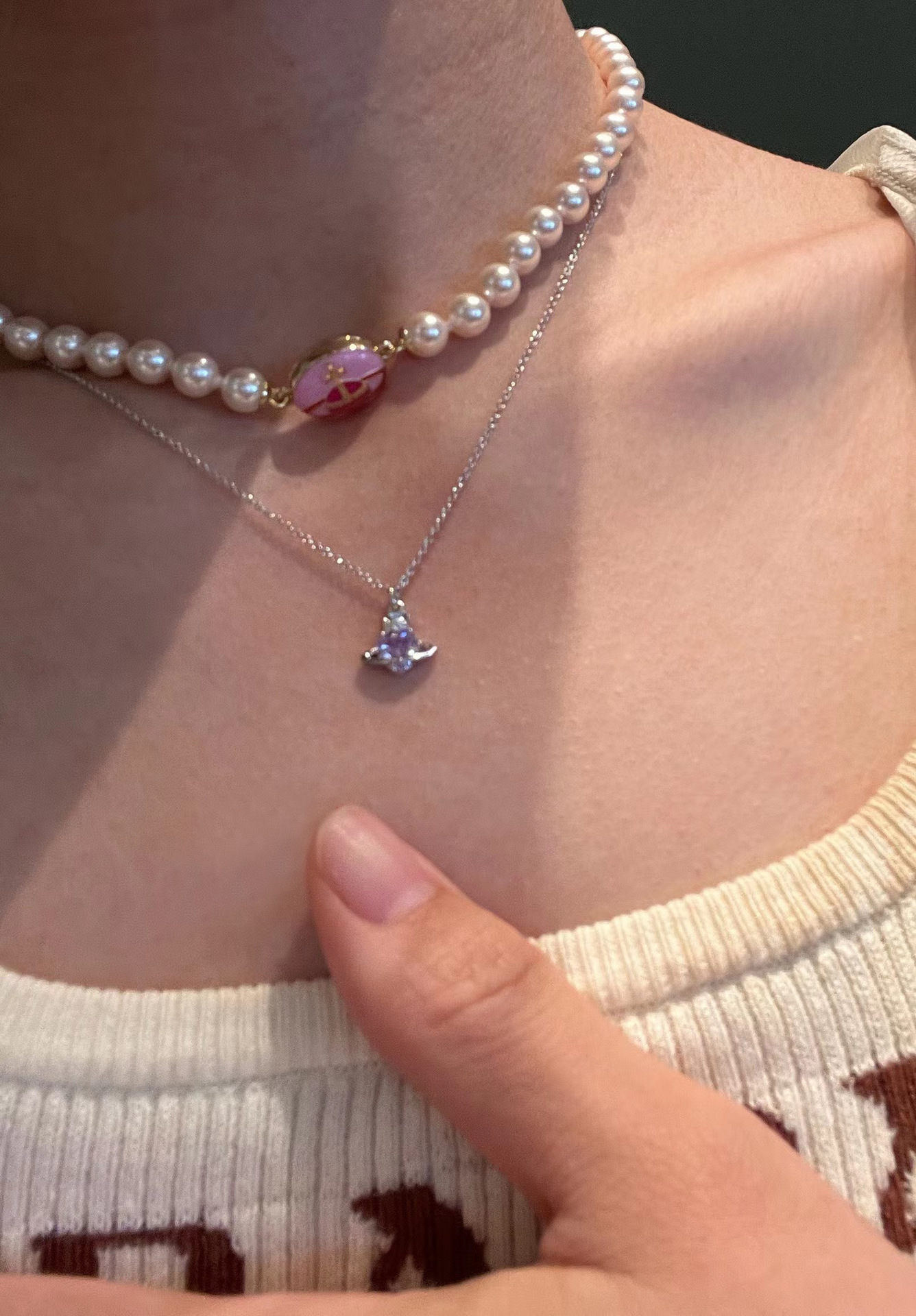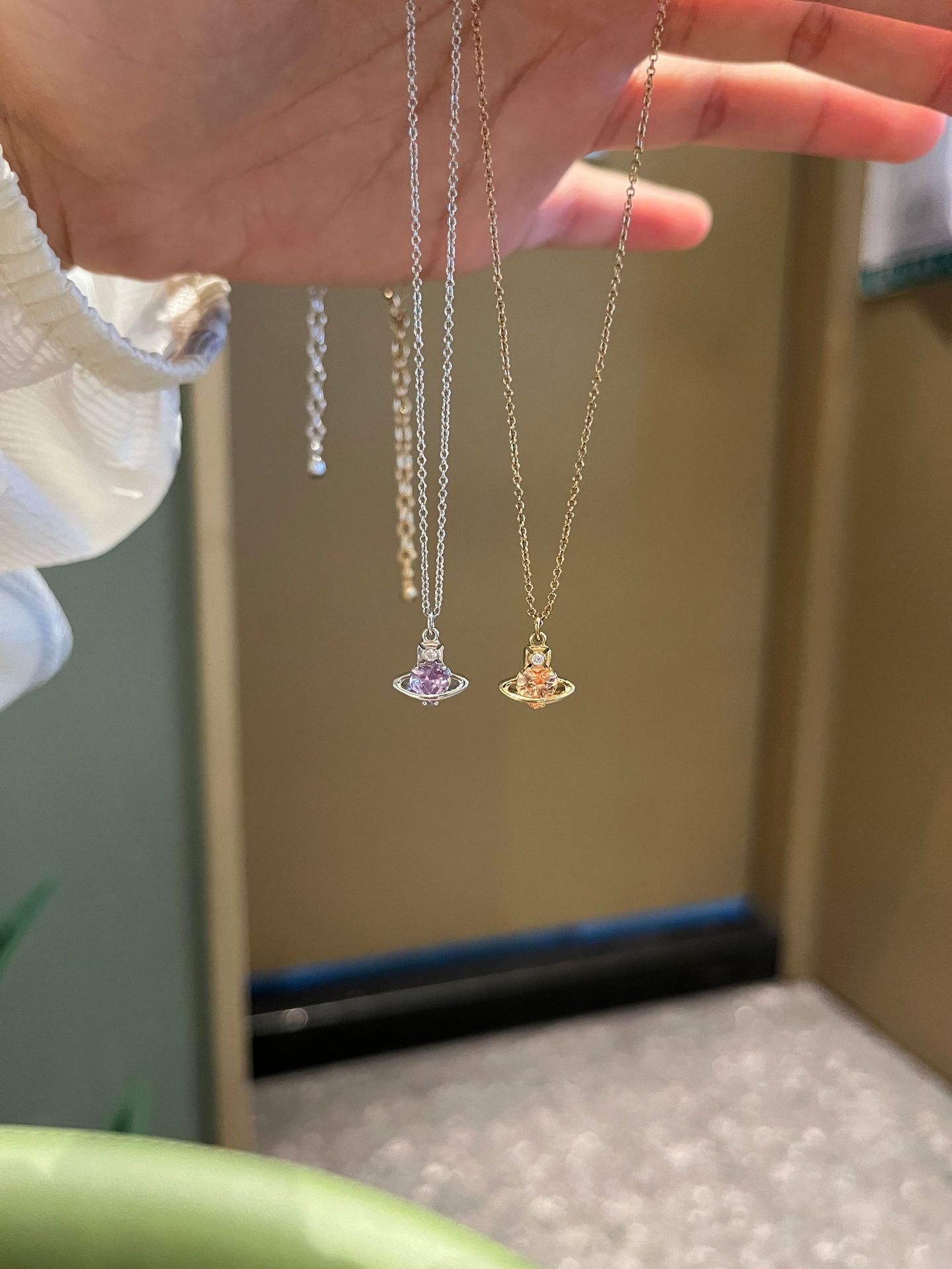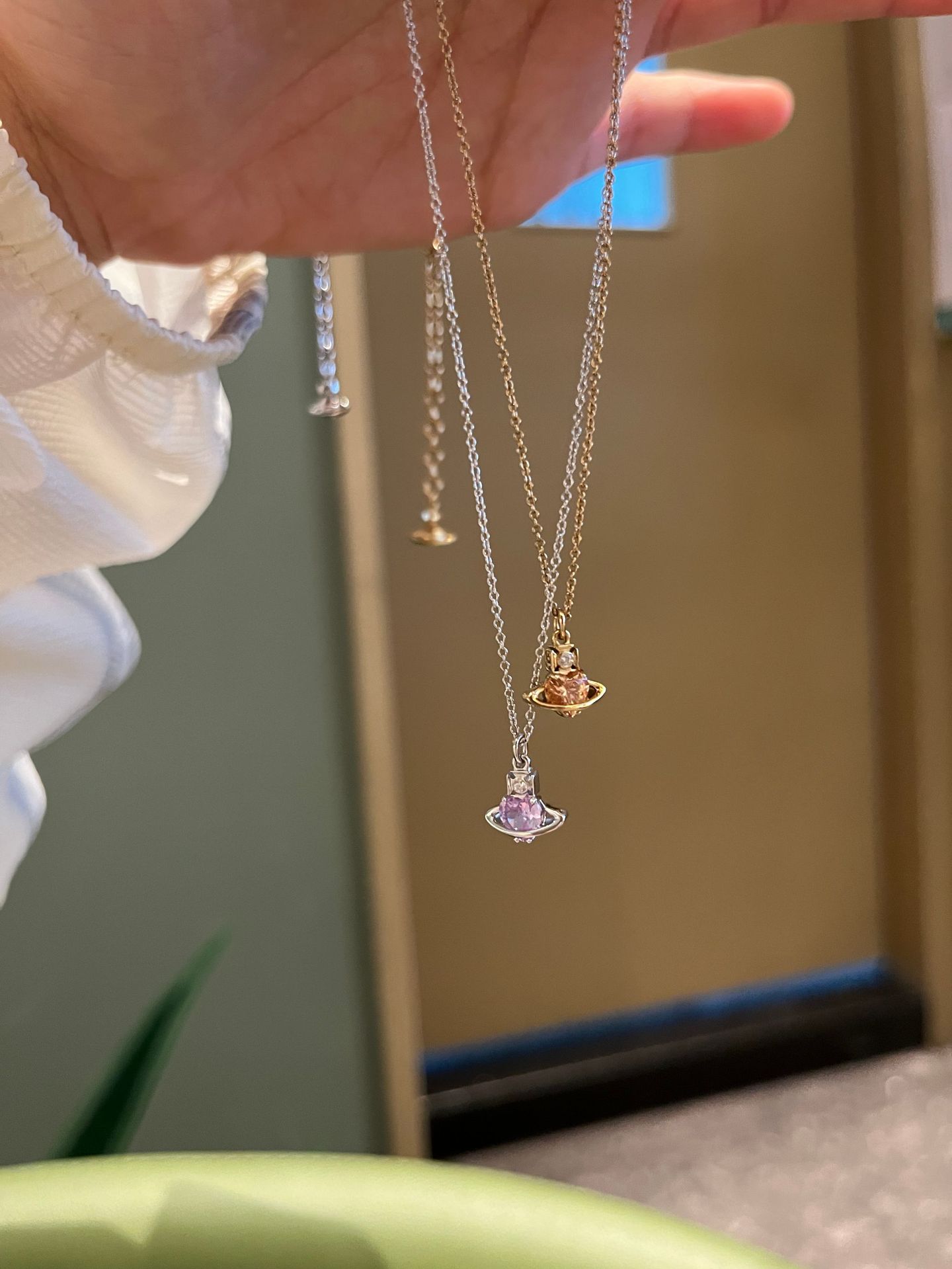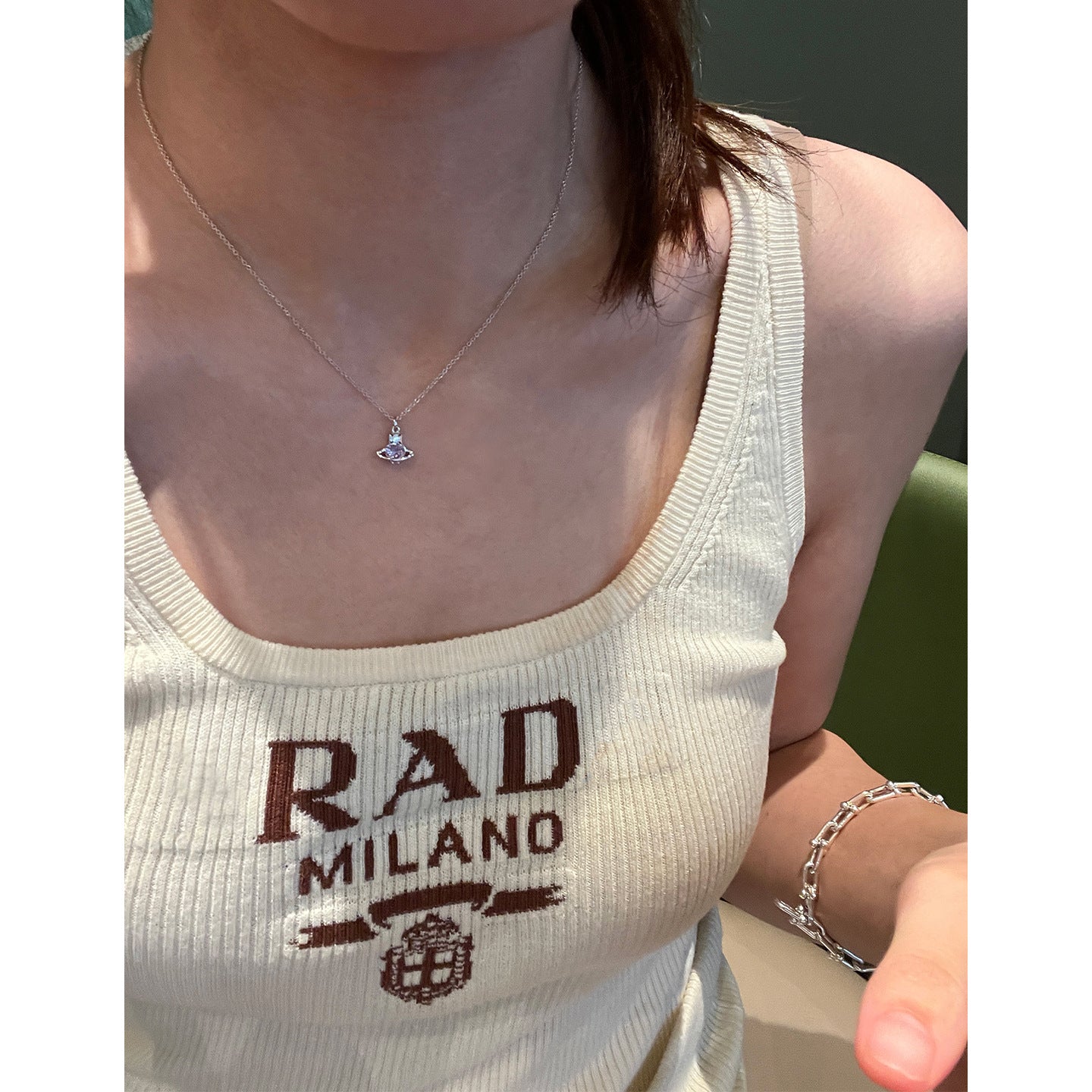 23 new Seiko West Queen Mother 925 silver heart Saturn necklace mini purple gold love diamond design