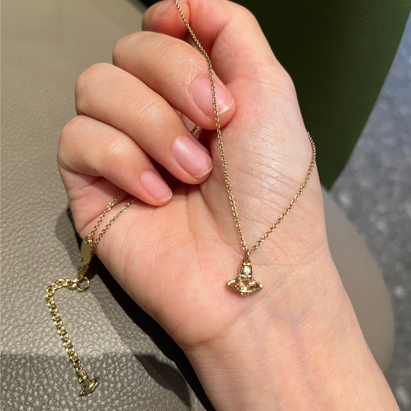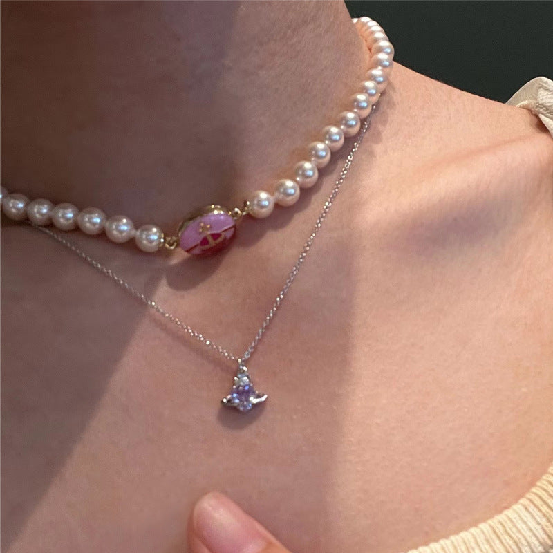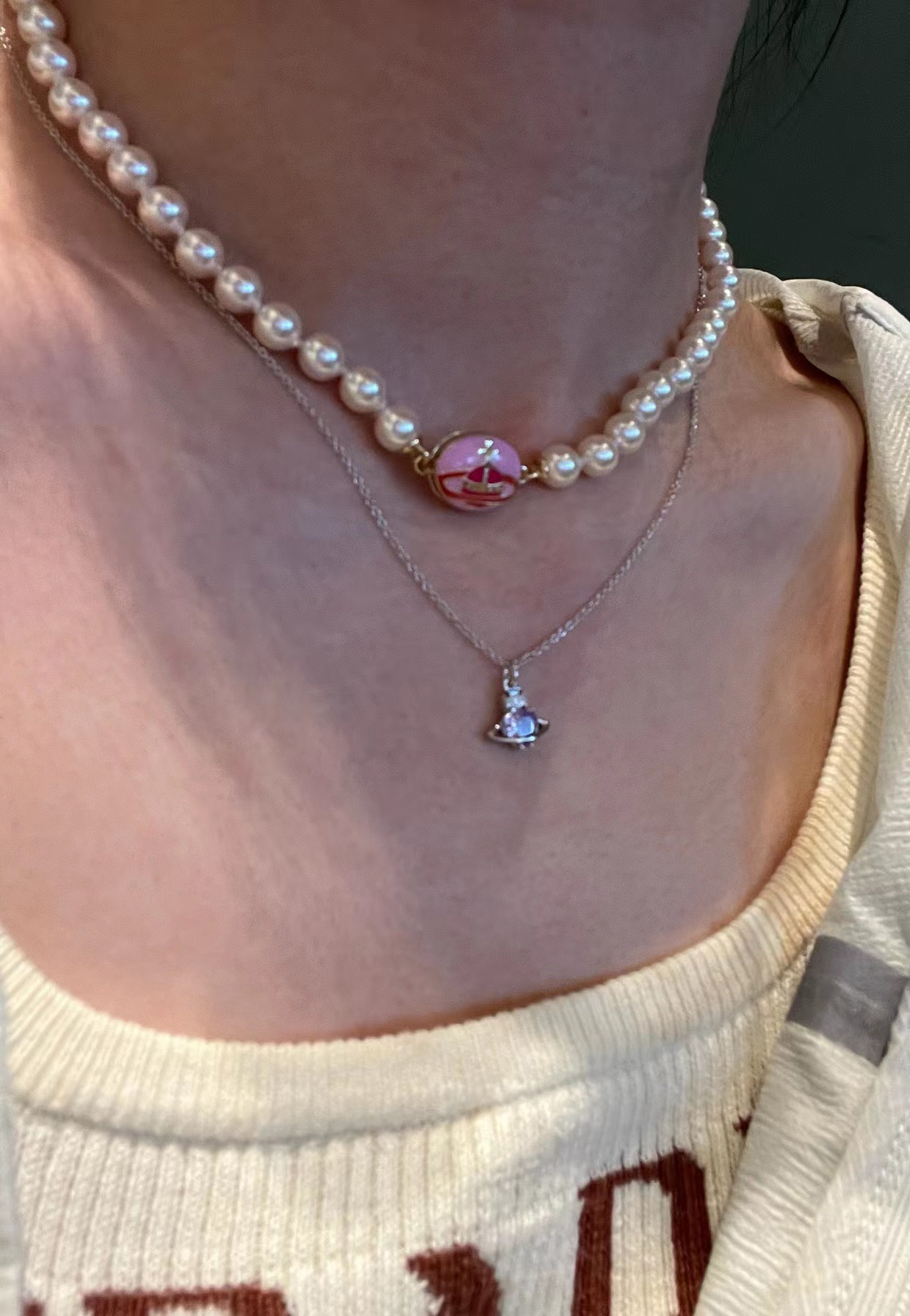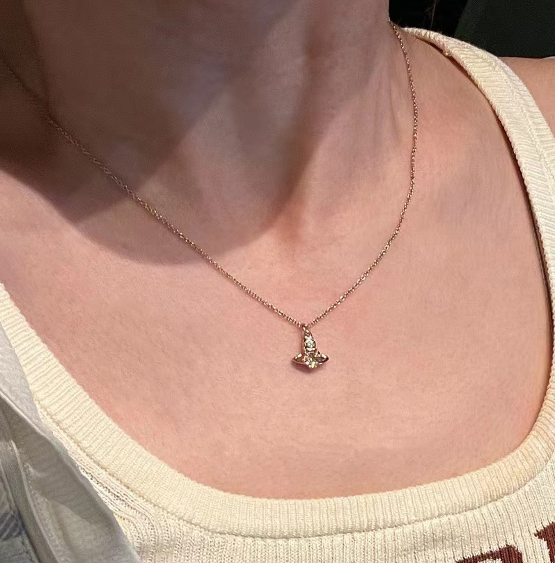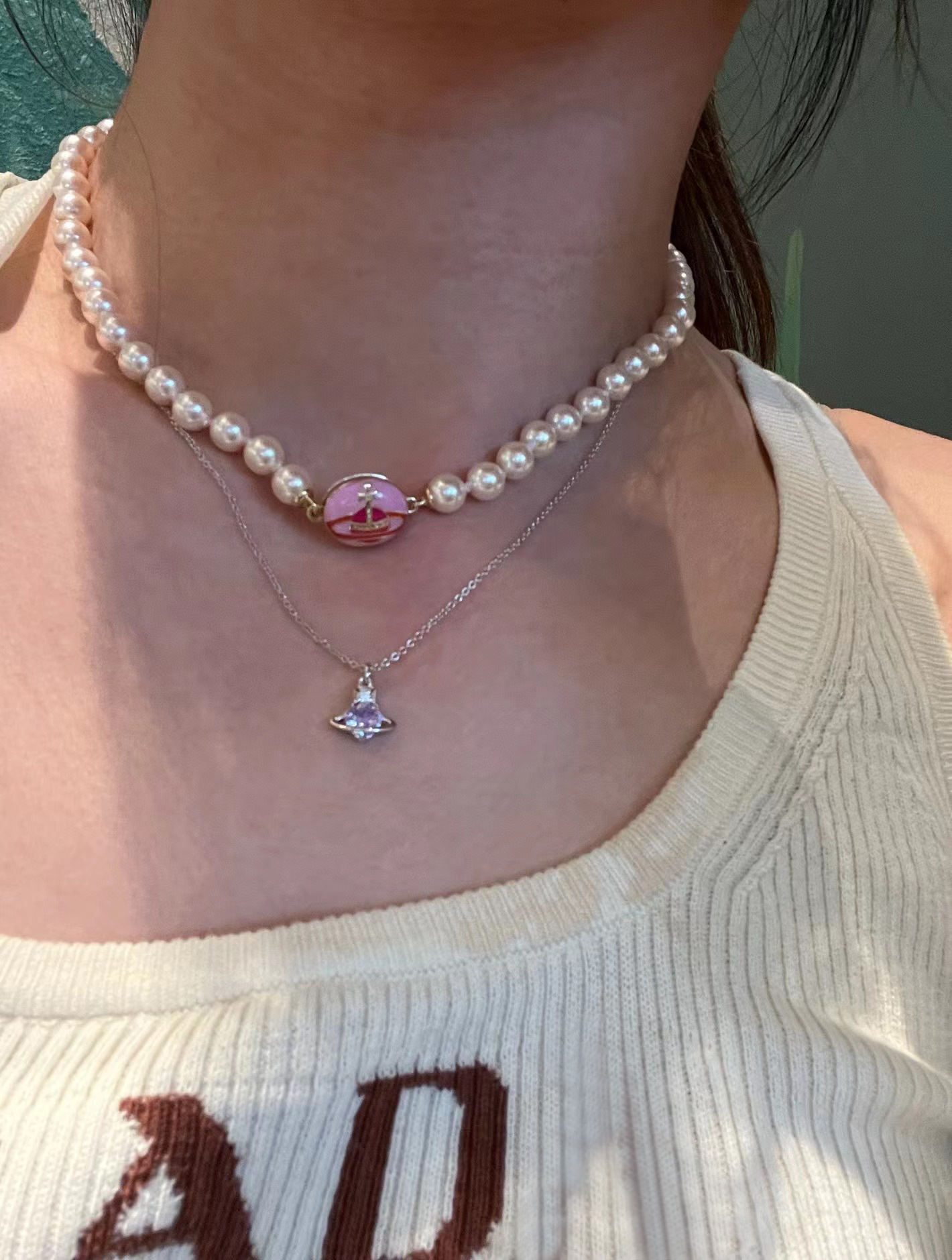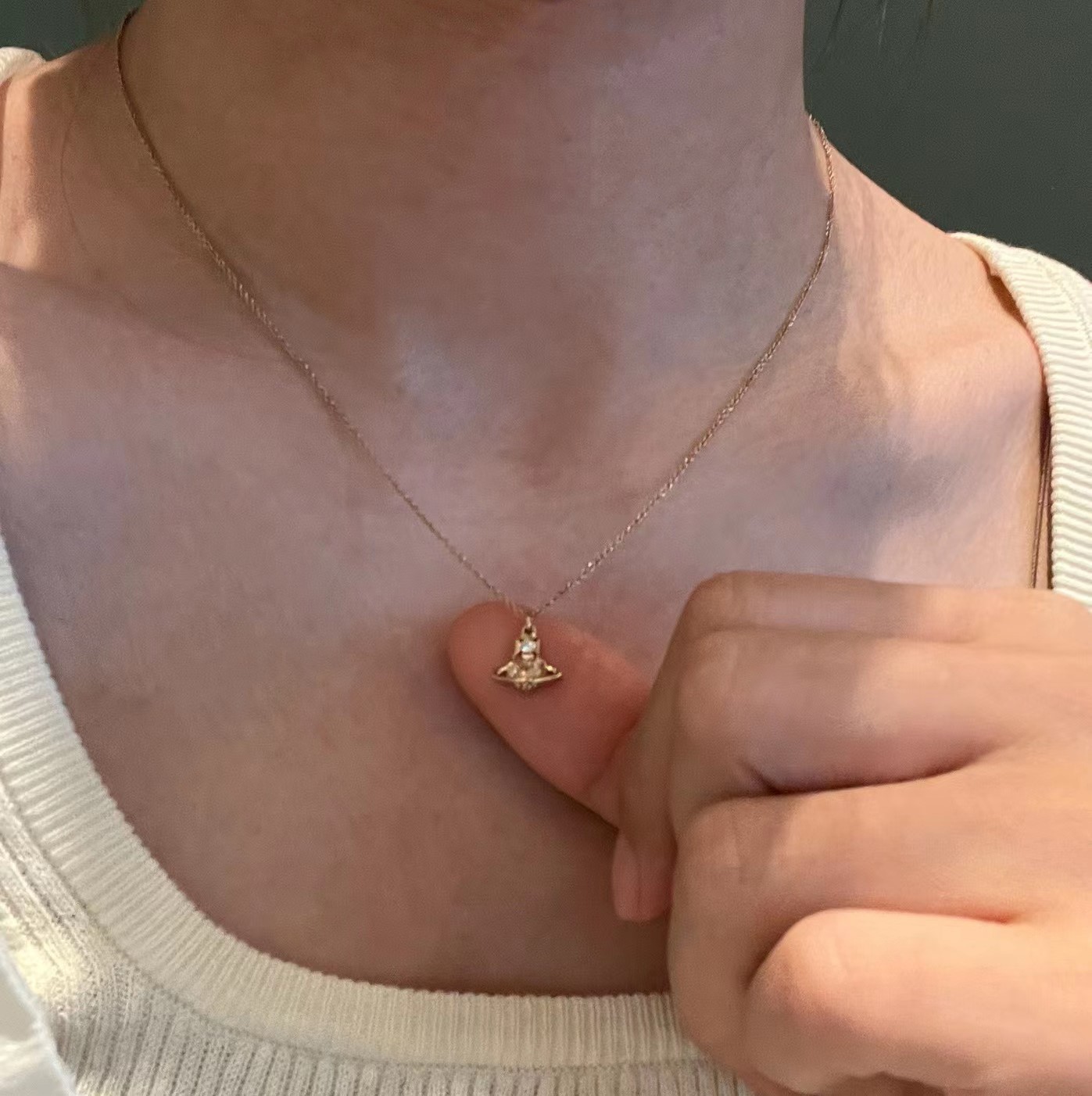23 new Seiko West Queen Mother 925 silver heart Saturn necklace mini purple gold love diamond design