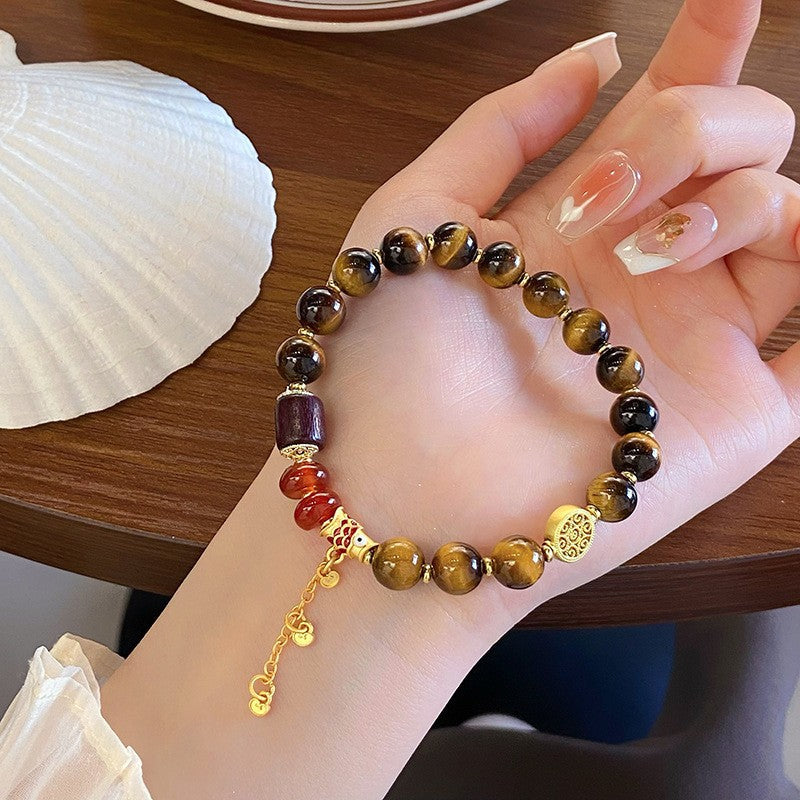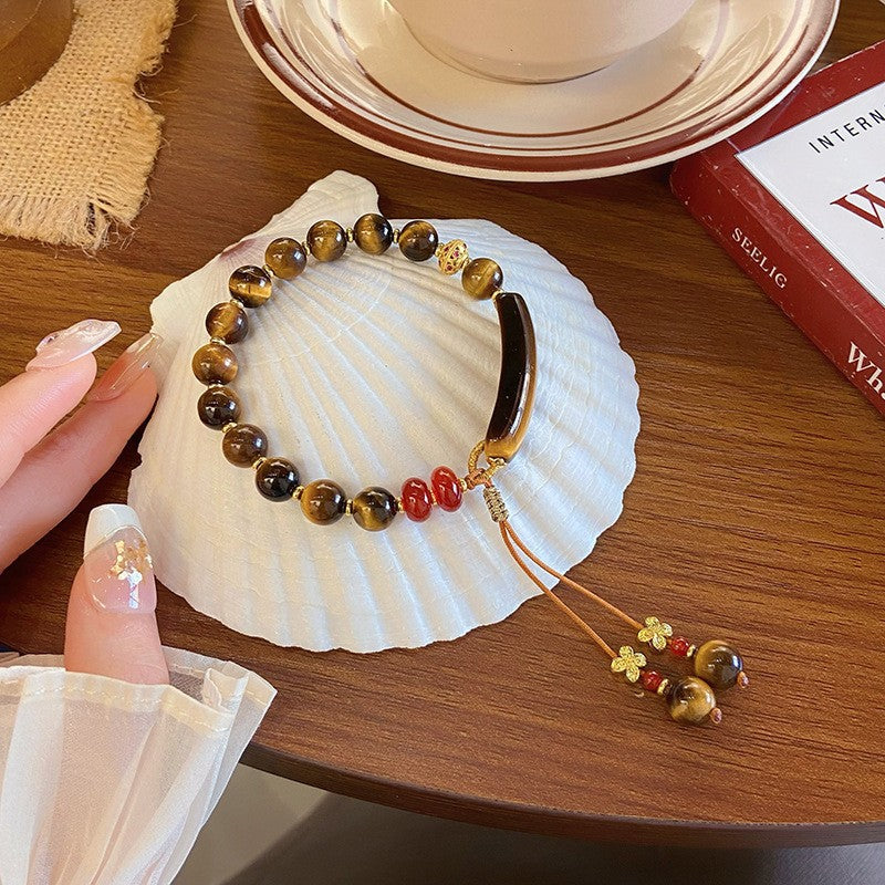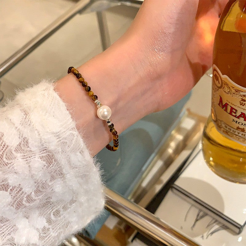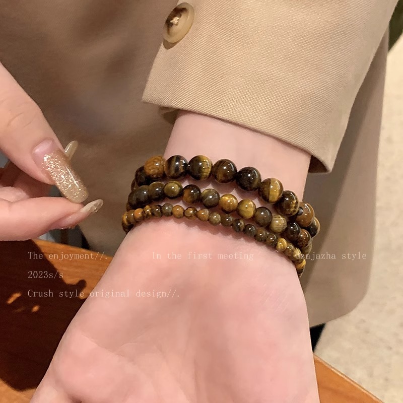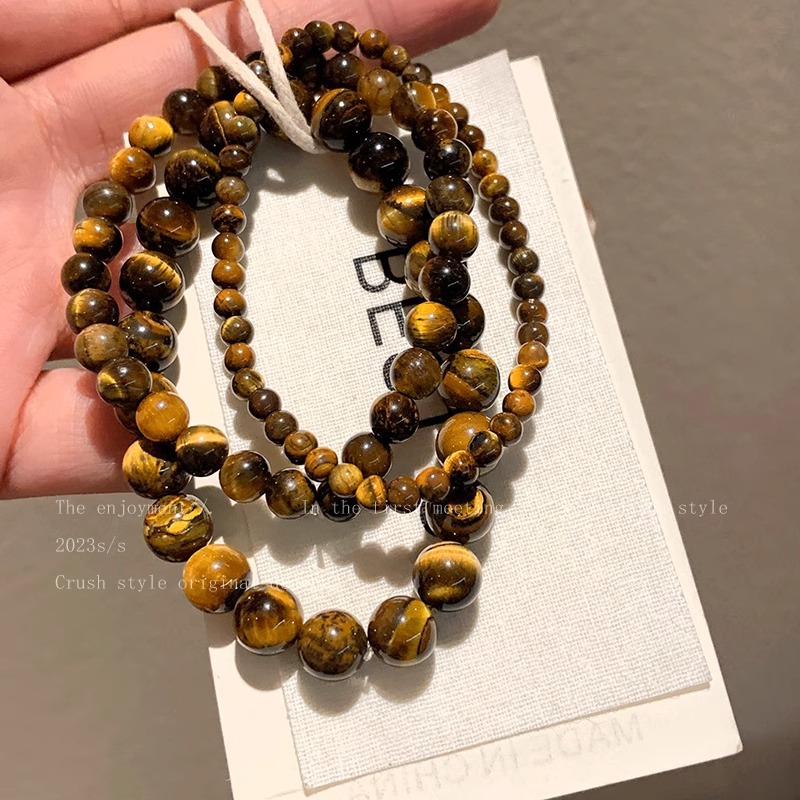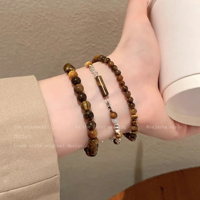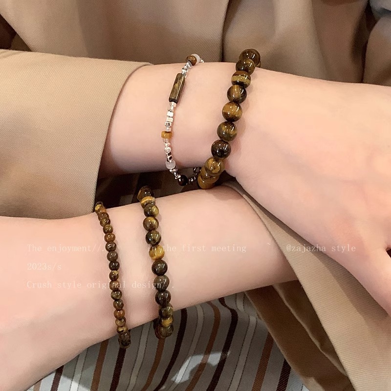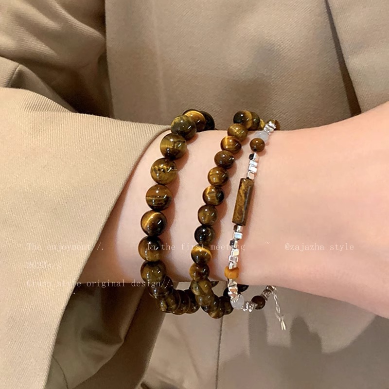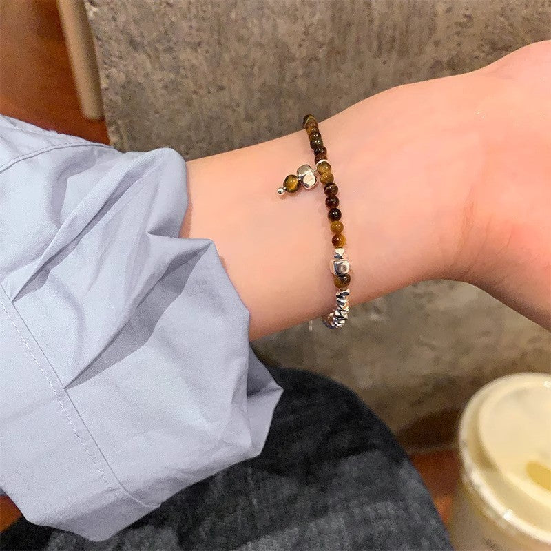 Broken silver tiger's eye stone splicing beaded bracelet women's autumn and winter niche retro jewelry student couple personalized bracelet