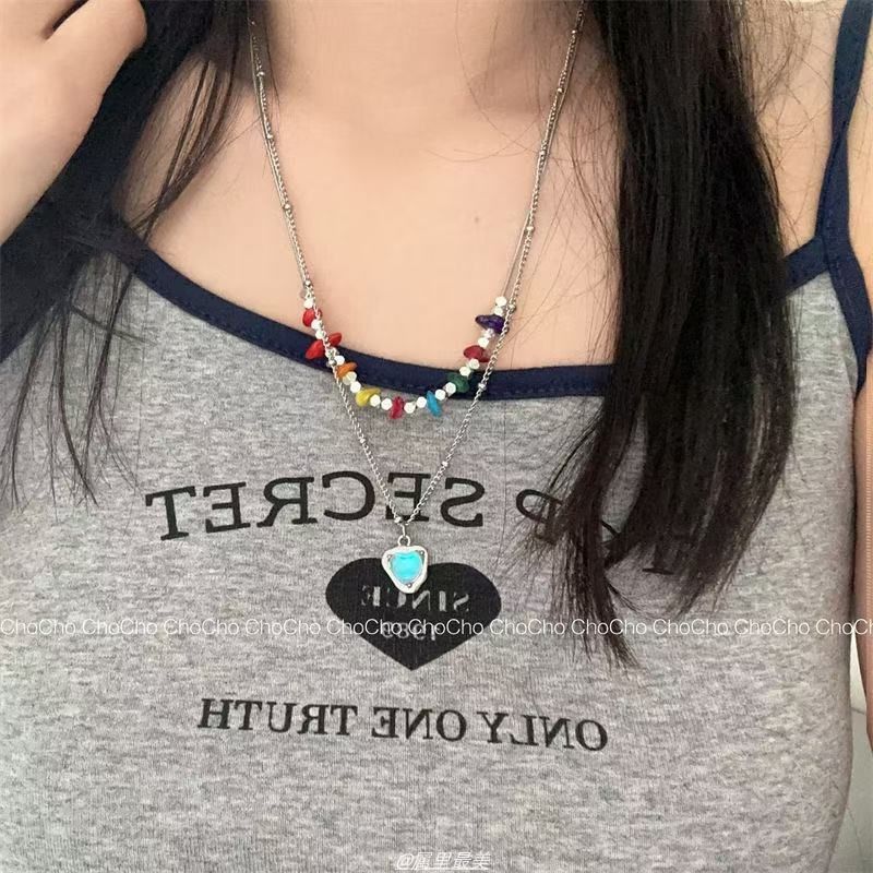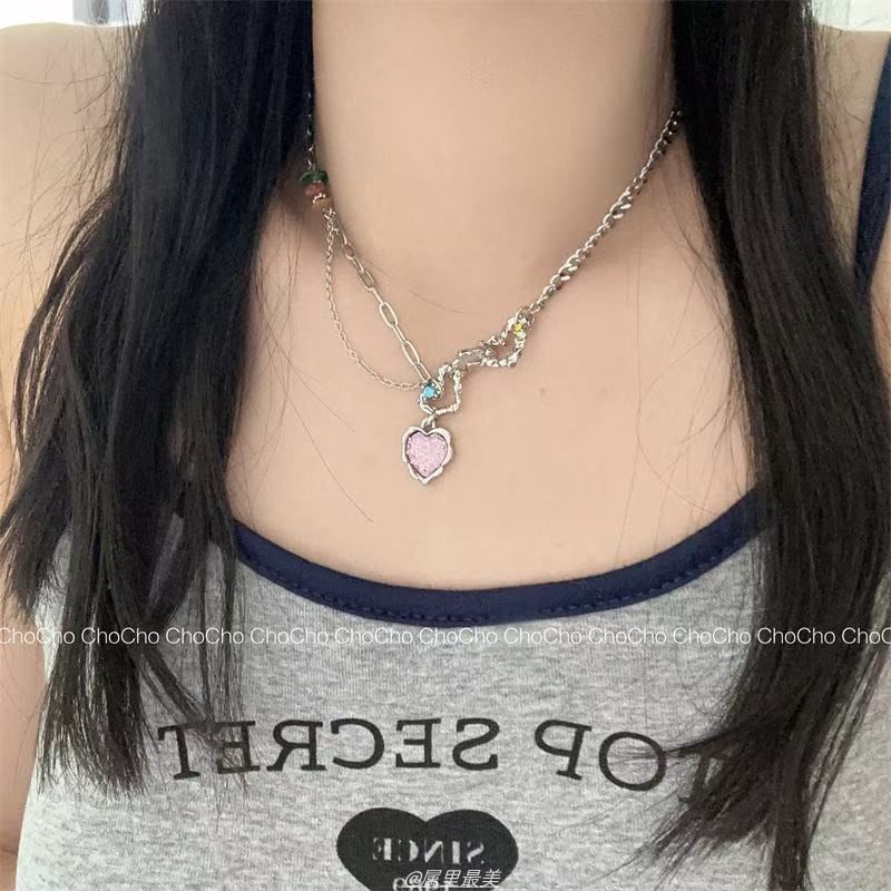 Color Love Necklace Niche Design Sense Sweet Cool Spice Girl Collarbone Chain 2025 New Dopamine Girl Wear