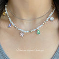 new sweet and cool double-layer pearl love necklace women's fashion personality color crystal collarbone chain niche versatile