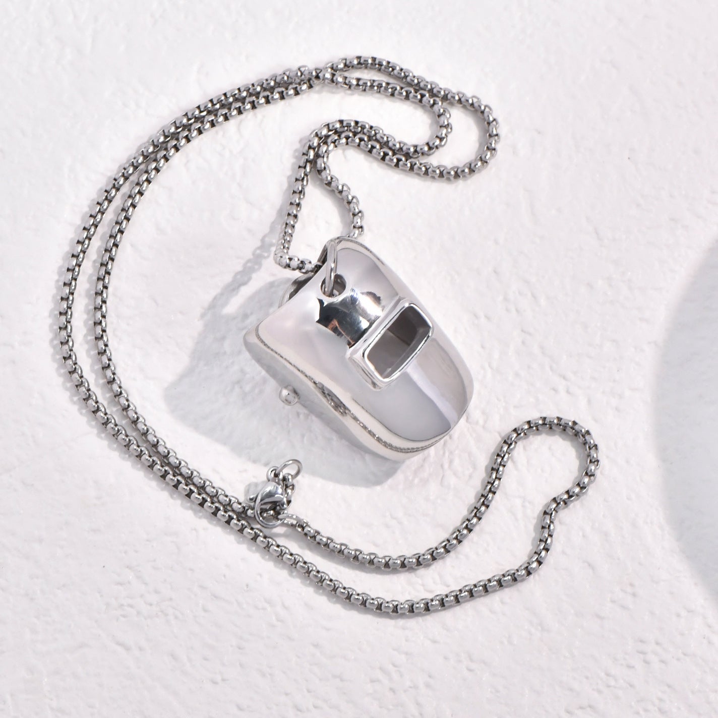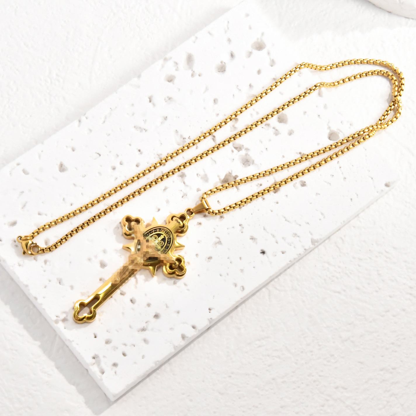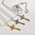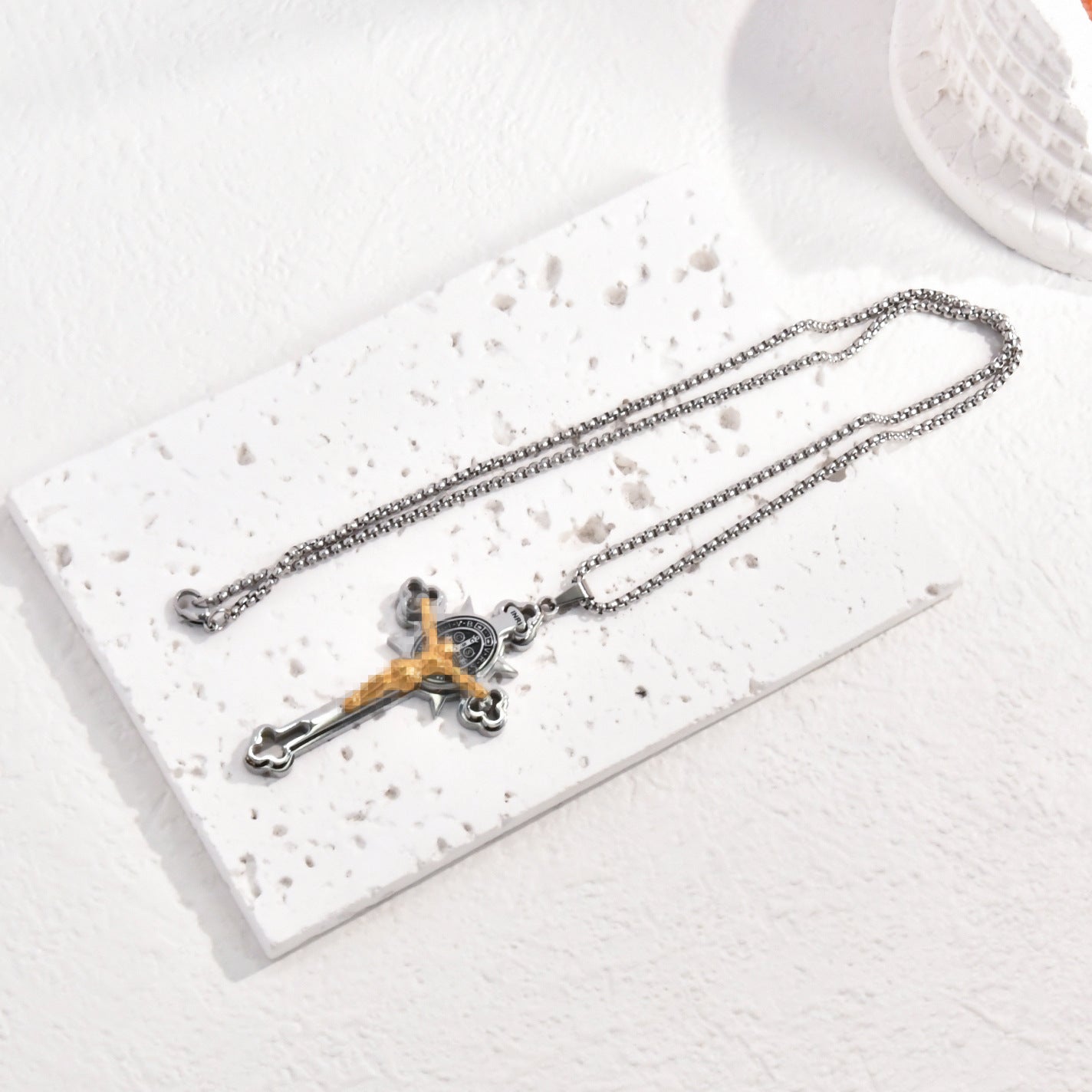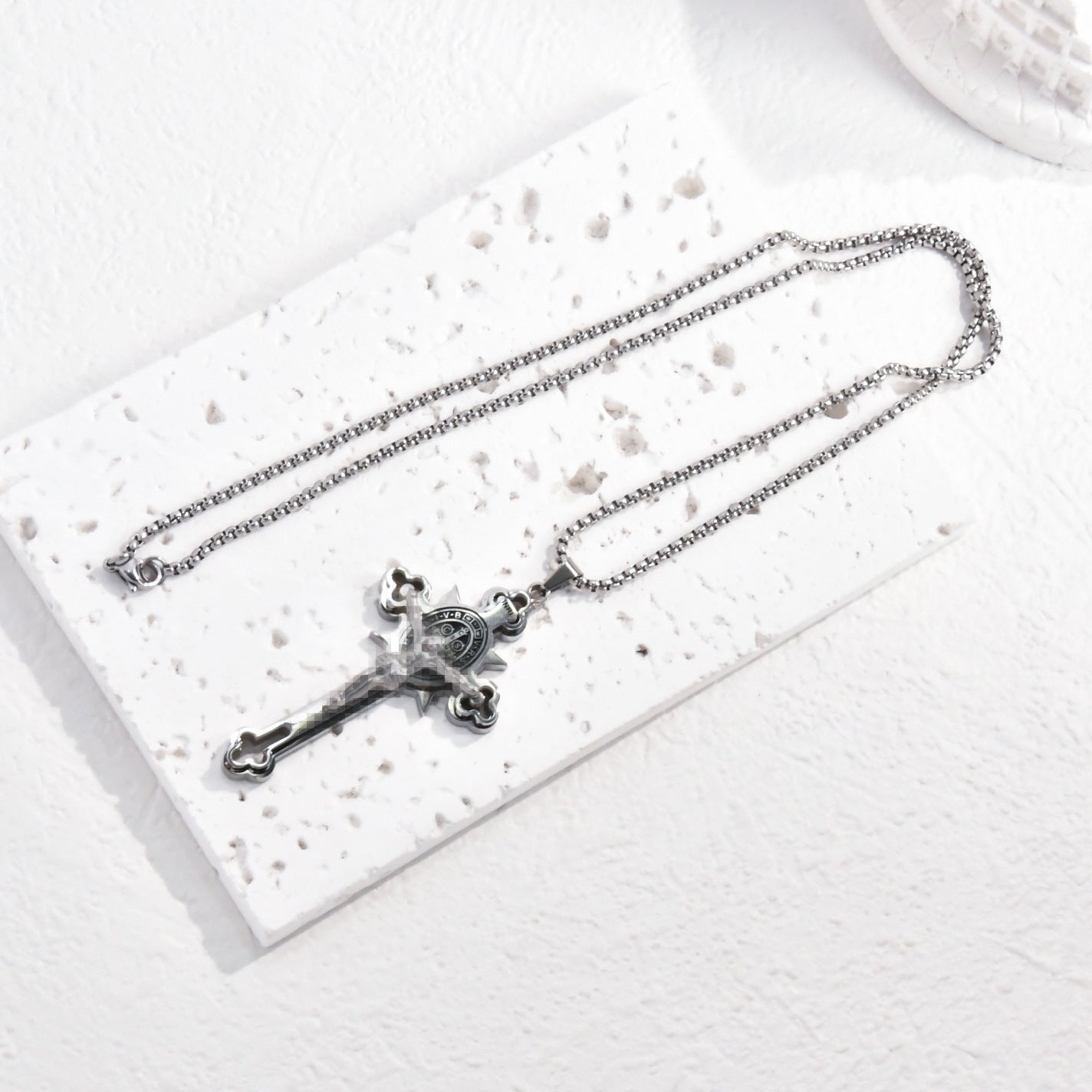 retro punk style trendy cross three-level helmet stainless steel niche personality necklace