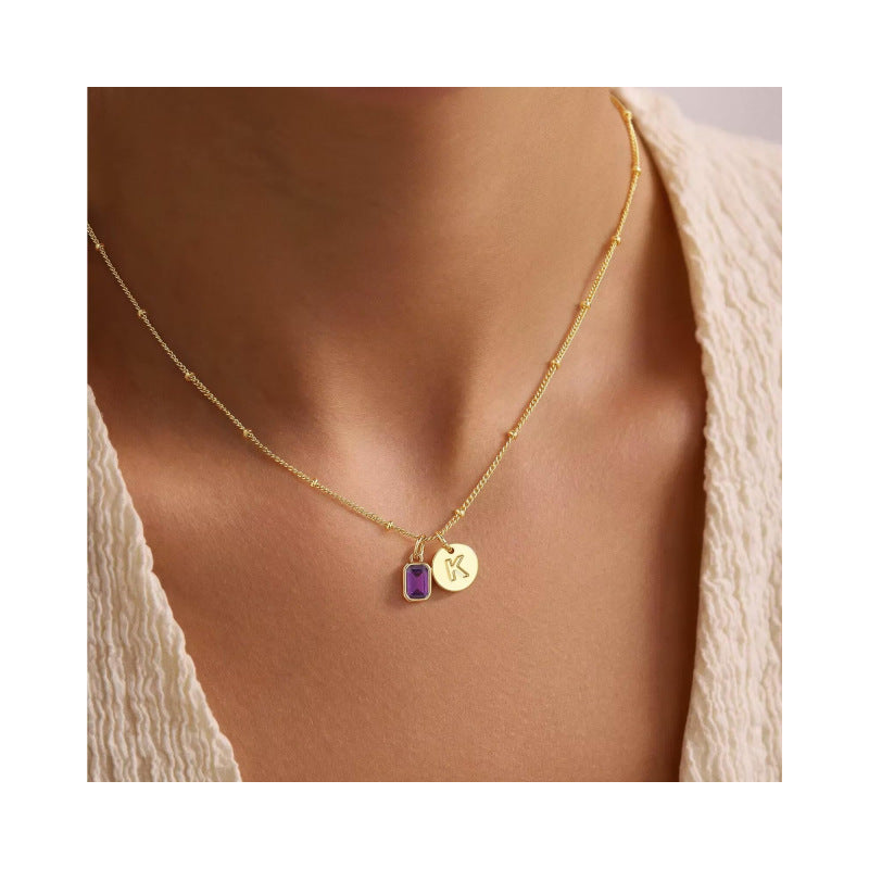 round 26-letter necklace copper inlaid zirconium December birthday stone necklace premium niche light luxury versatile gift