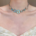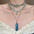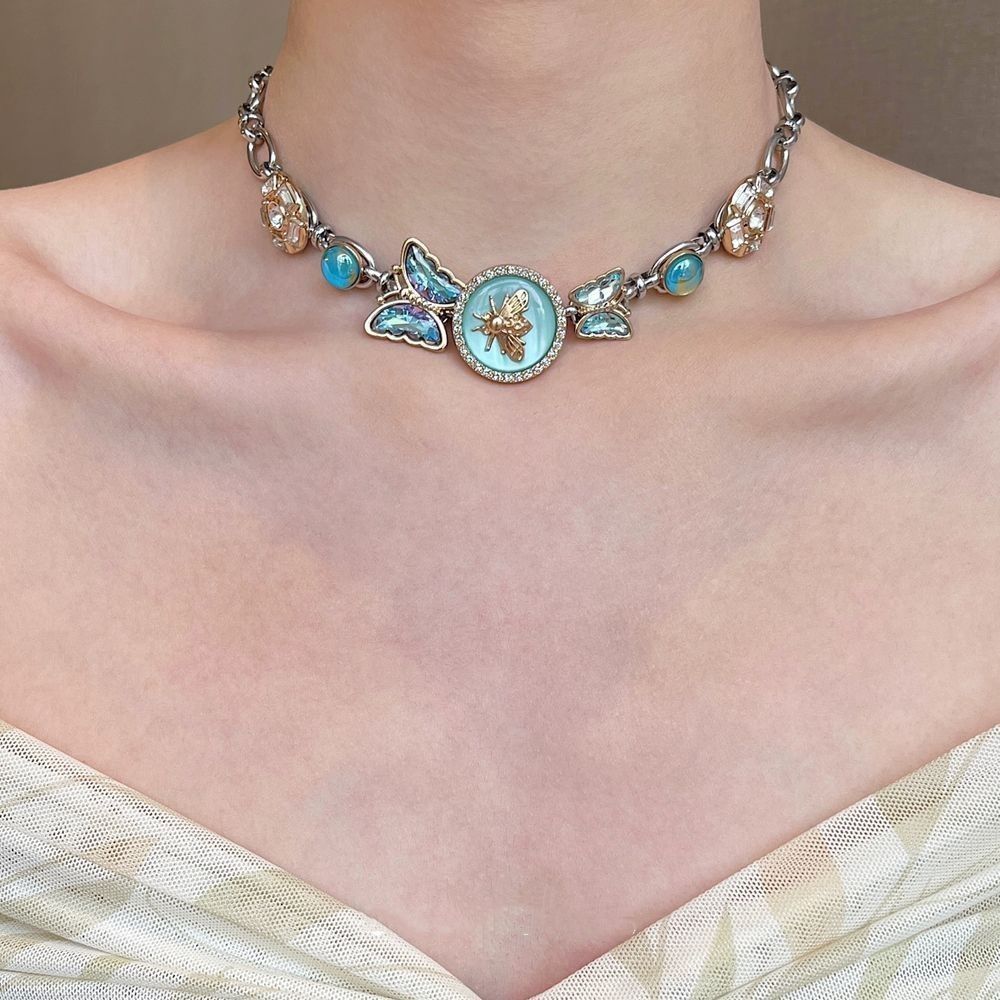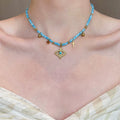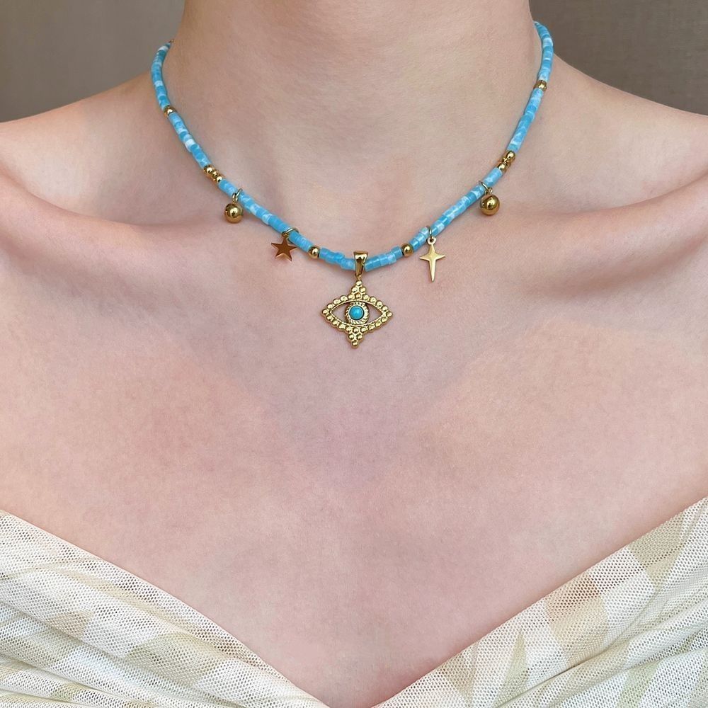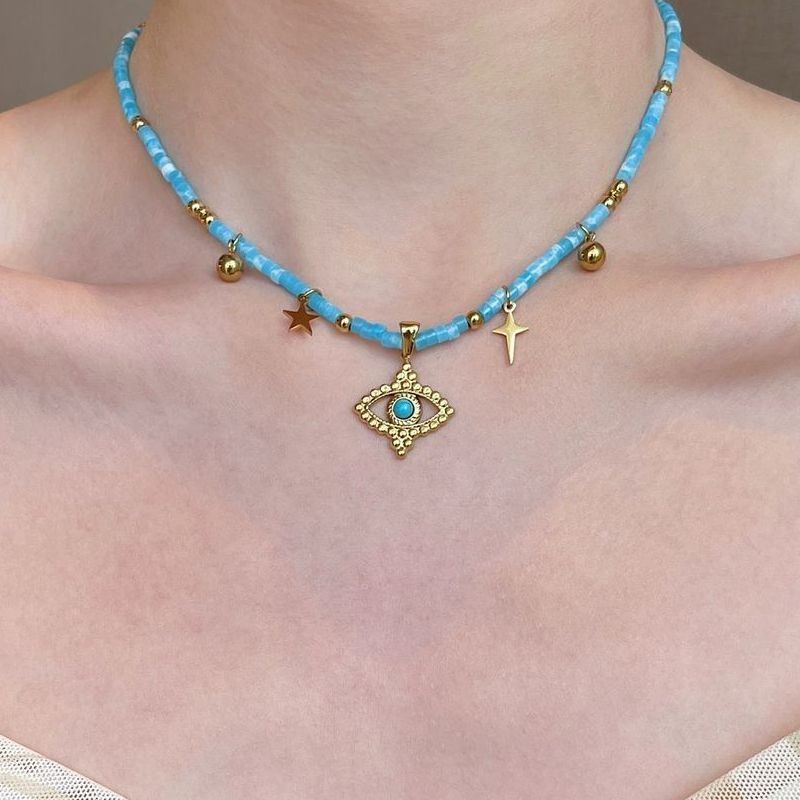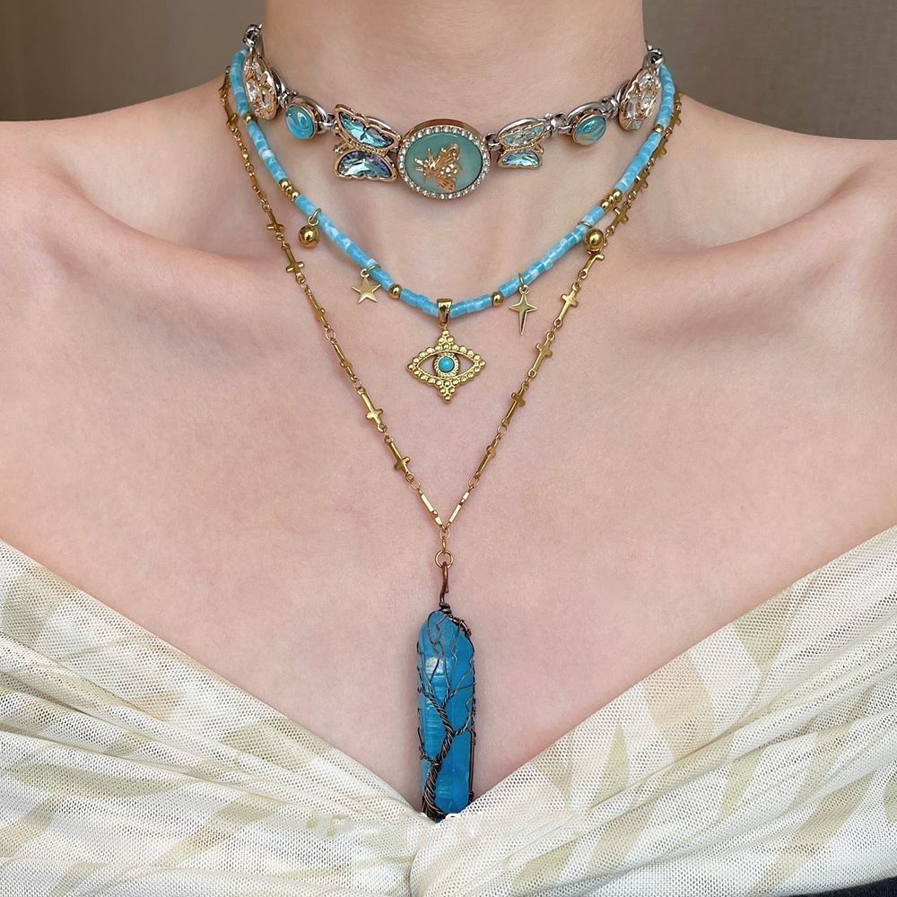 Devil's eye butterfly beaded necklace choker stacked wearing babes