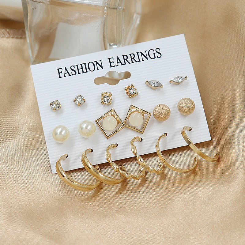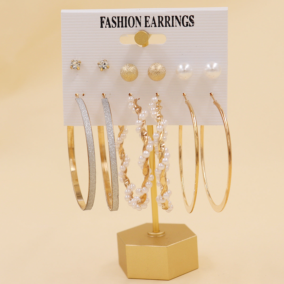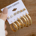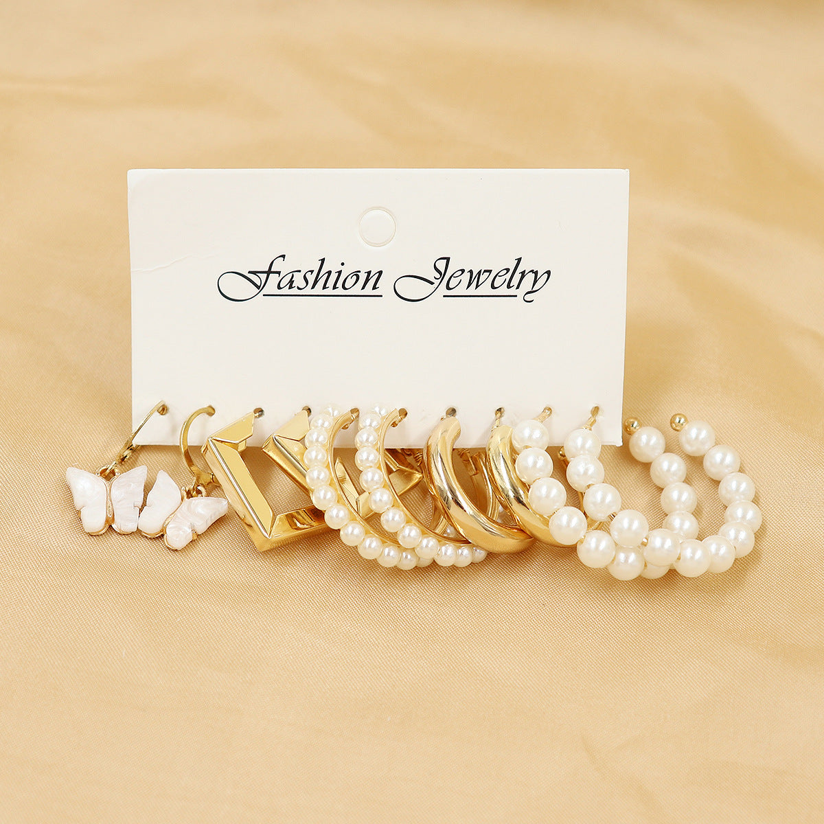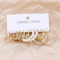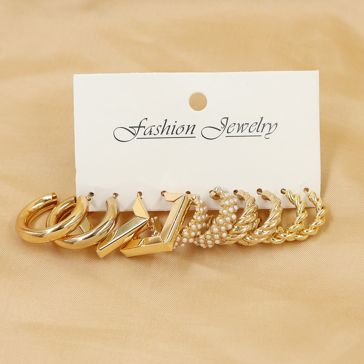 Europe and the United States hot-selling metal geometric C-shaped earrings French 6-piece set winding pearl earrings creative gold ear jewelry women