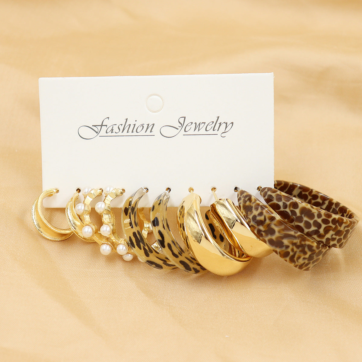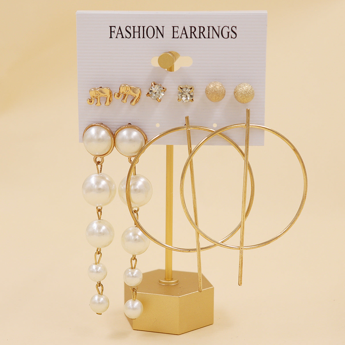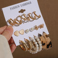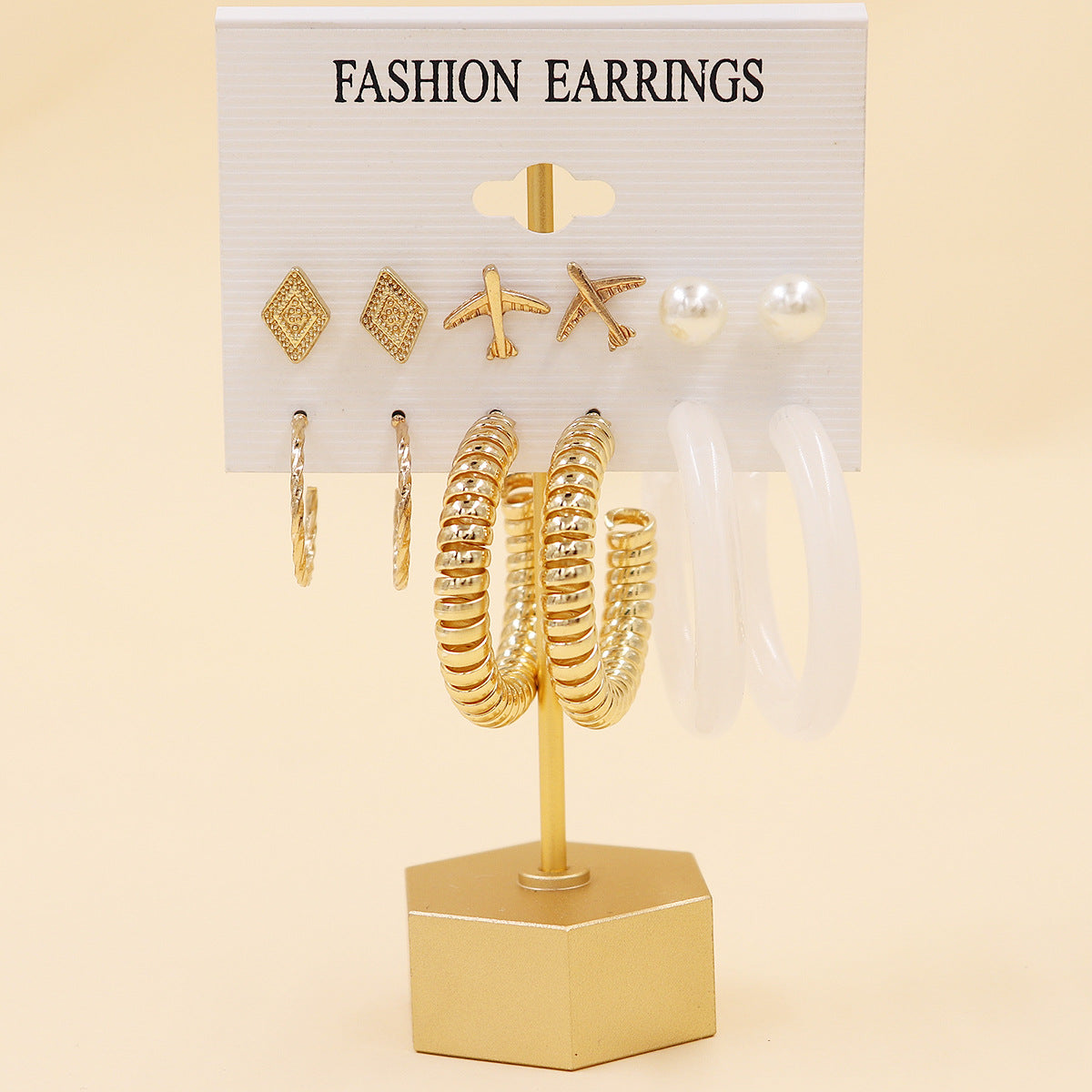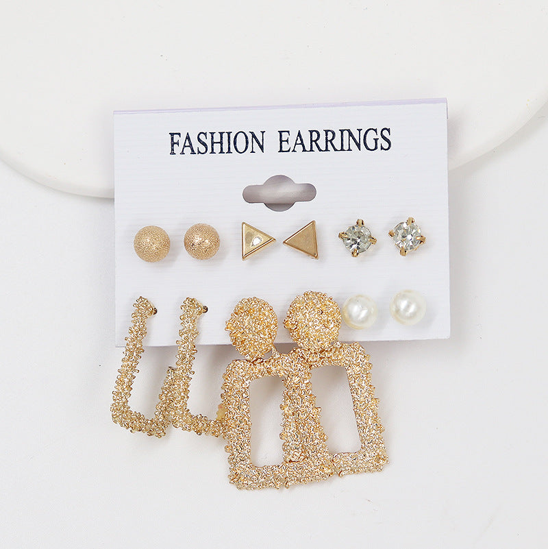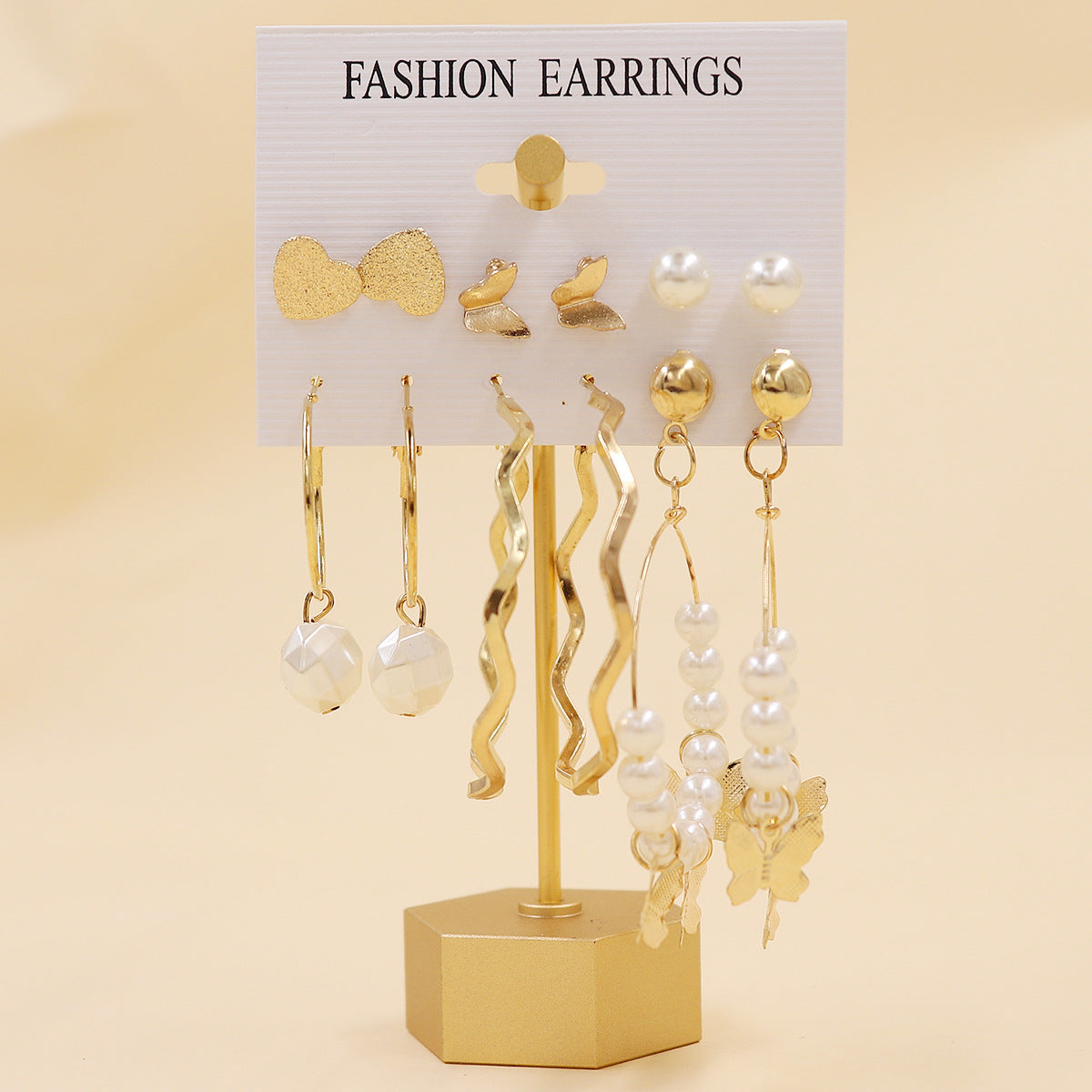 Europe and the United States hot-selling metal geometric C-shaped earrings French 6-piece set winding pearl earrings creative gold ear jewelry women