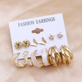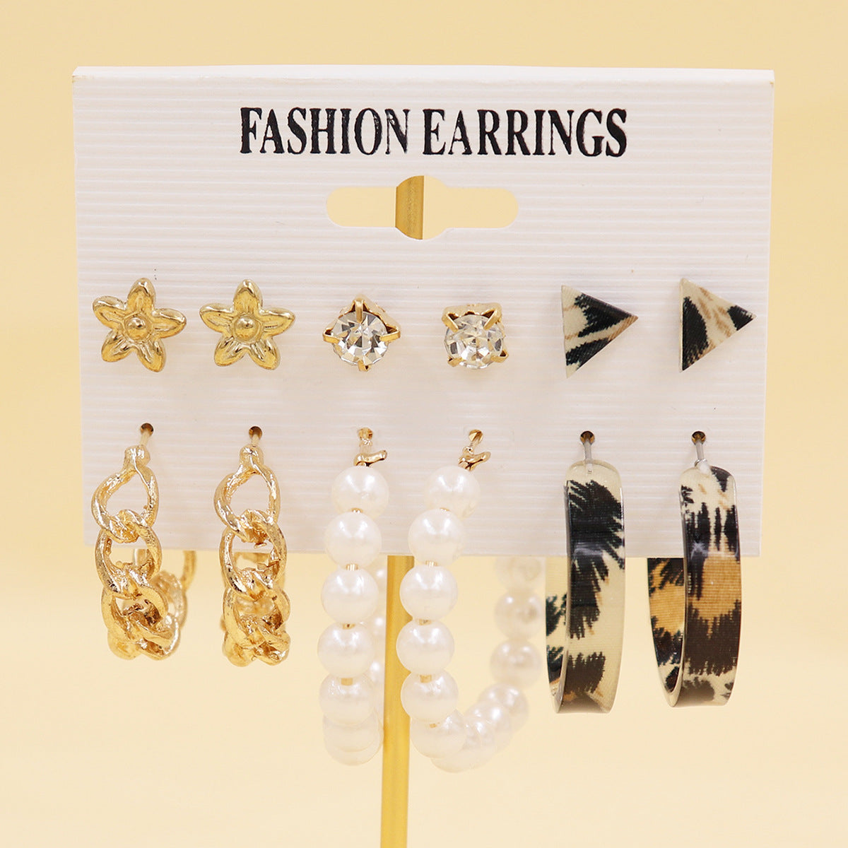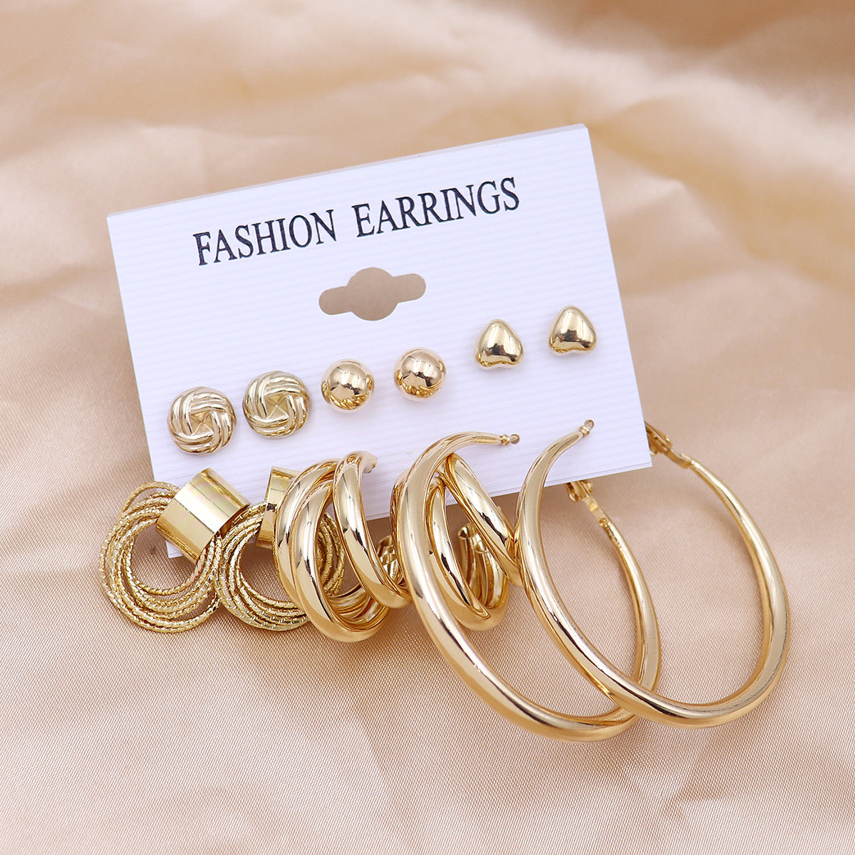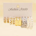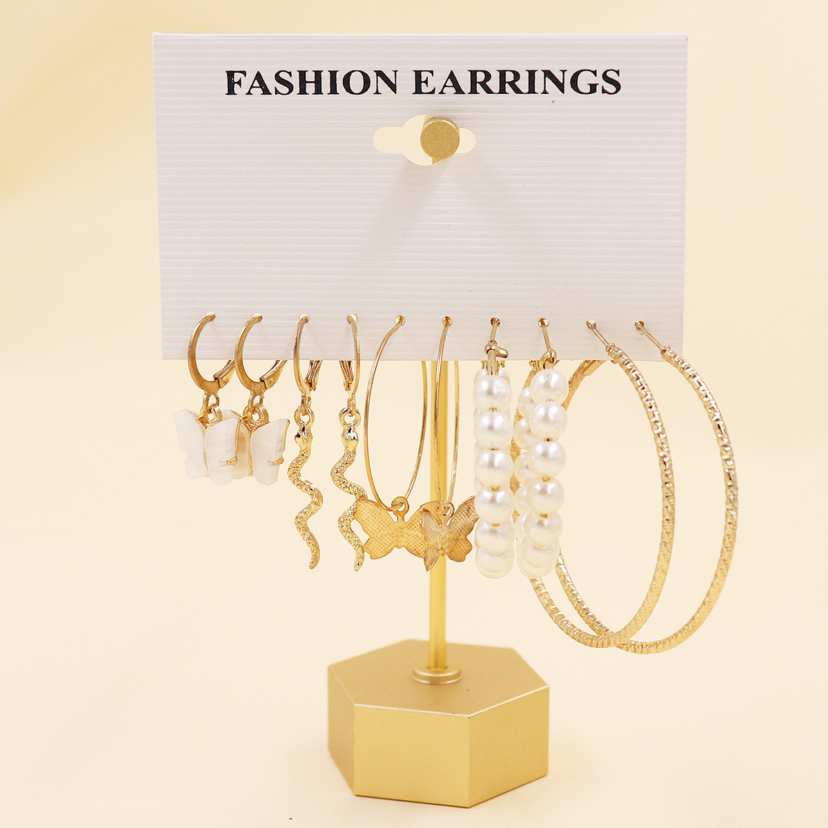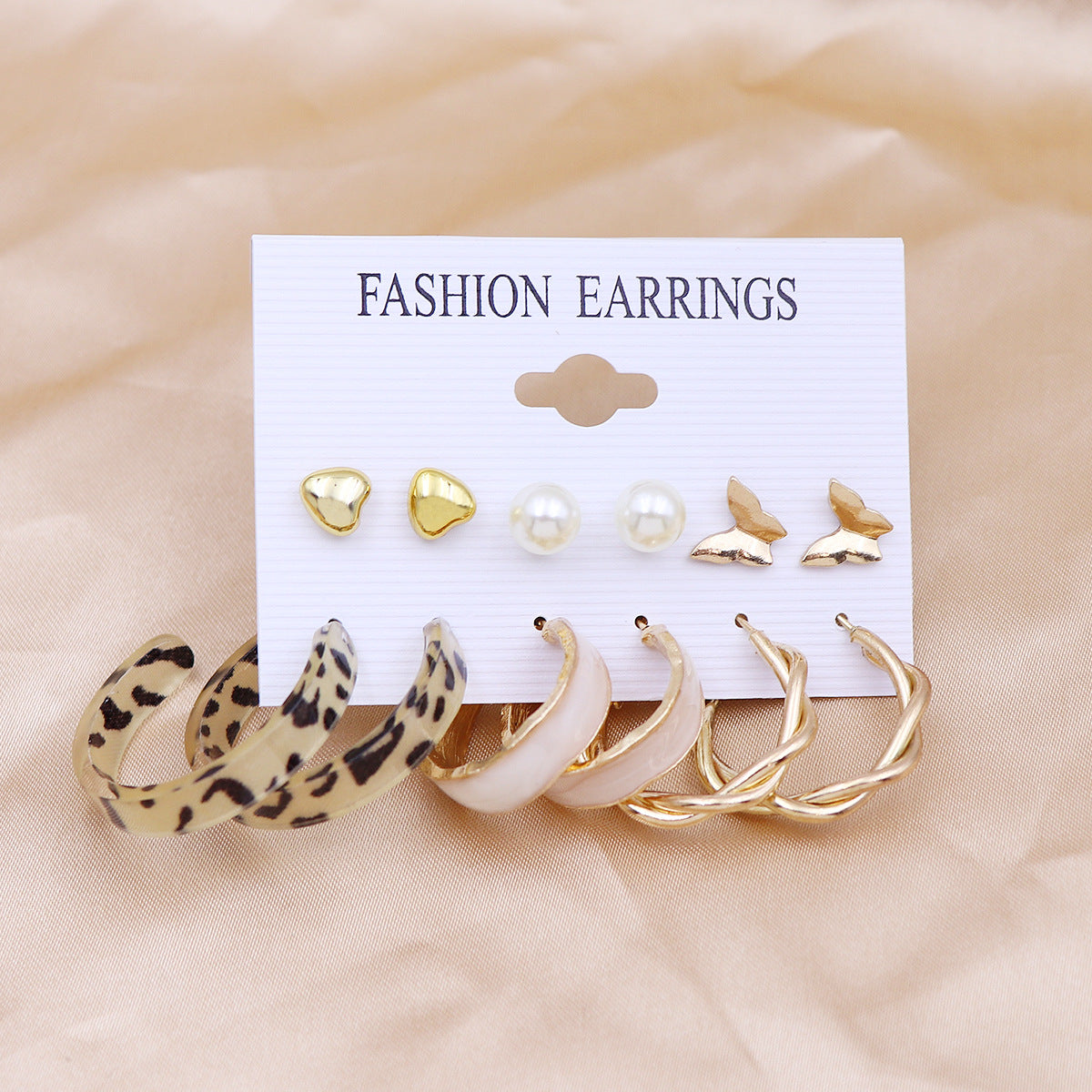 Europe and the United States hot-selling metal geometric C-shaped earrings French 6-piece set winding pearl earrings creative gold ear jewelry women