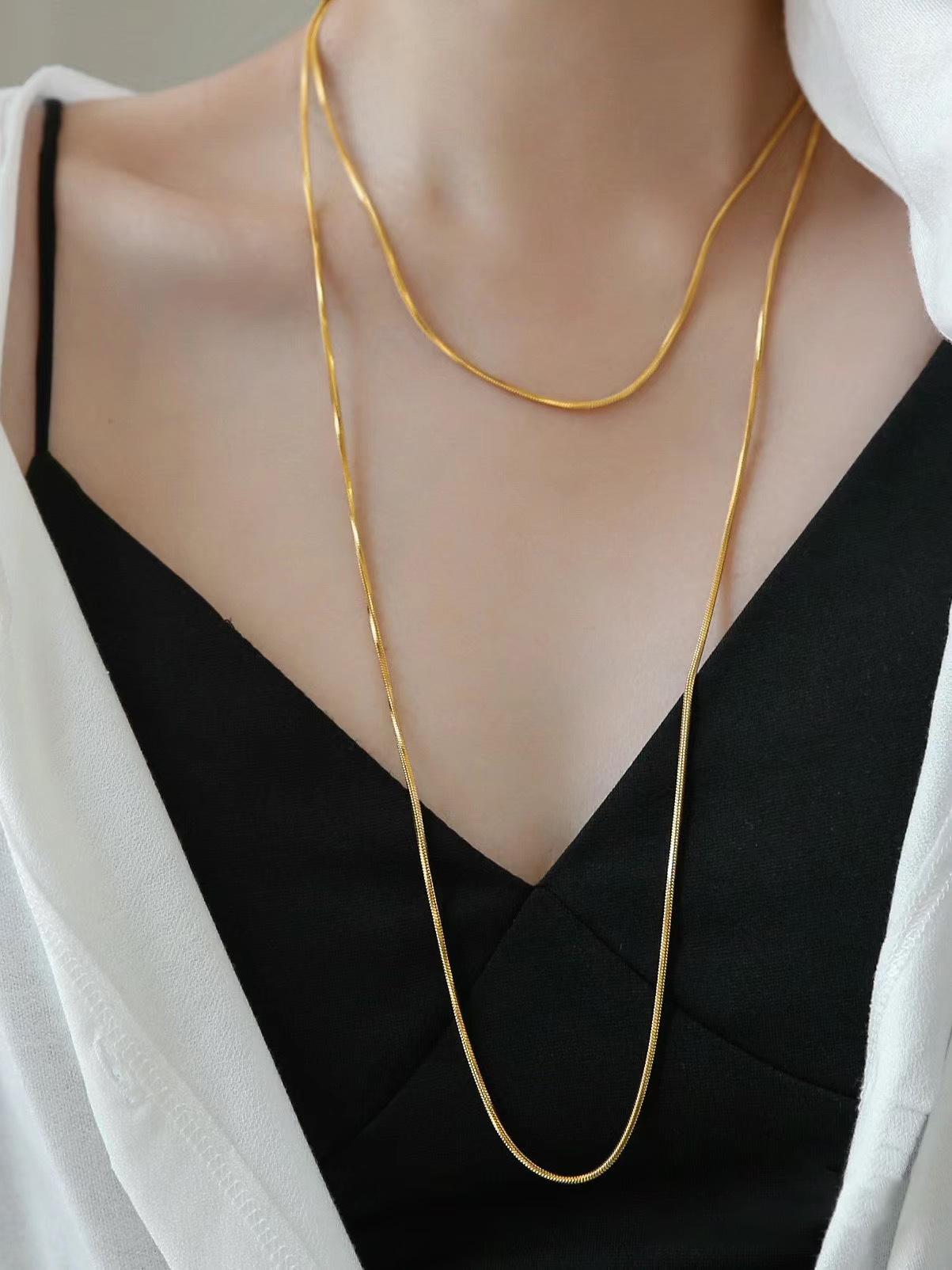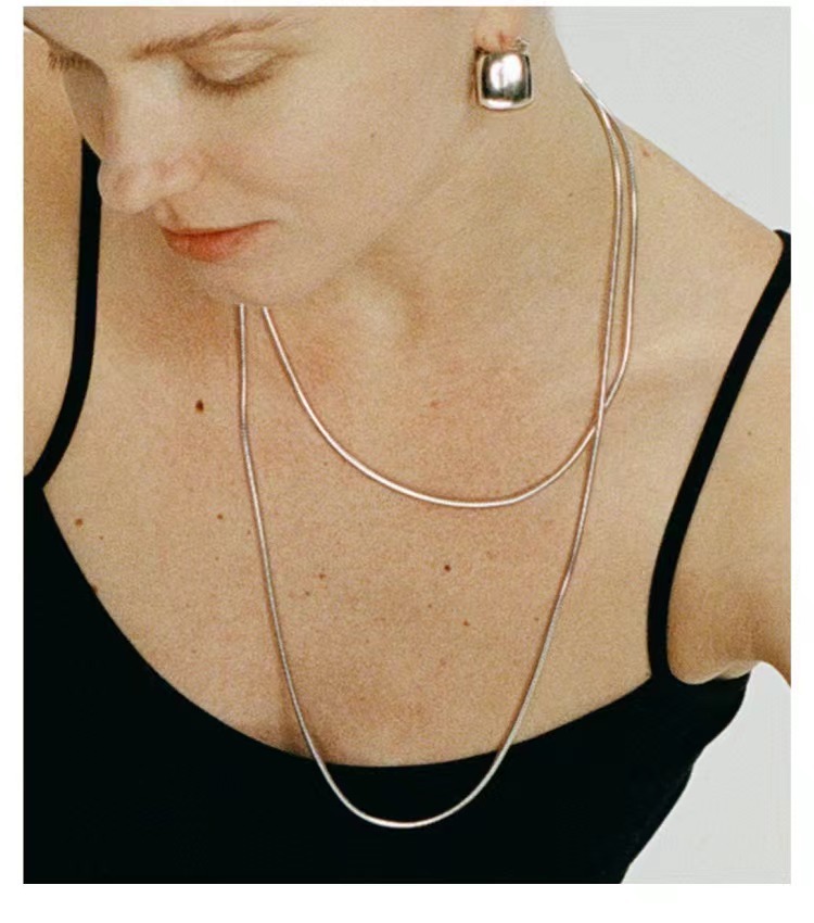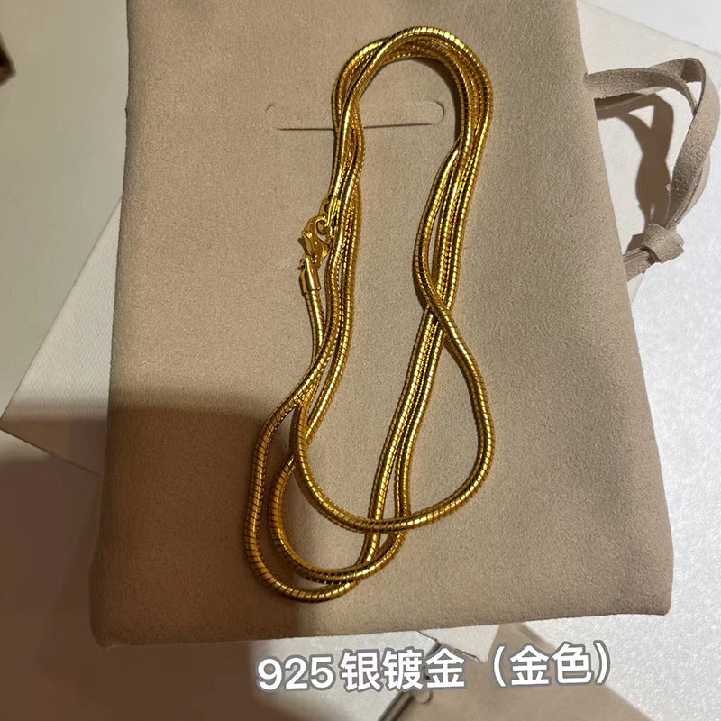 European and American fashion sterling silver round snake bone chain niche cold wind silver jewelry does not fade, simple and versatile necklace