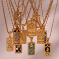 European and American ins fashion retro popular hot-selling pendant jewelry stainless steel rectangular oil dripping zircon tarot necklace