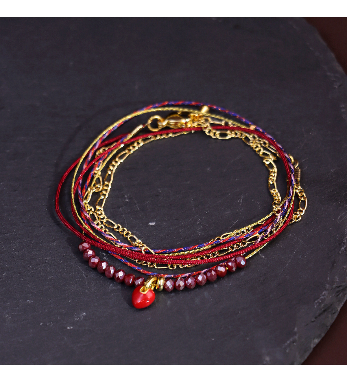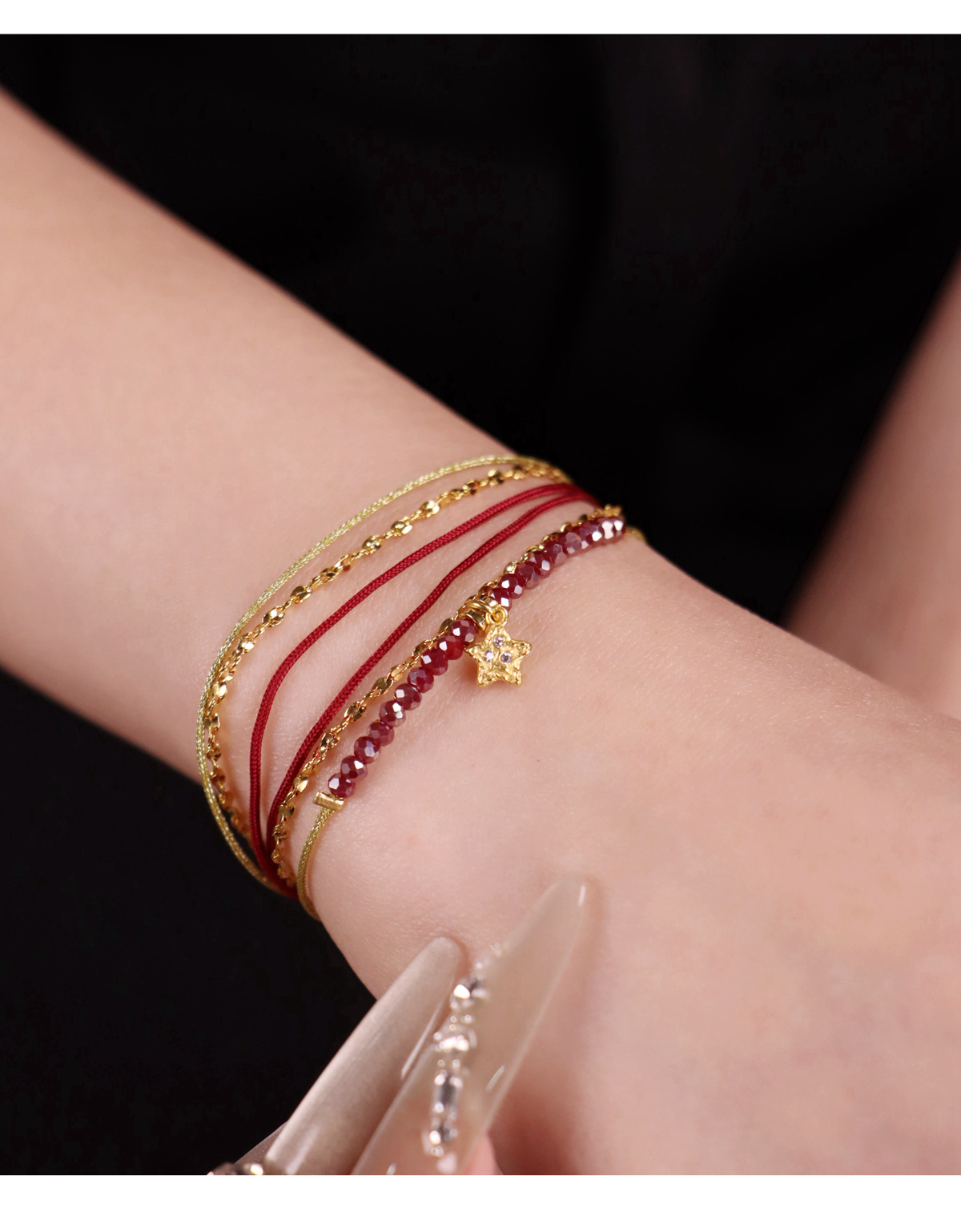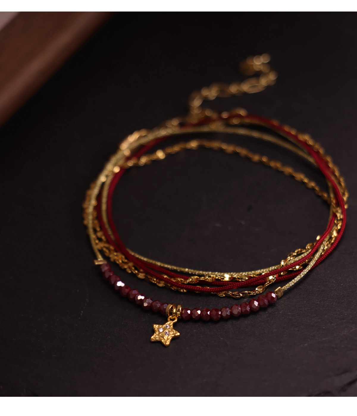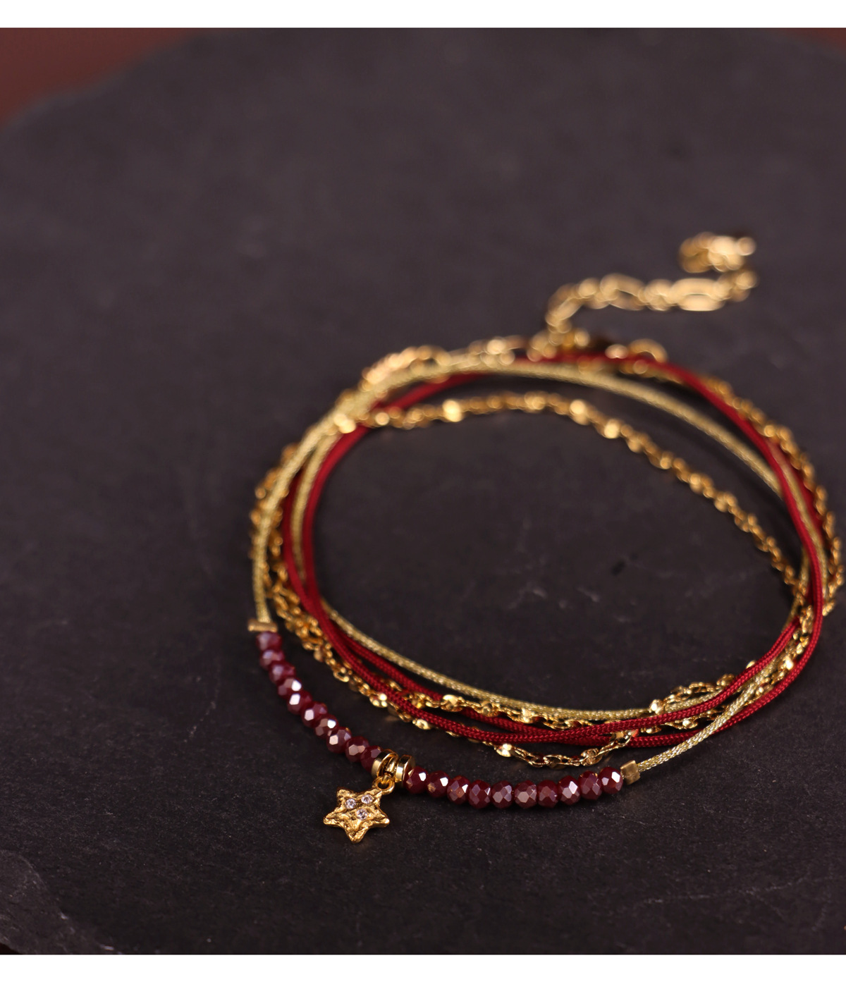 French style niche design multi-layer transshipment red rope star cut beads stacked bracelet braided hand rope wholesale