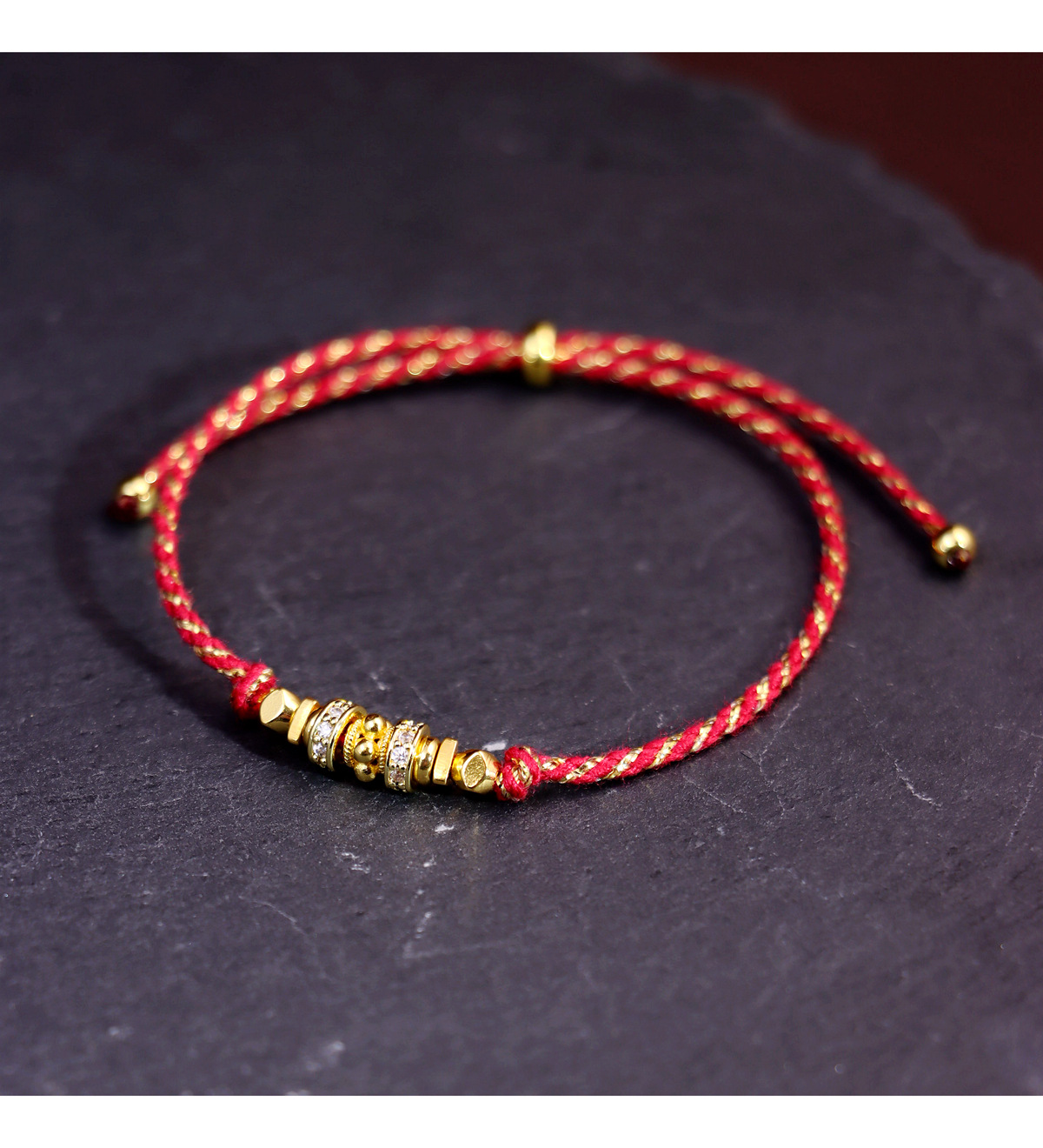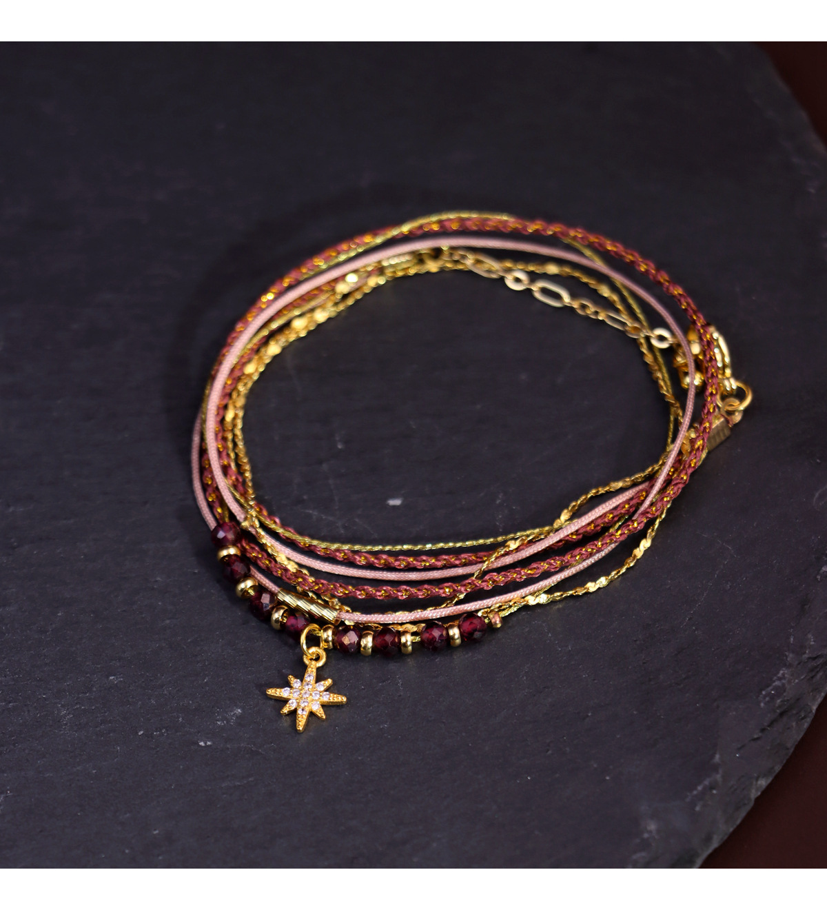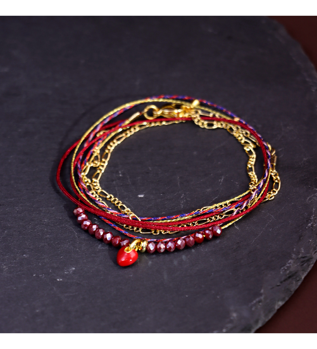 French style niche design multi-layer transshipment red rope star cut beads stacked bracelet braided hand rope wholesale