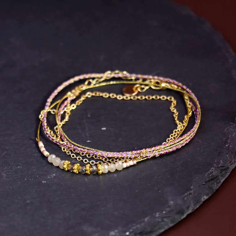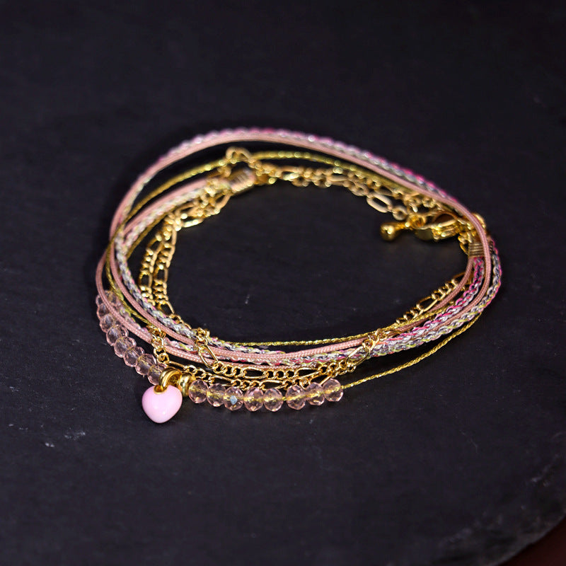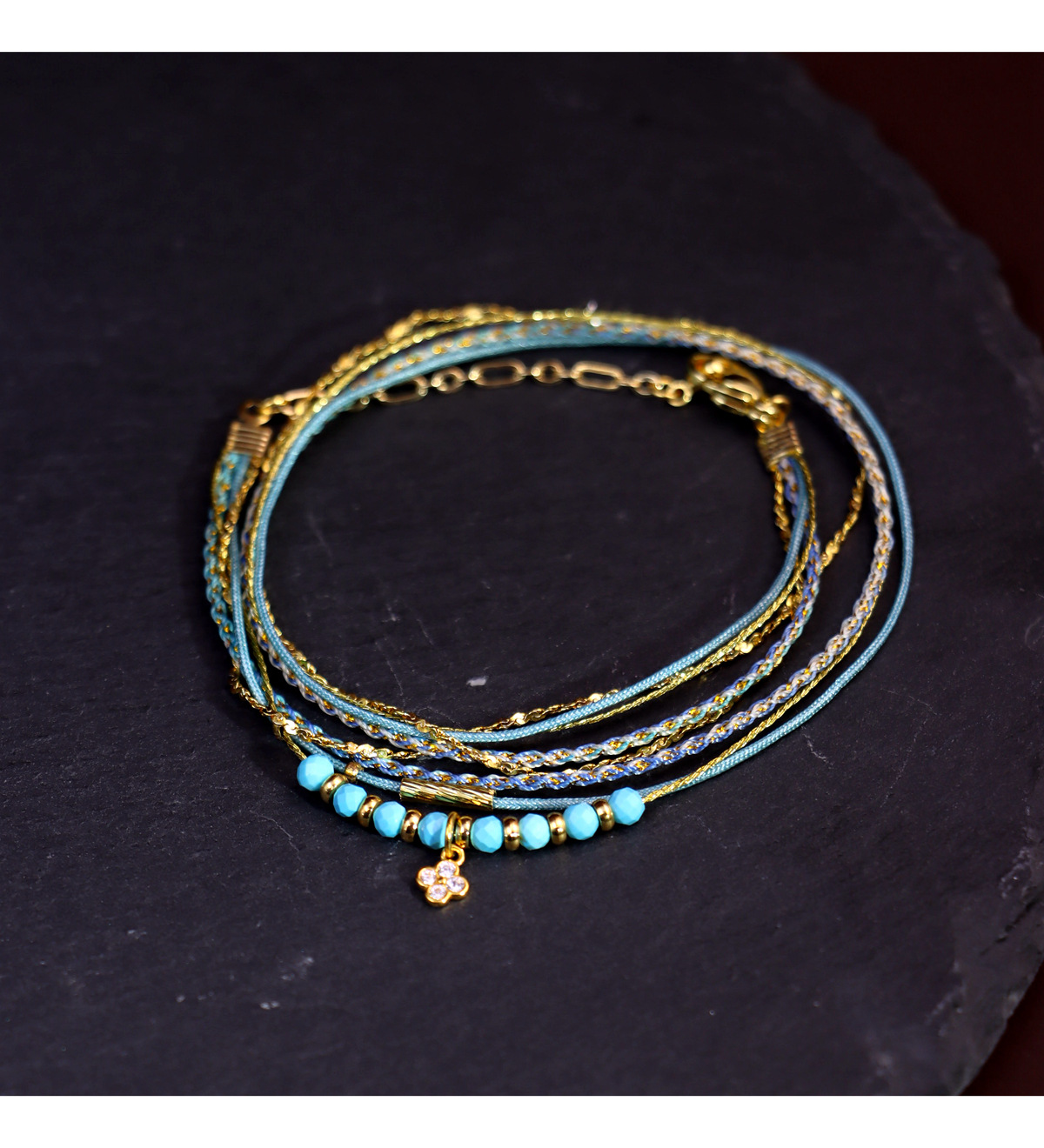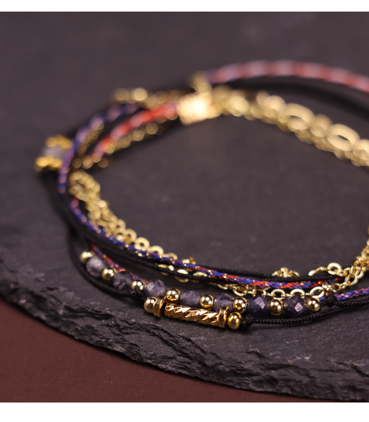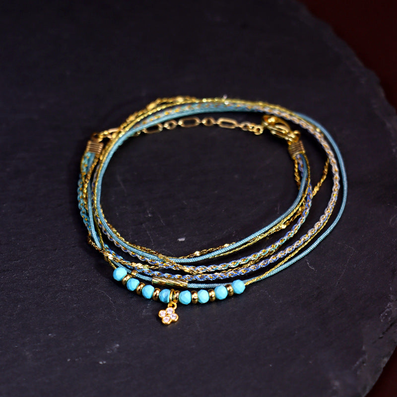 French style niche design multi-layer transshipment red rope star cut beads stacked bracelet braided hand rope wholesale