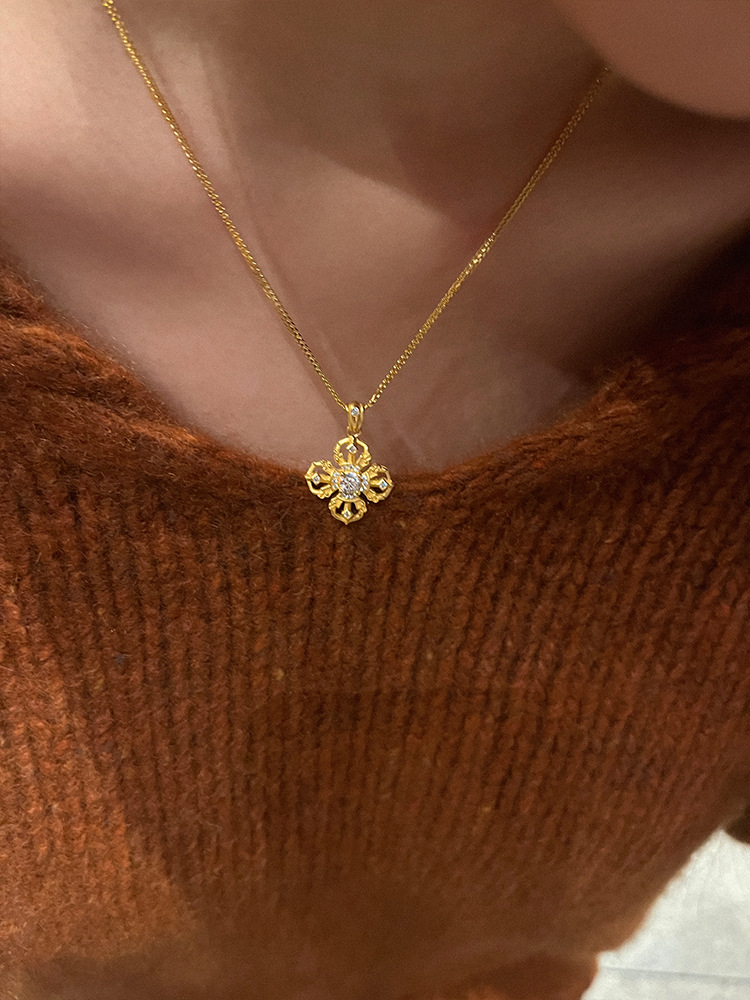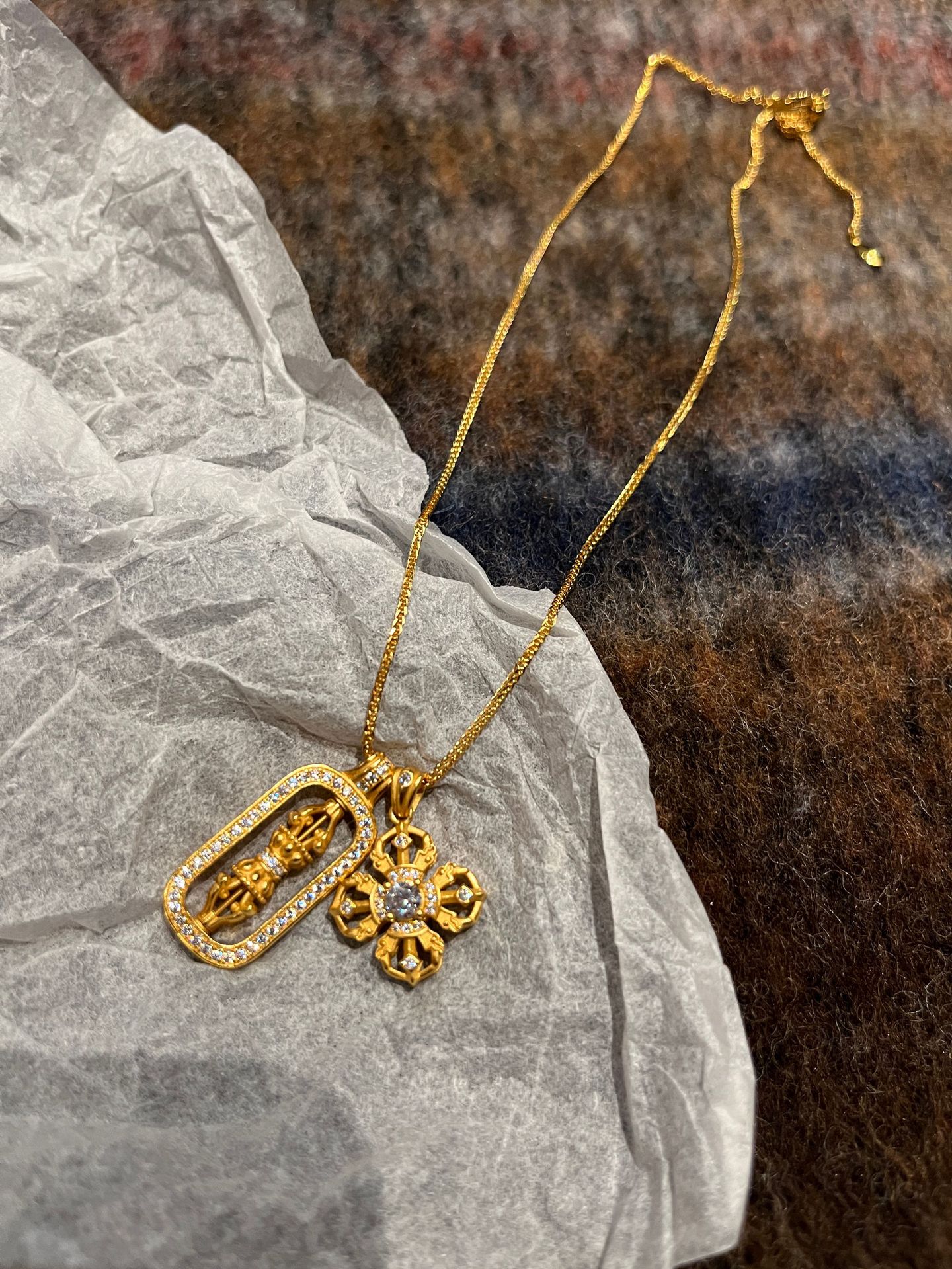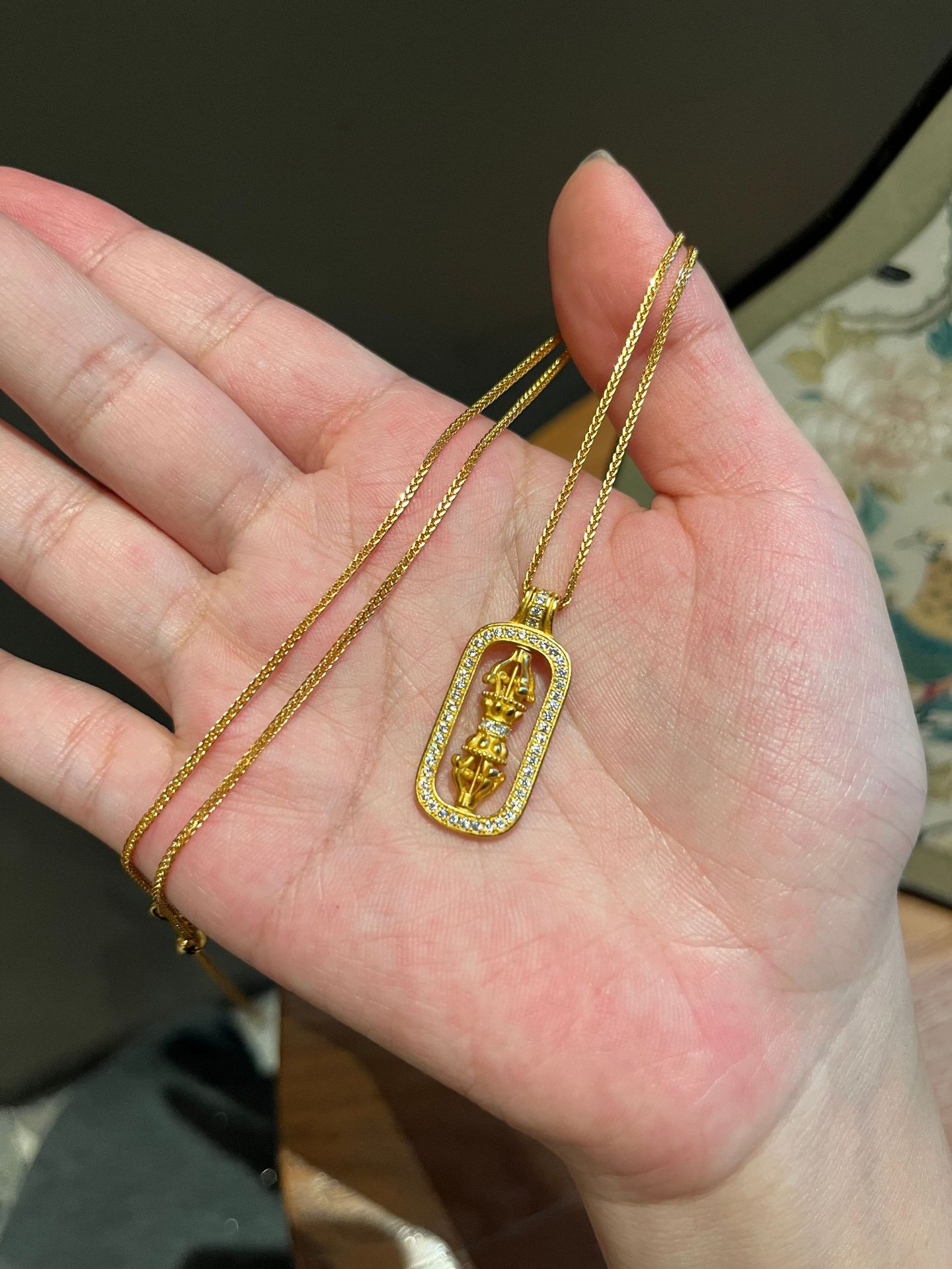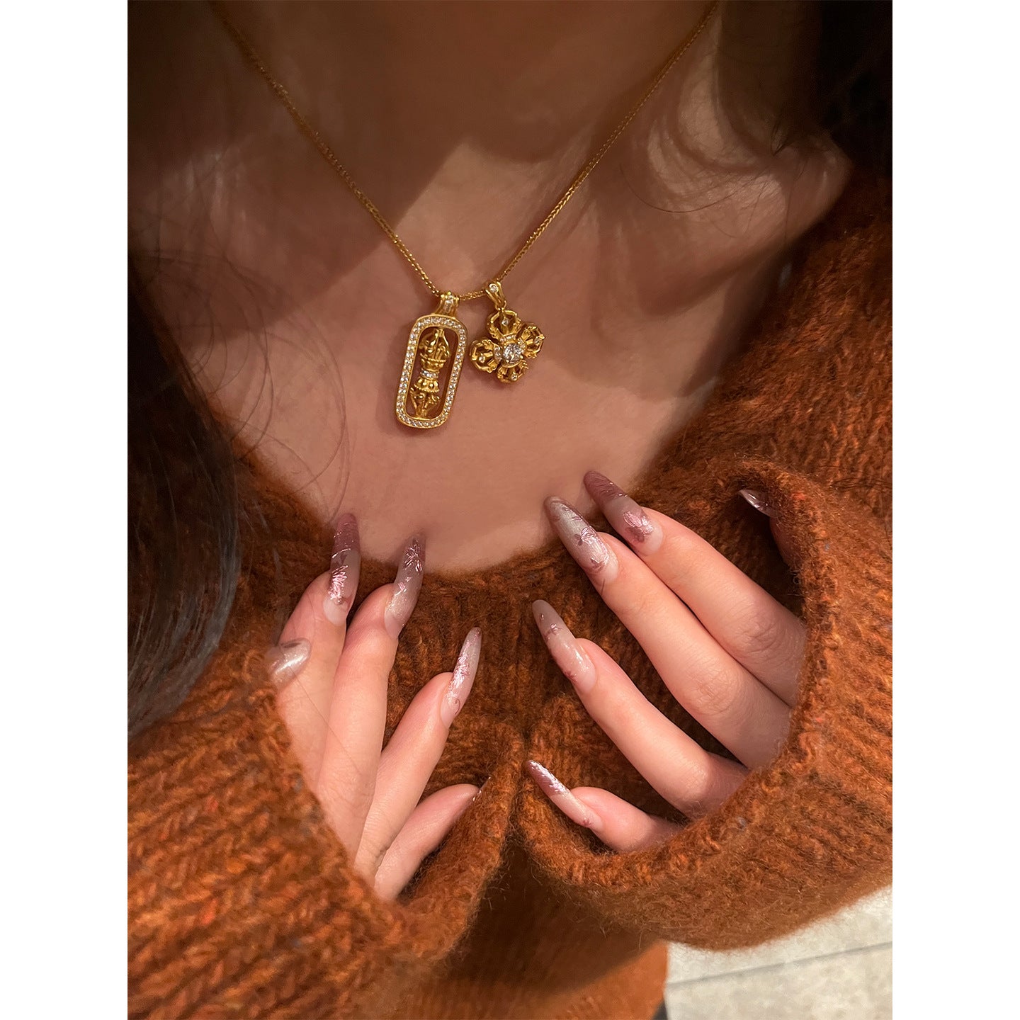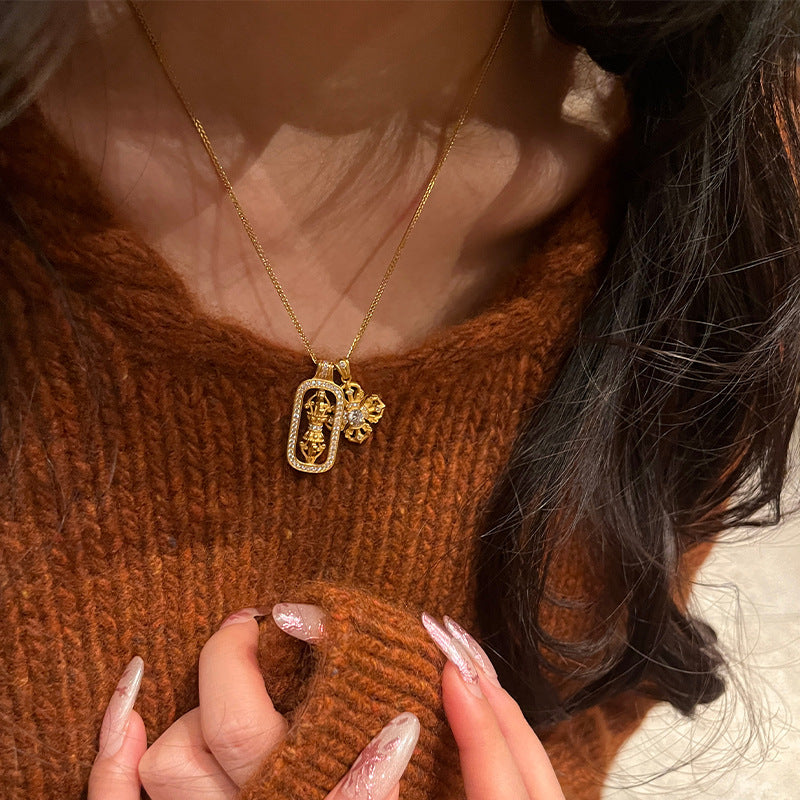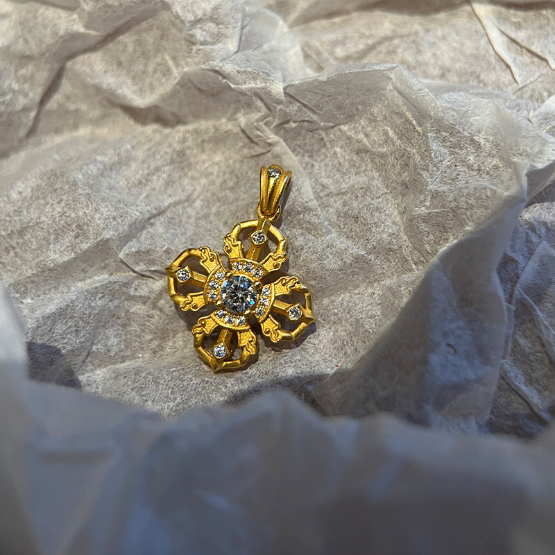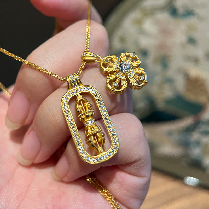 Gold flat ancient method heavy industry vajra necklace silver gold-plated cross point diamond rotatable pendant live broadcast hit