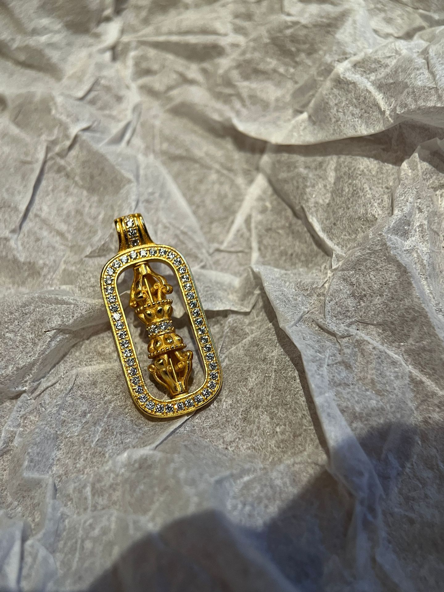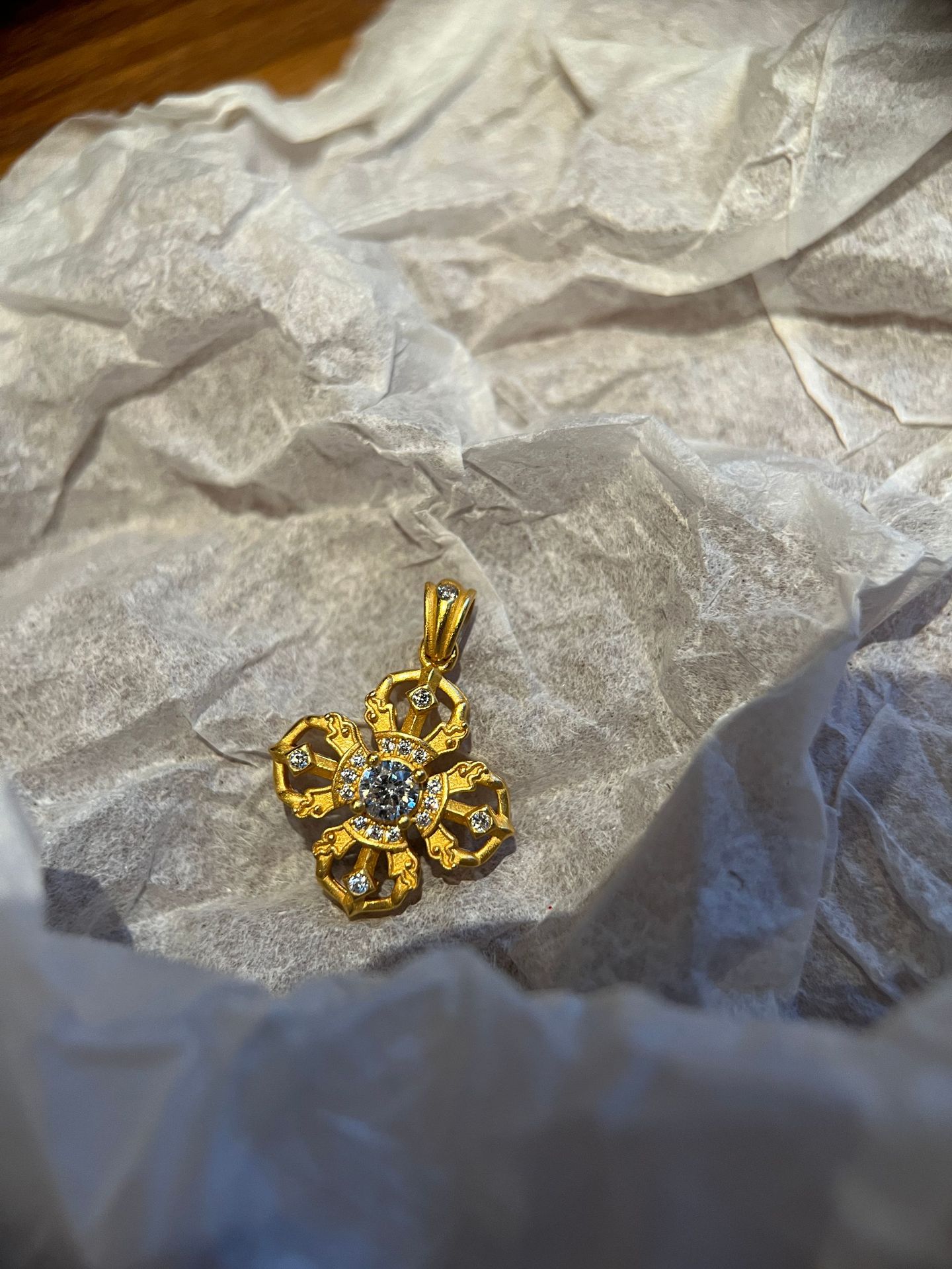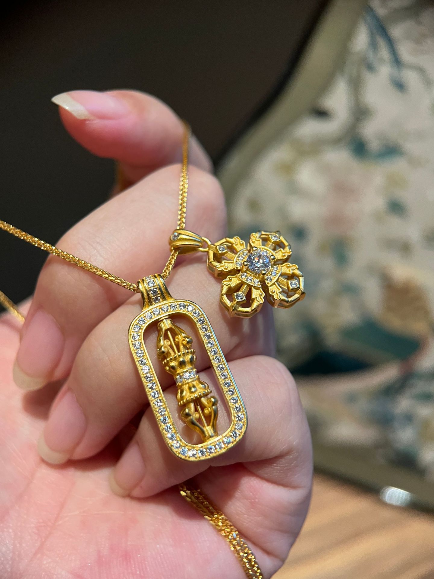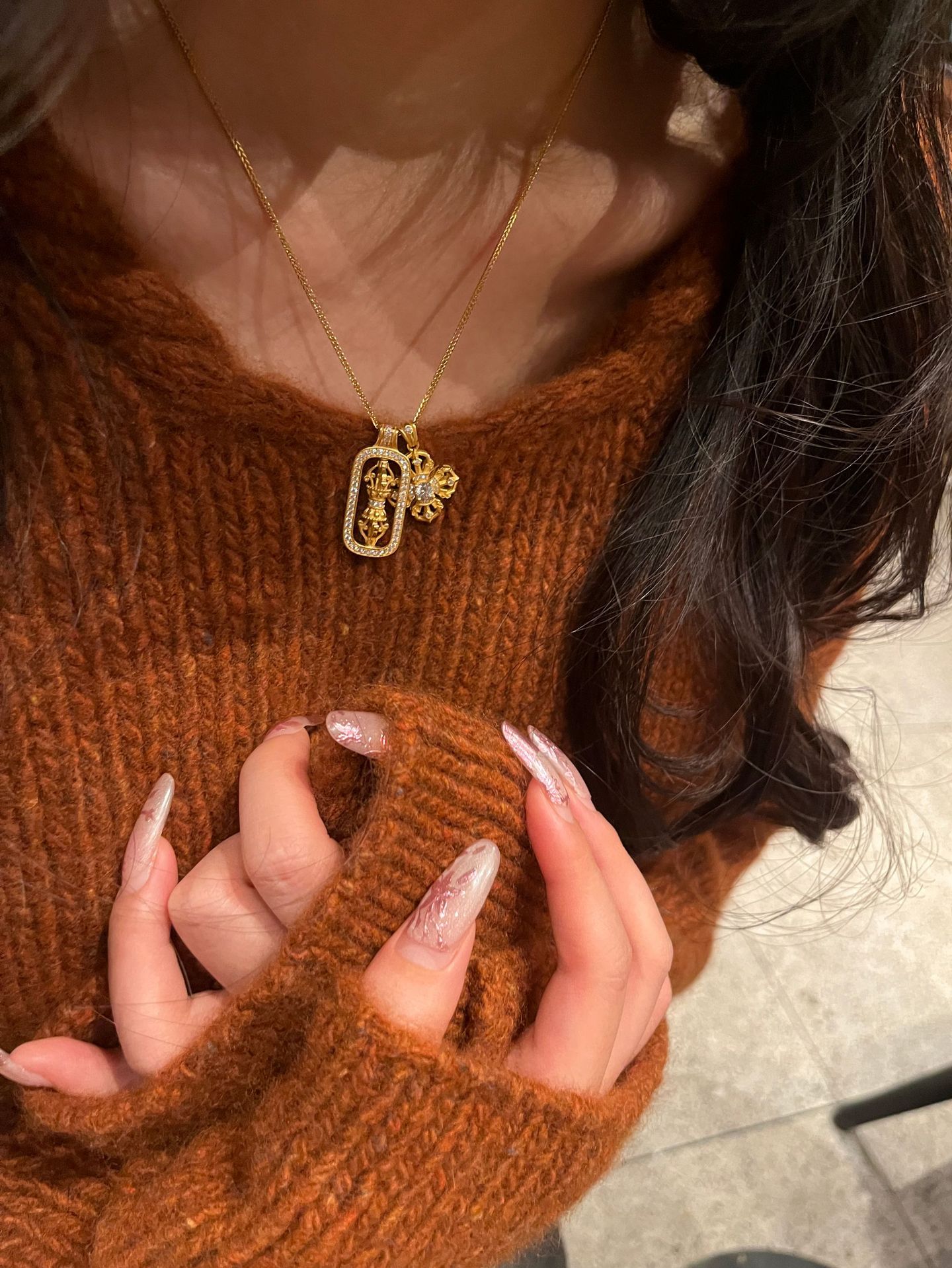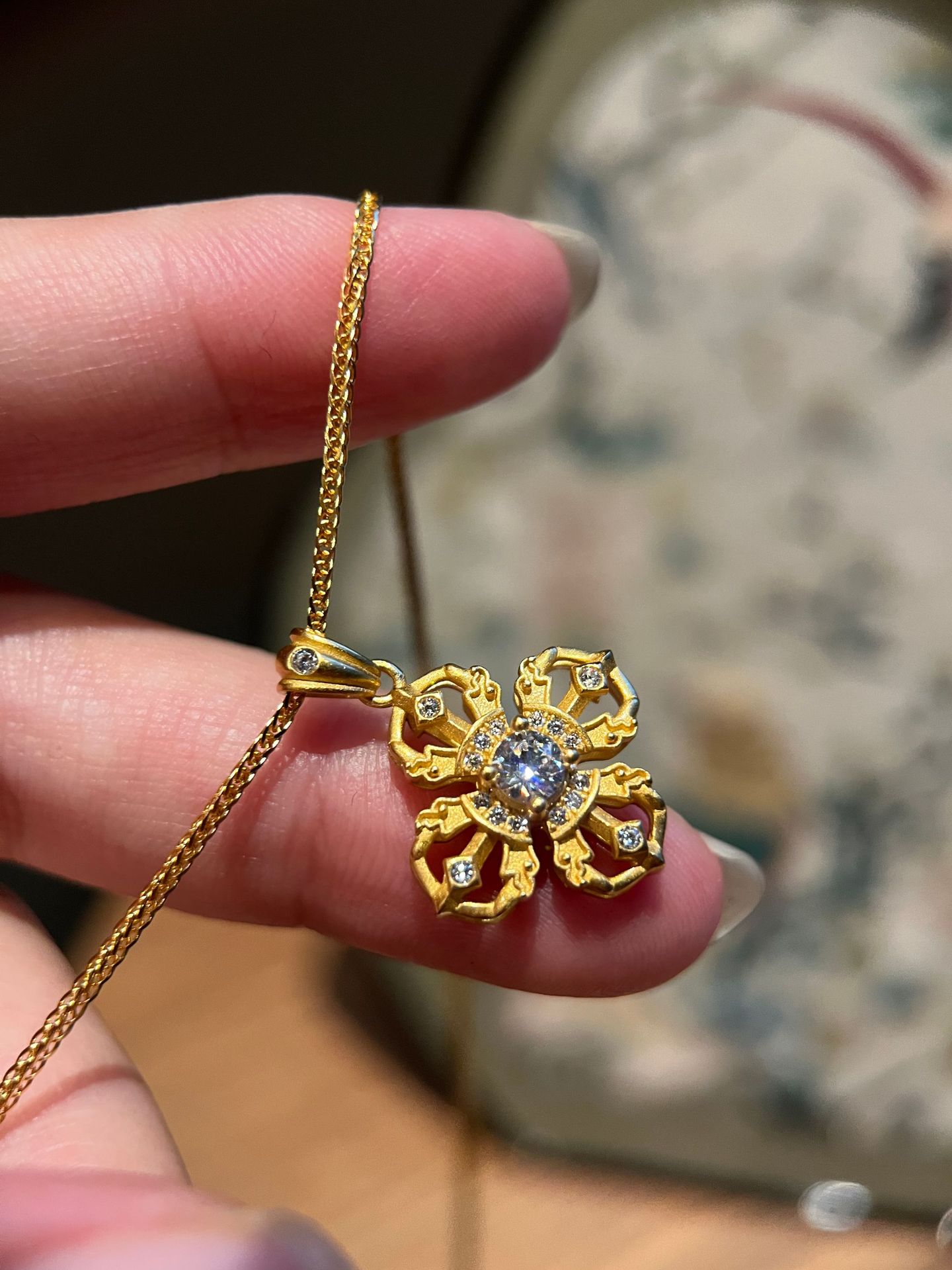 Gold flat ancient method heavy industry vajra necklace silver gold-plated cross point diamond rotatable pendant live broadcast hit