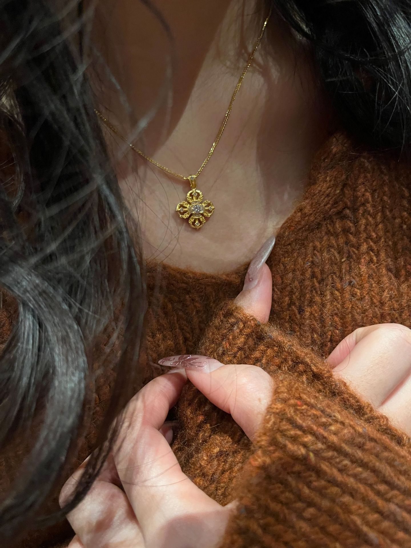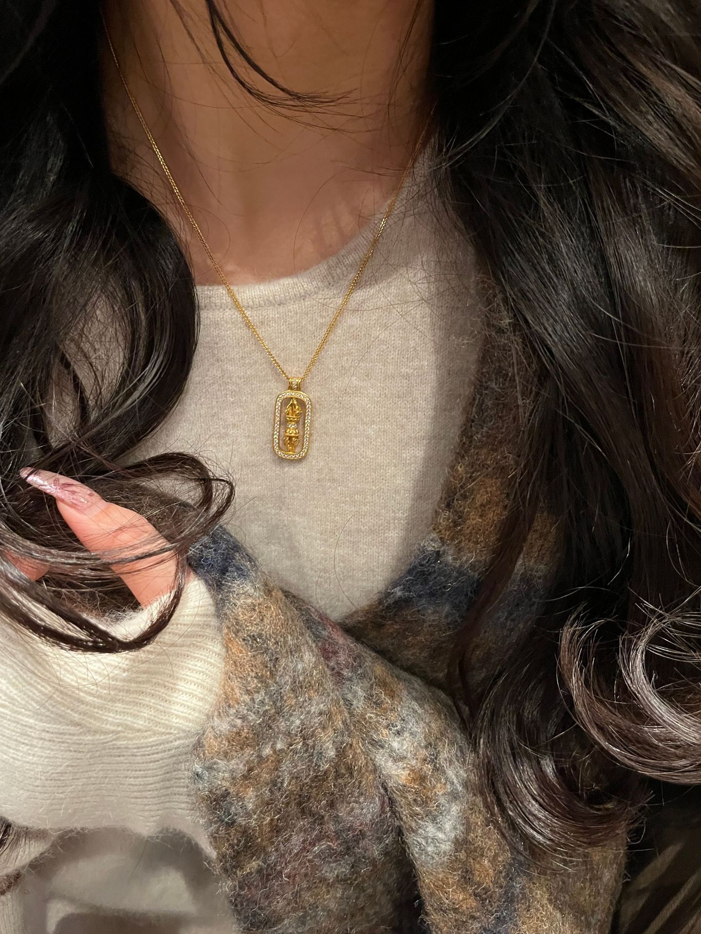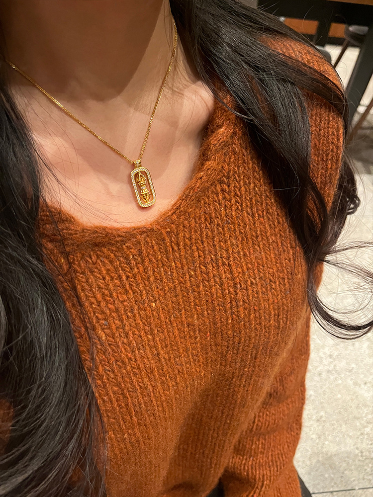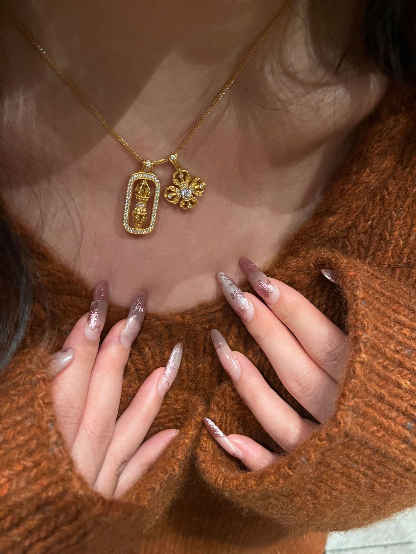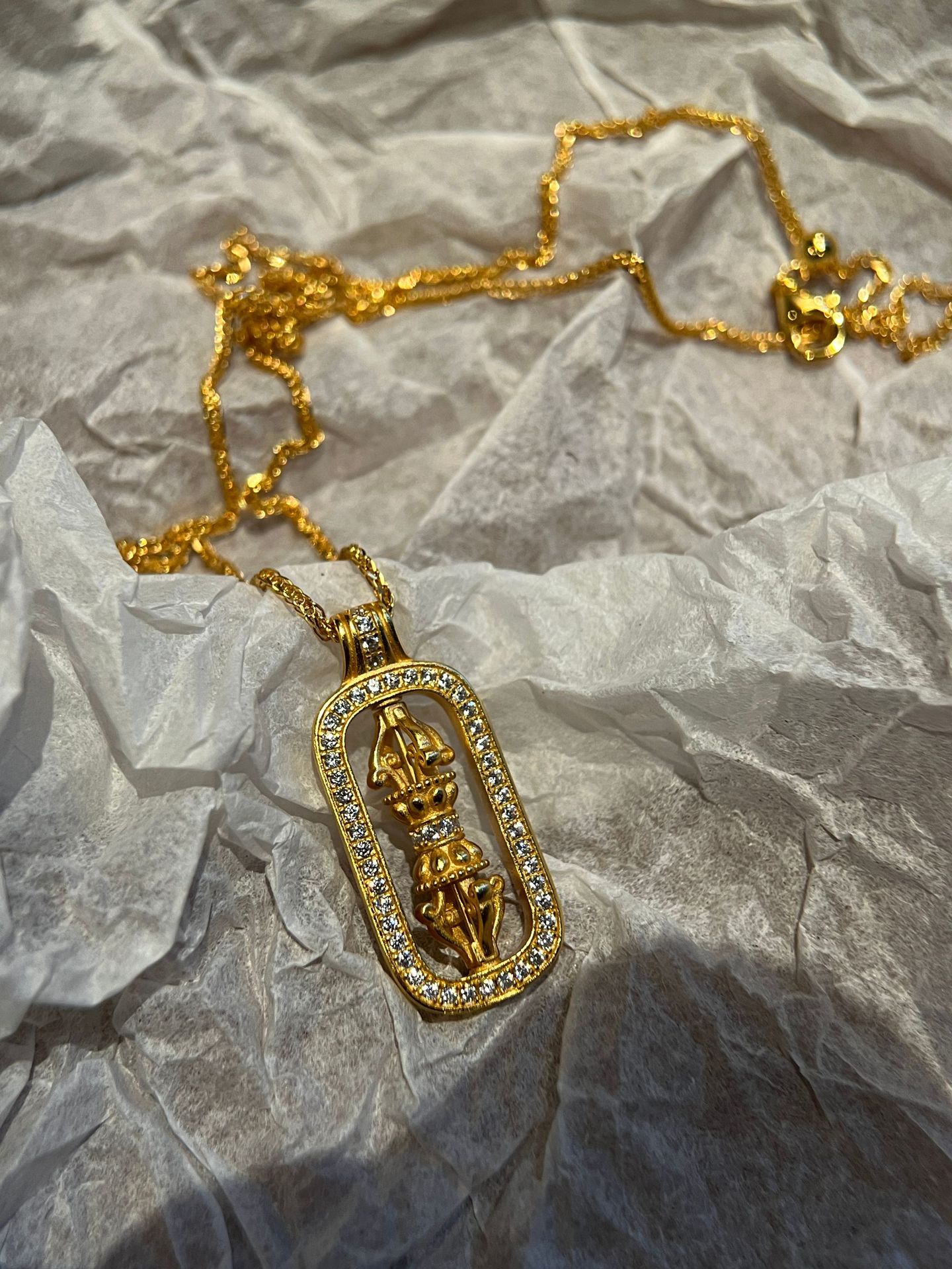 Gold flat ancient method heavy industry vajra necklace silver gold-plated cross point diamond rotatable pendant live broadcast hit