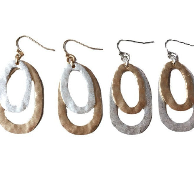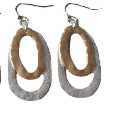 Gold sand silver two-color electroplating irregular oval geometric earrings, Amazon hot-selling women's earrings earrings