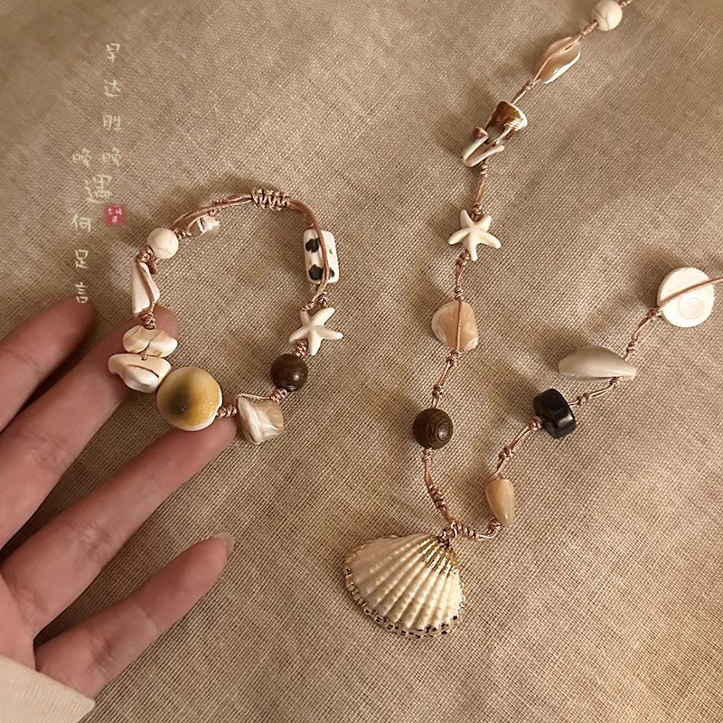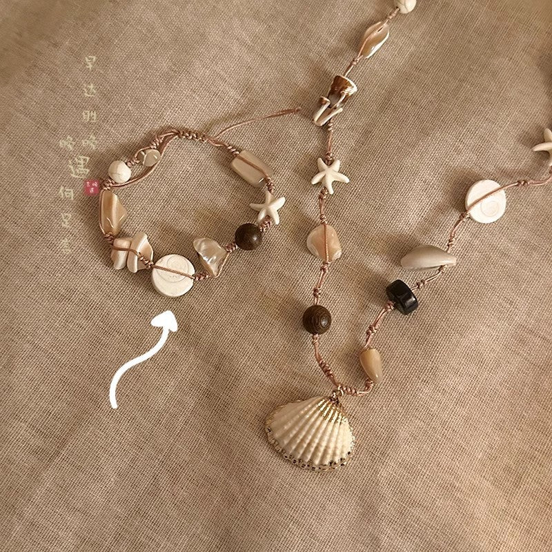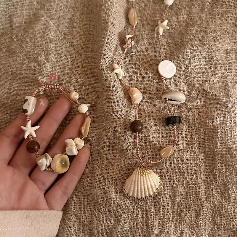 Handmade~ Imitation natural stone shell necklace women's spring and summer seaside vacation style collarbone chain Bohemian style accessories