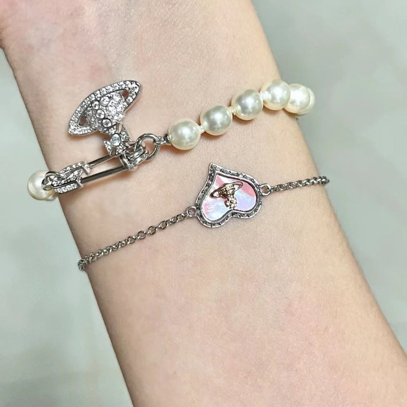 Heartbeat series of Queen Mother West natural pink shell love bracelet gold silver hot hand ornament women's model