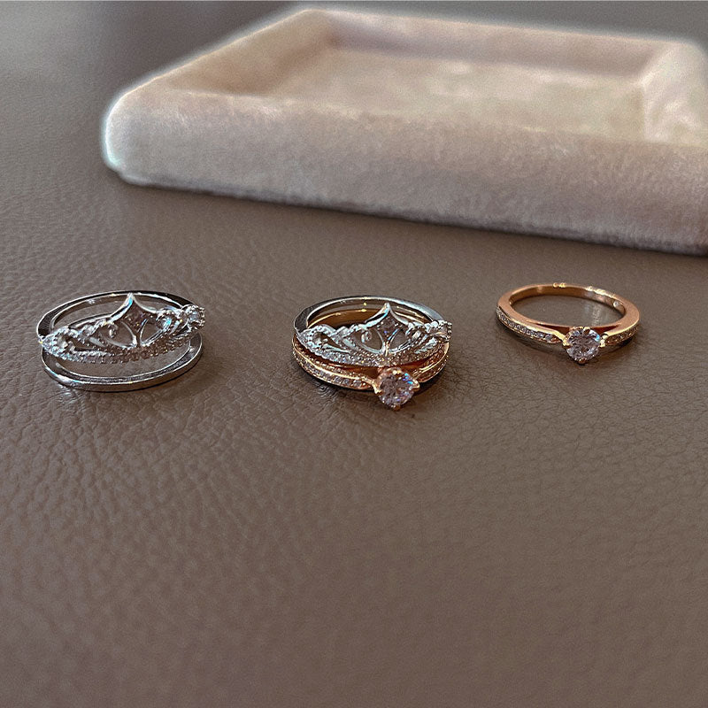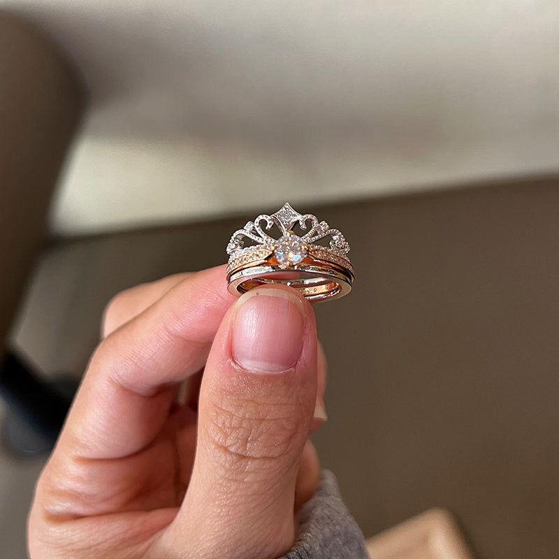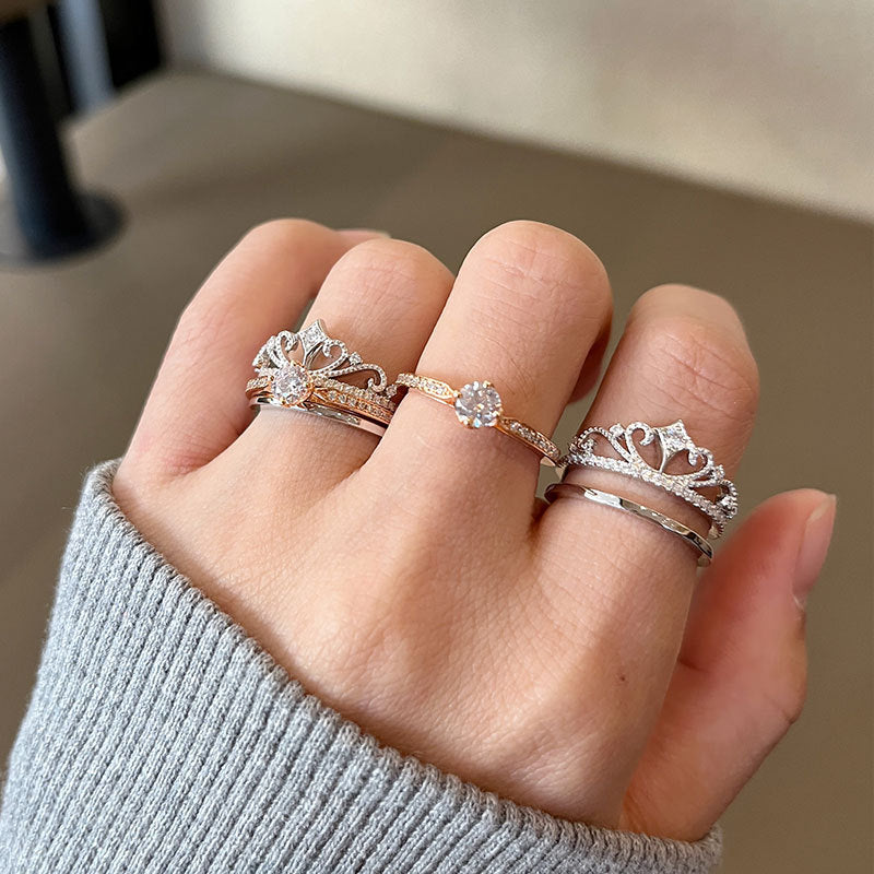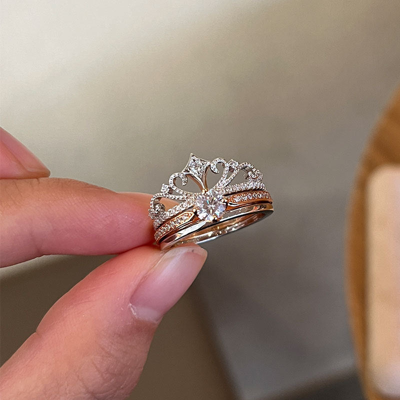 Heavy industry model fireworks castle hollow ring a multi-wear crown ring female niche high-end design model stacked