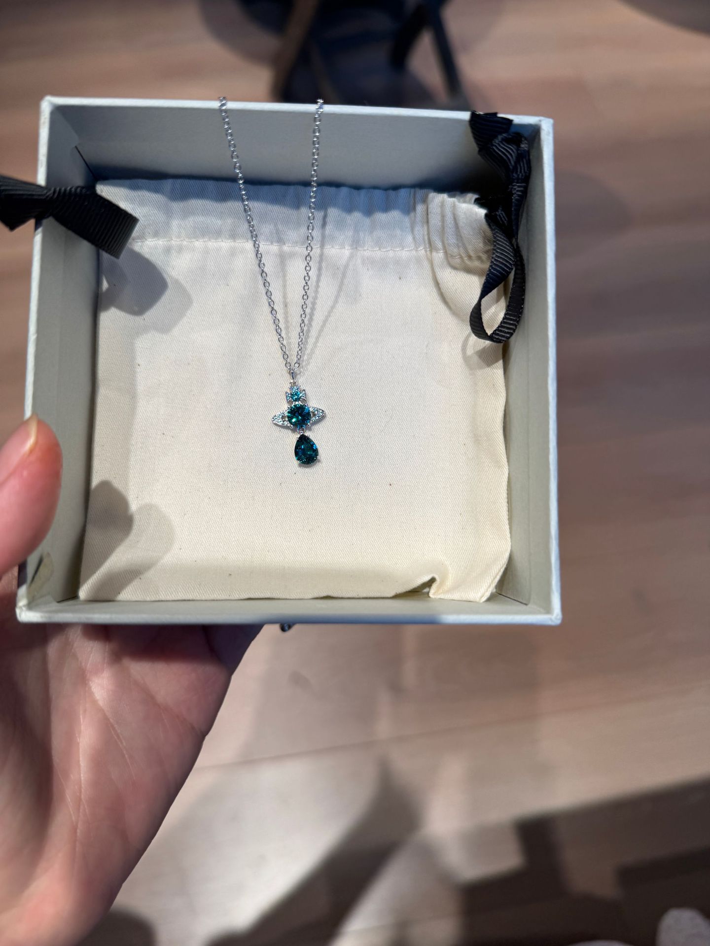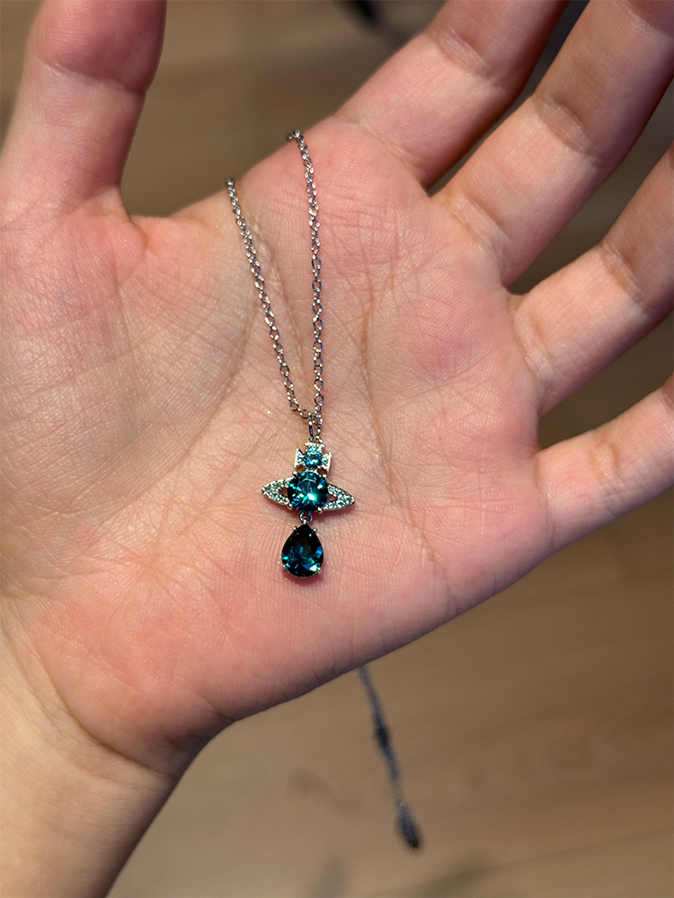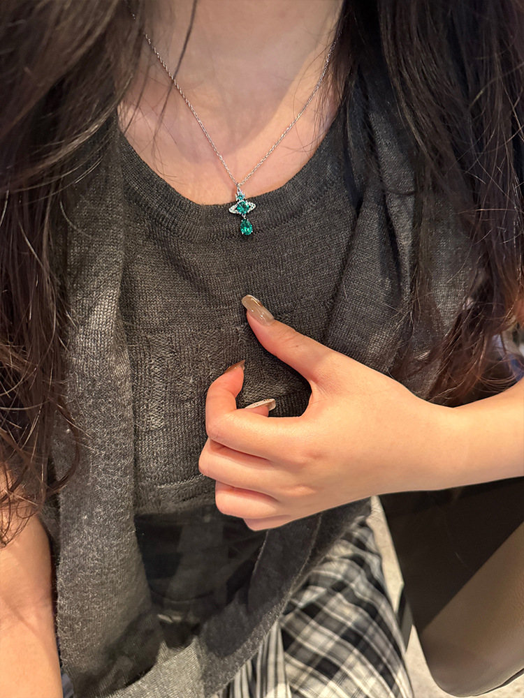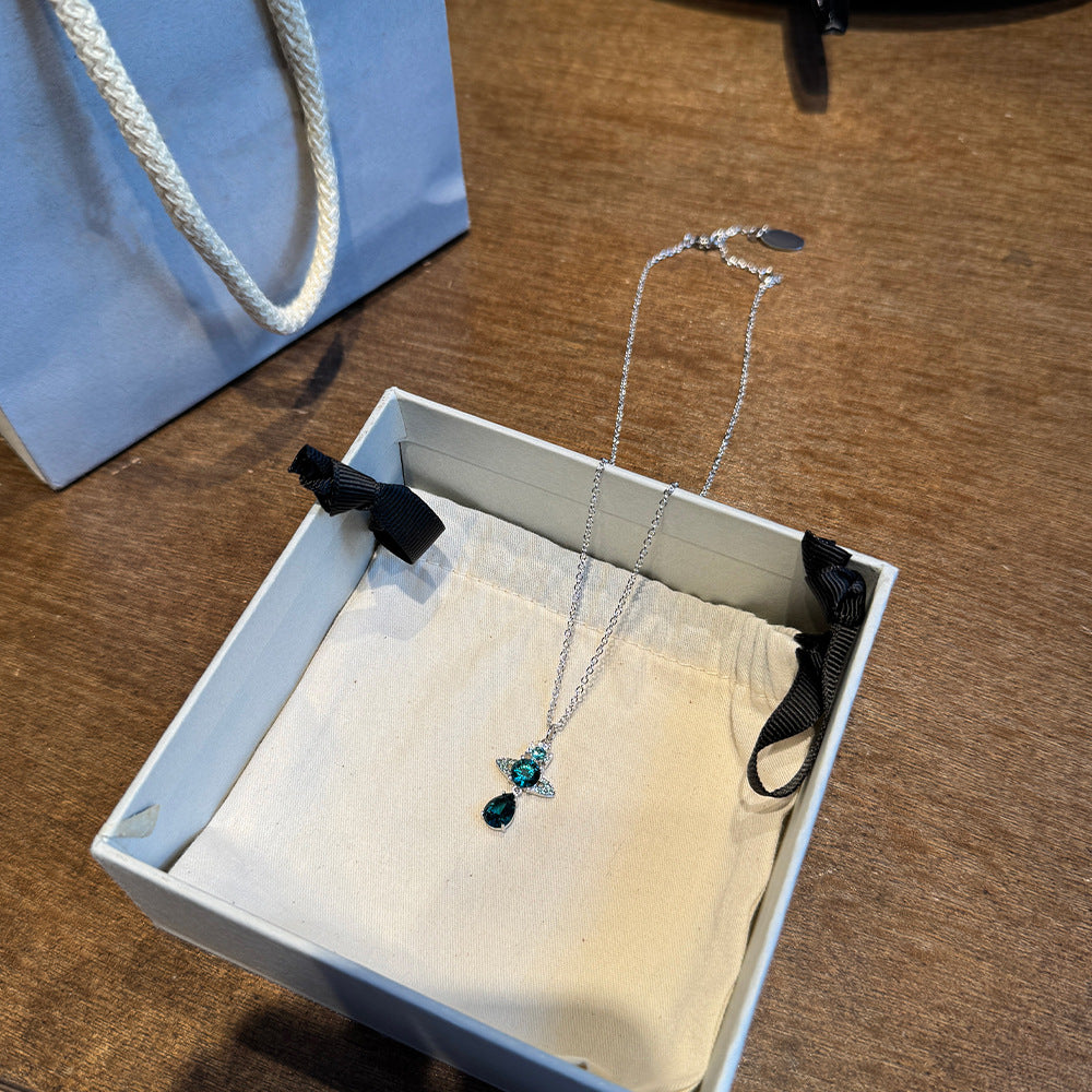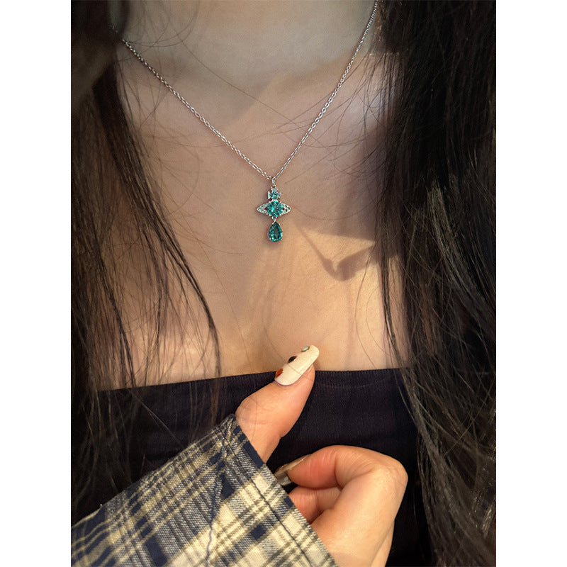 High version Empress Dowager Xi emerald mermaid tears Saturn necklace limited sparkle blue emerald water drop diamond necklace