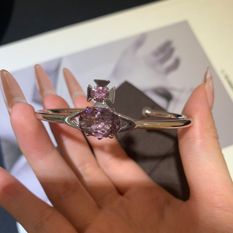 High version of the Queen Mother of the West Limited Purple Diamond Saturn Dreamcatcher Bracelet Hollow Oval Diamond Opening Adjustable Bracelet
