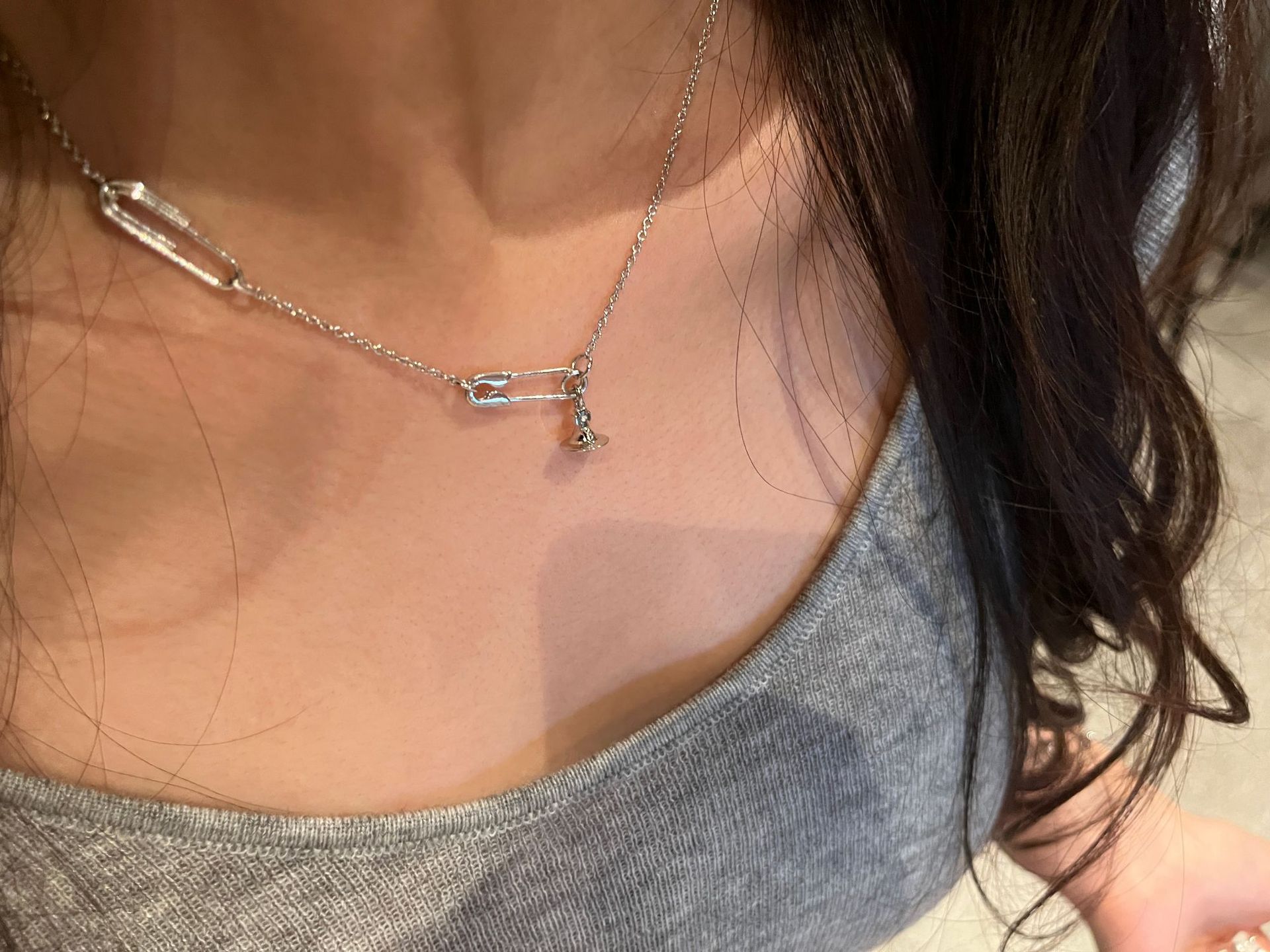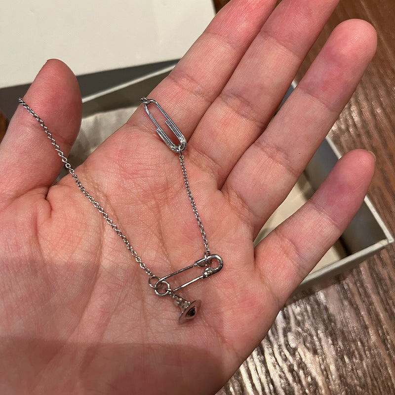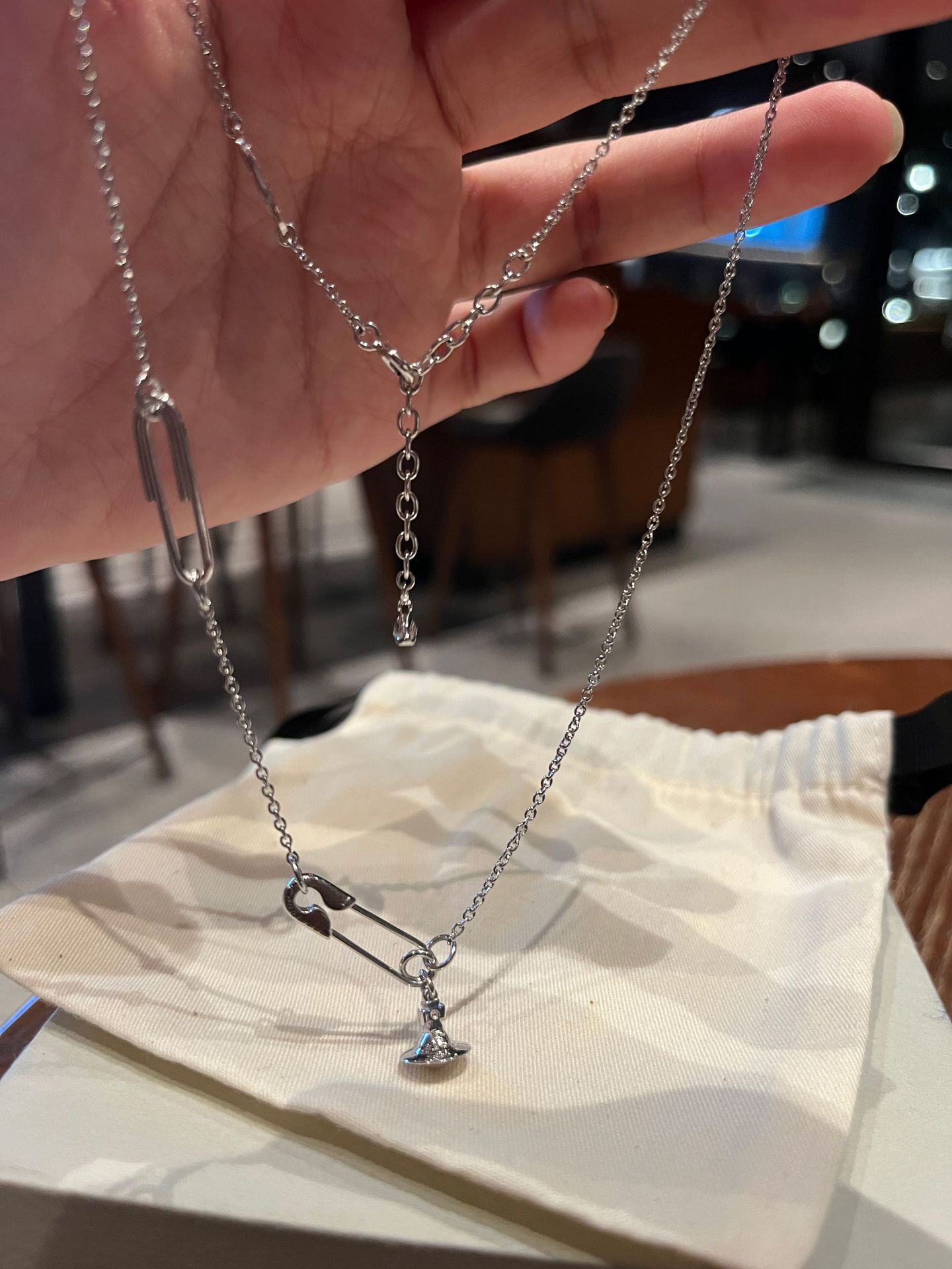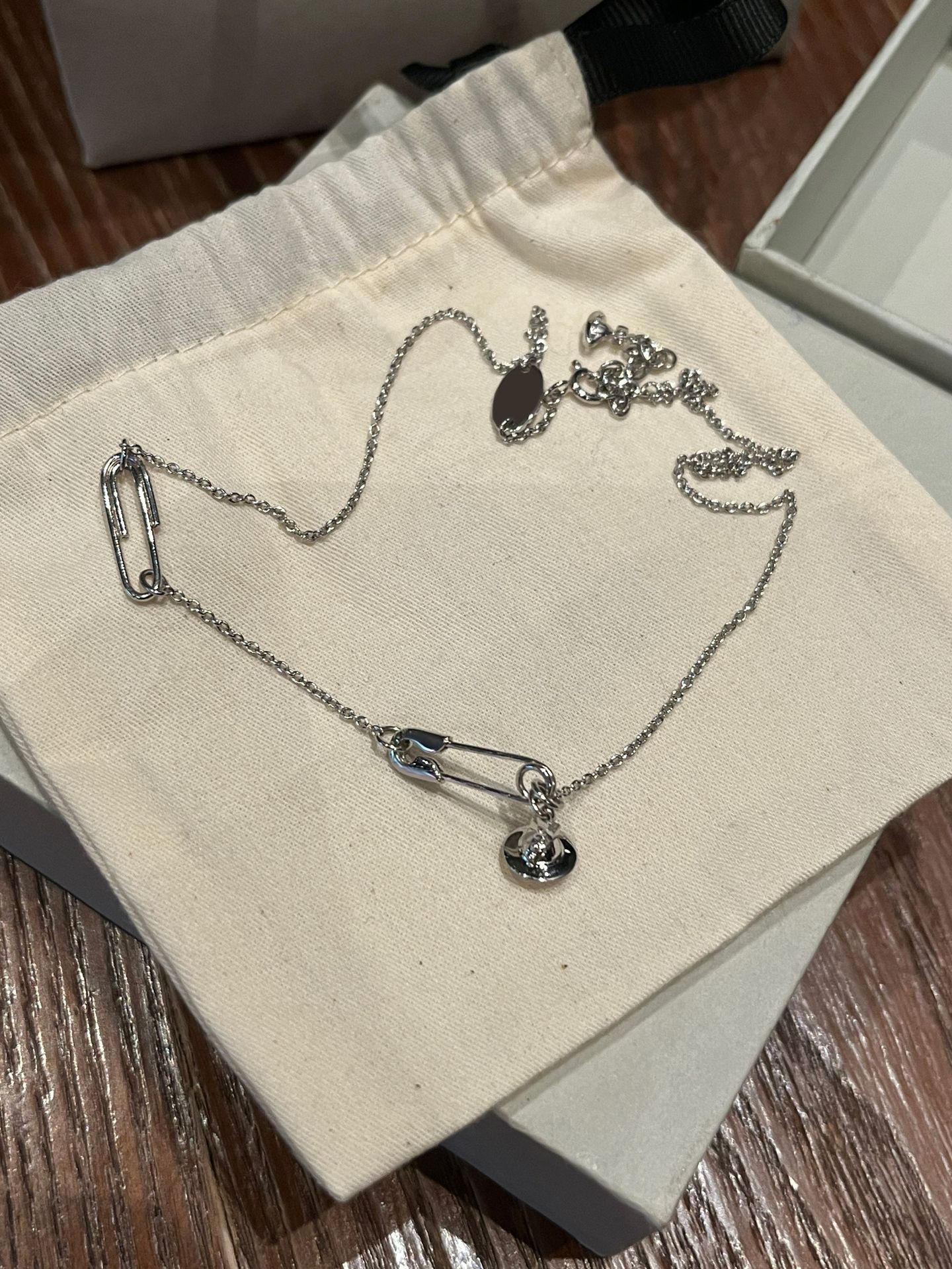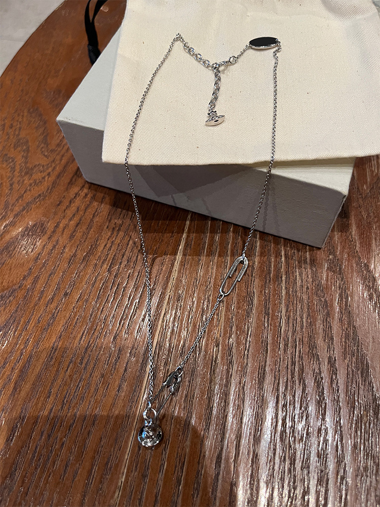 High version Queen Mother West pin three-dimensional Saturn necklace minimalist silver chain glossy paper clip planet pendant necklace