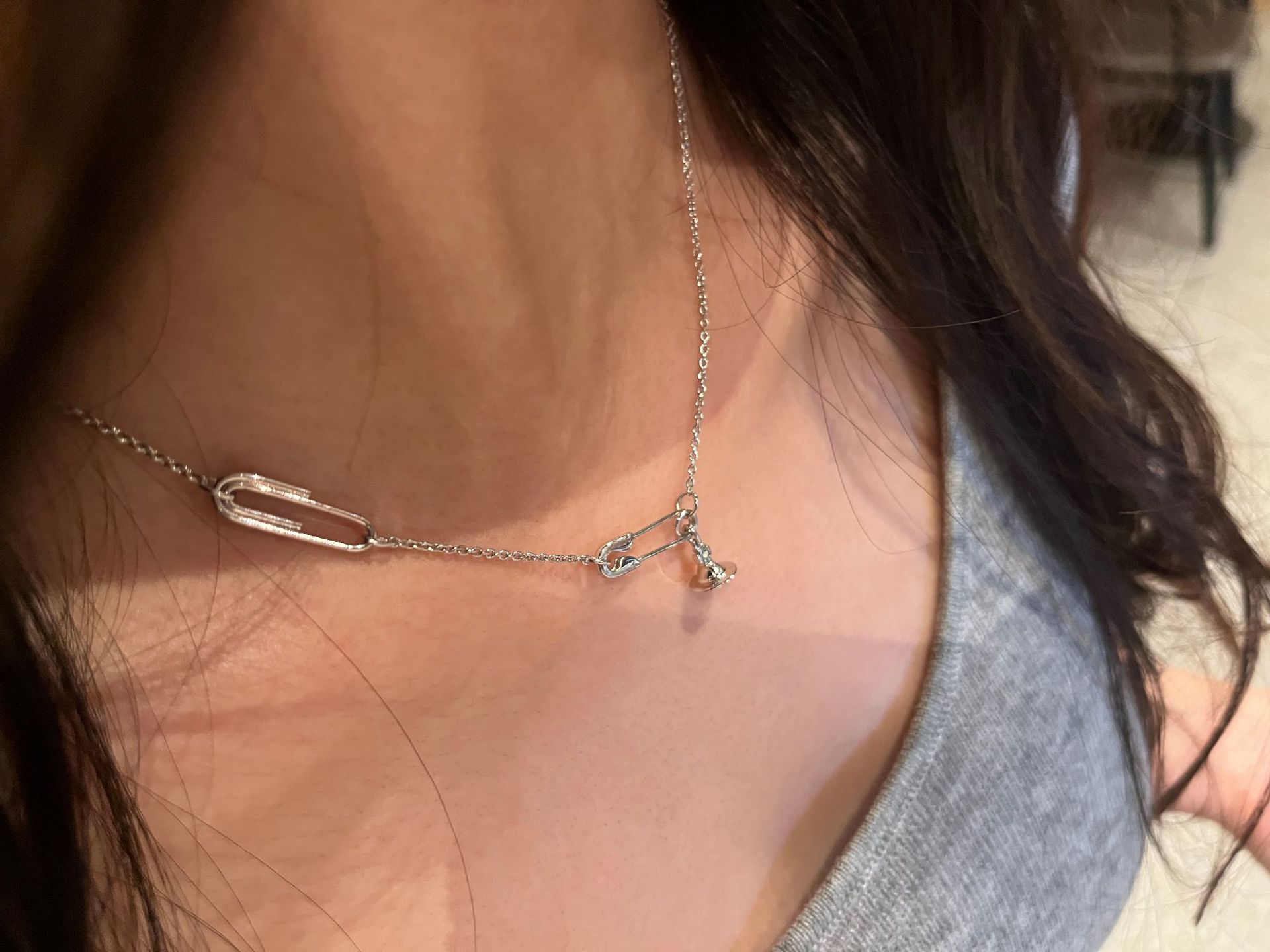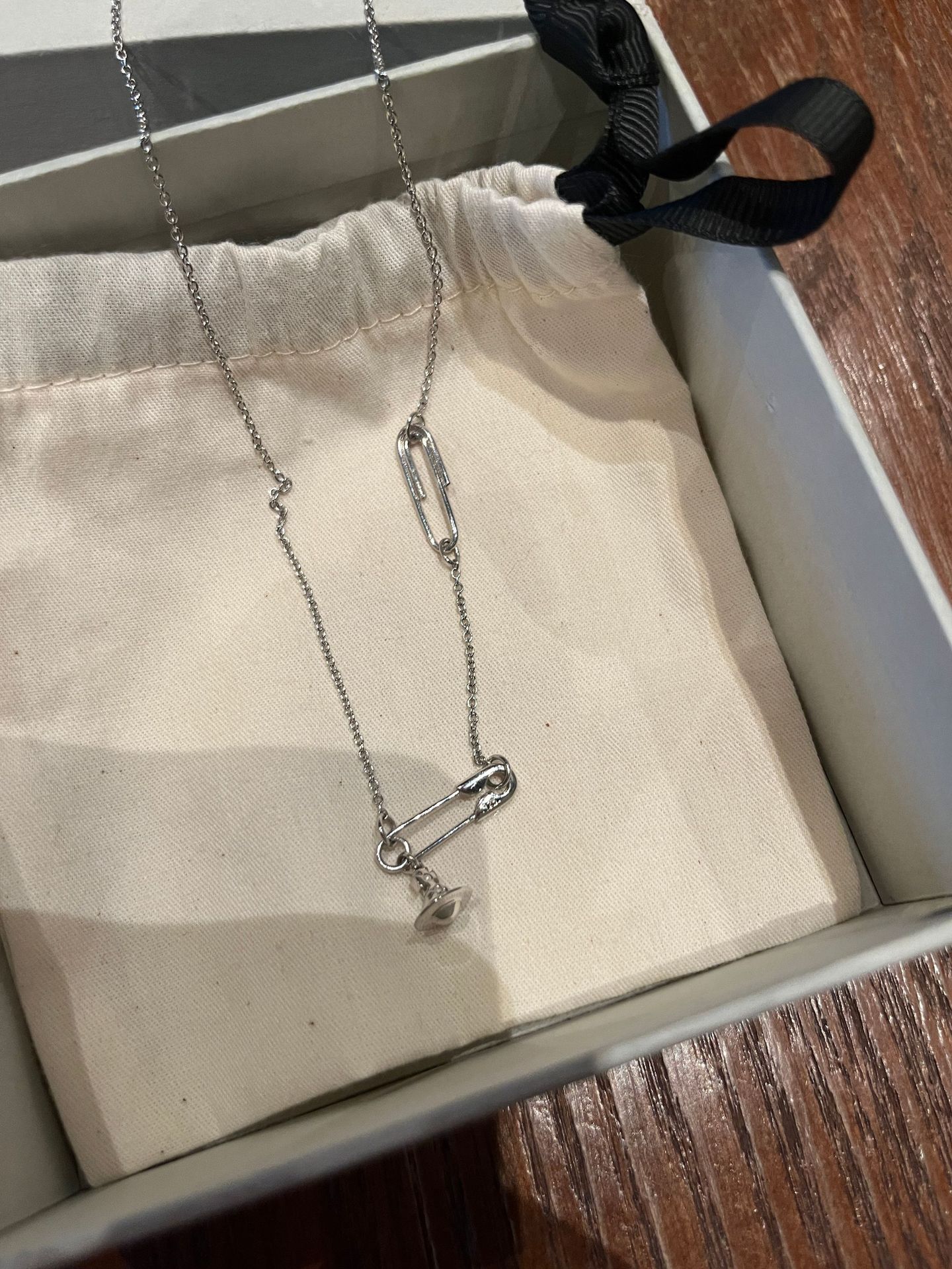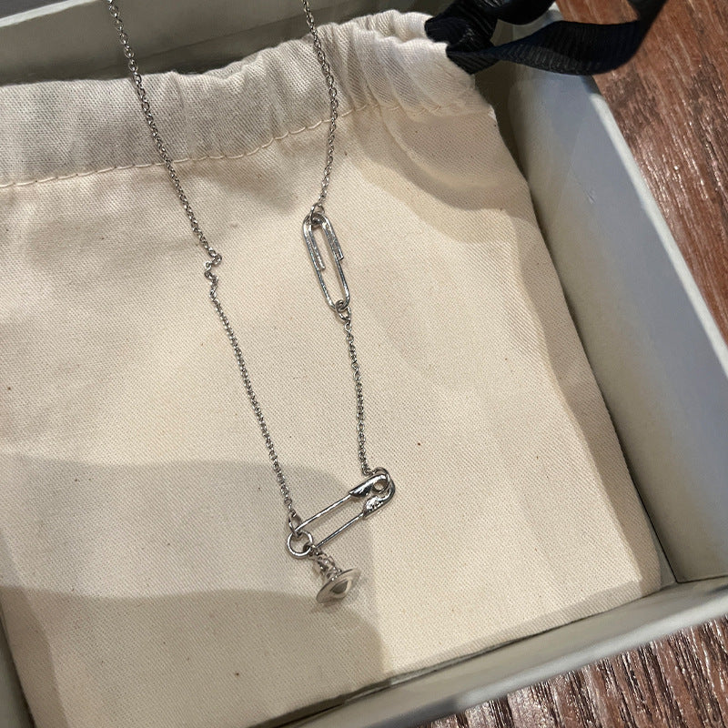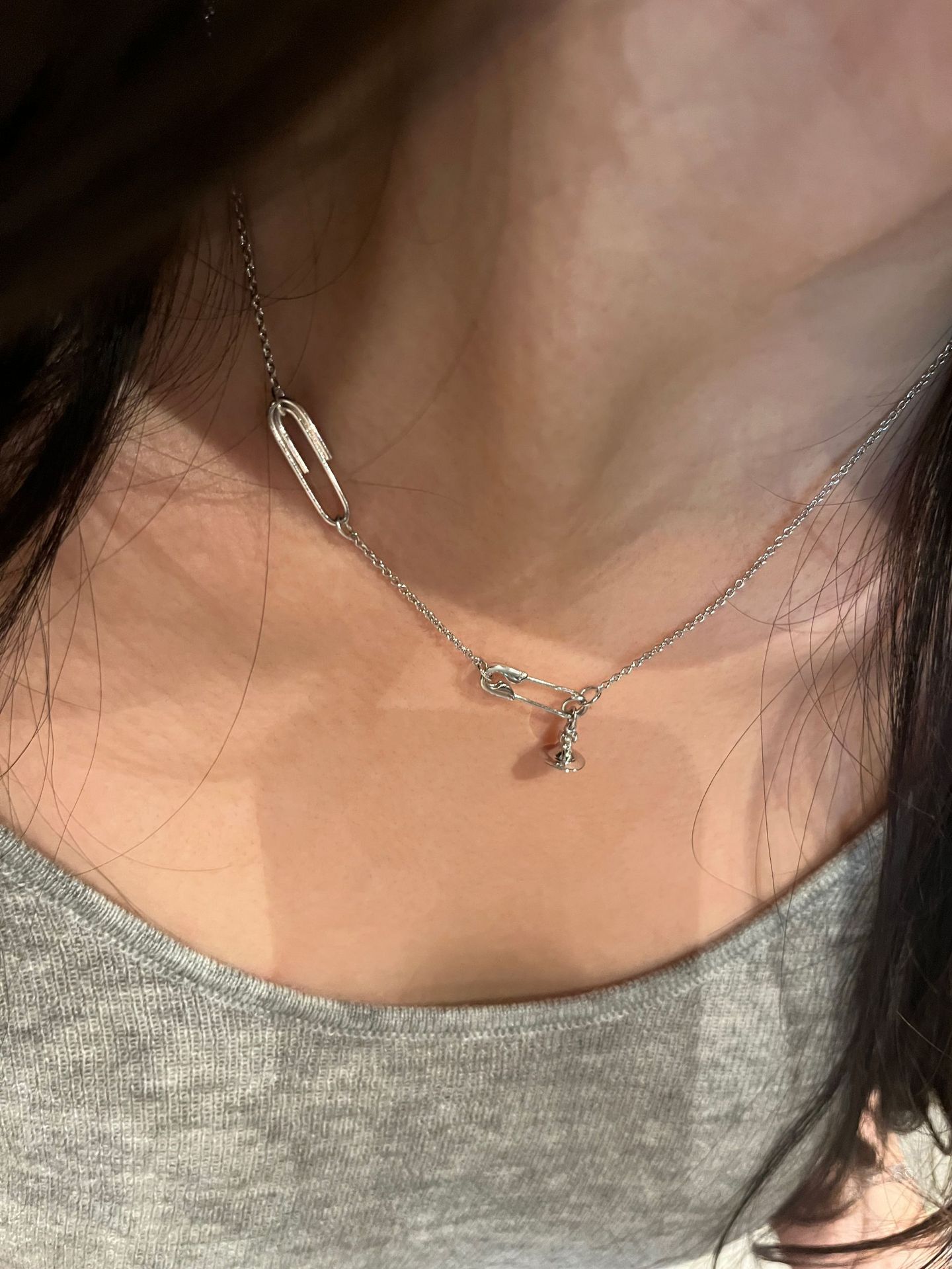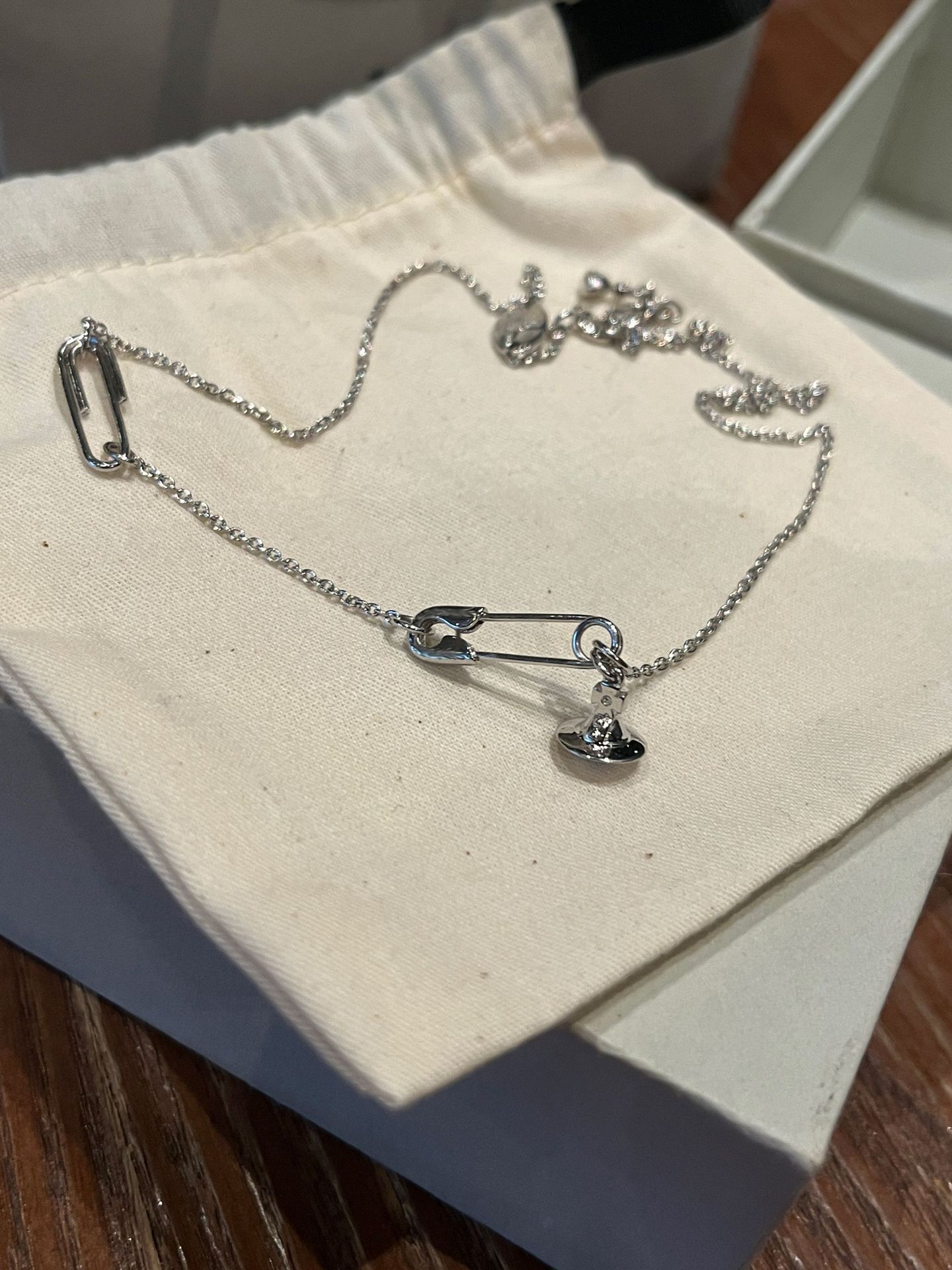 High version Queen Mother West pin three-dimensional Saturn necklace minimalist silver chain glossy paper clip planet pendant necklace