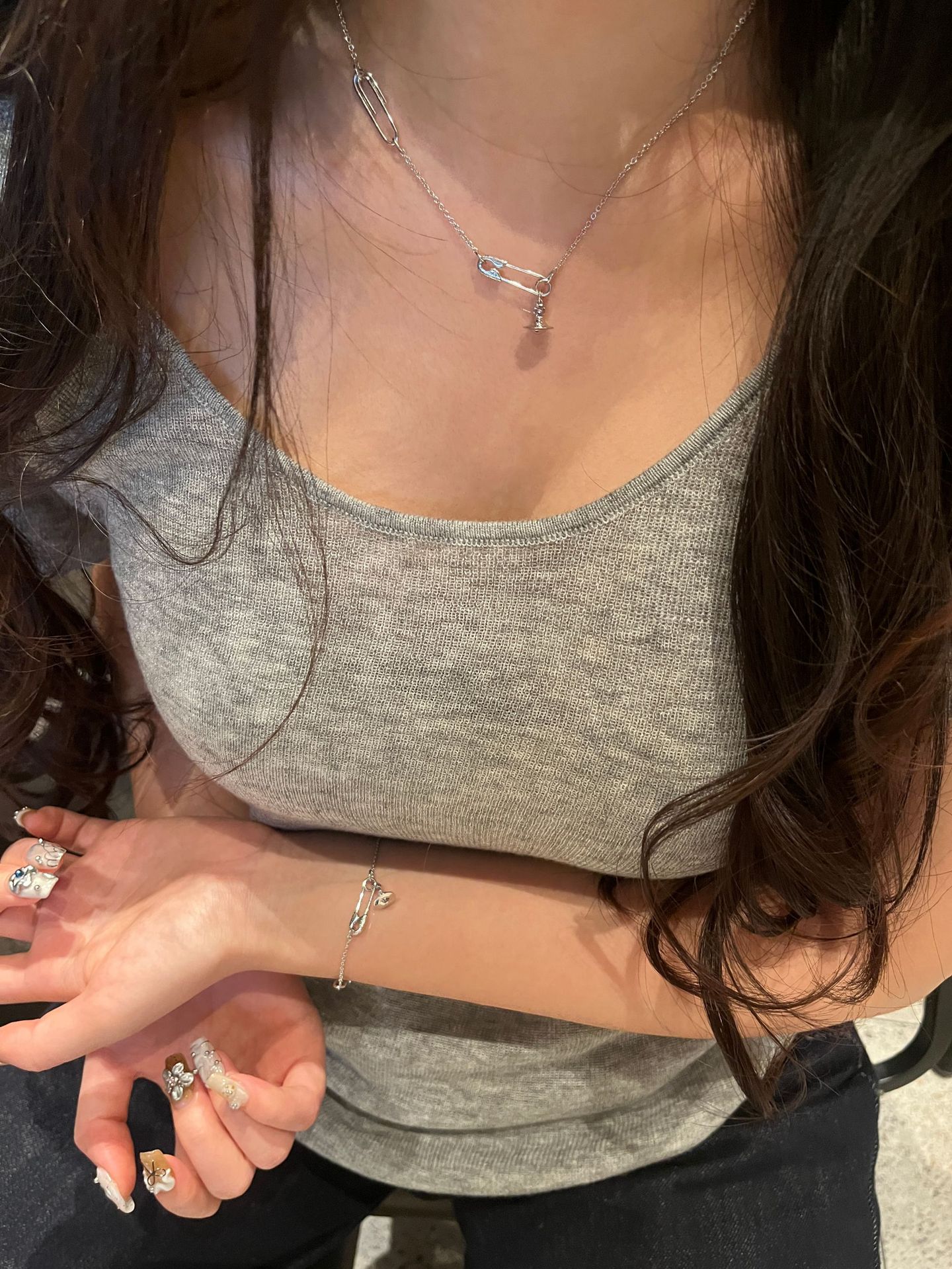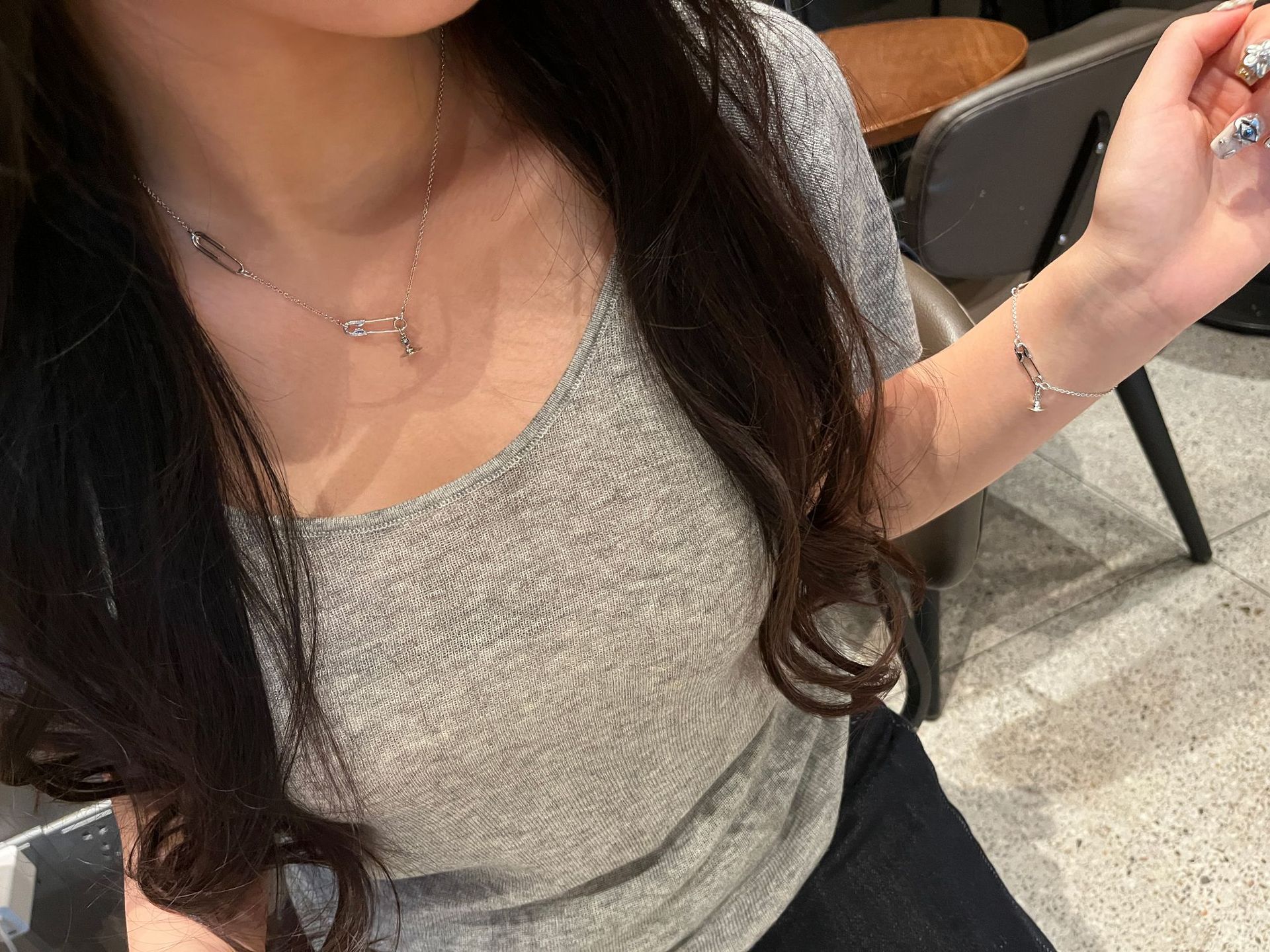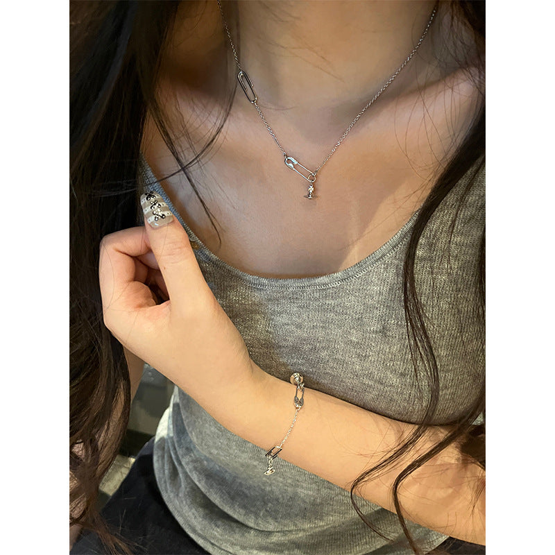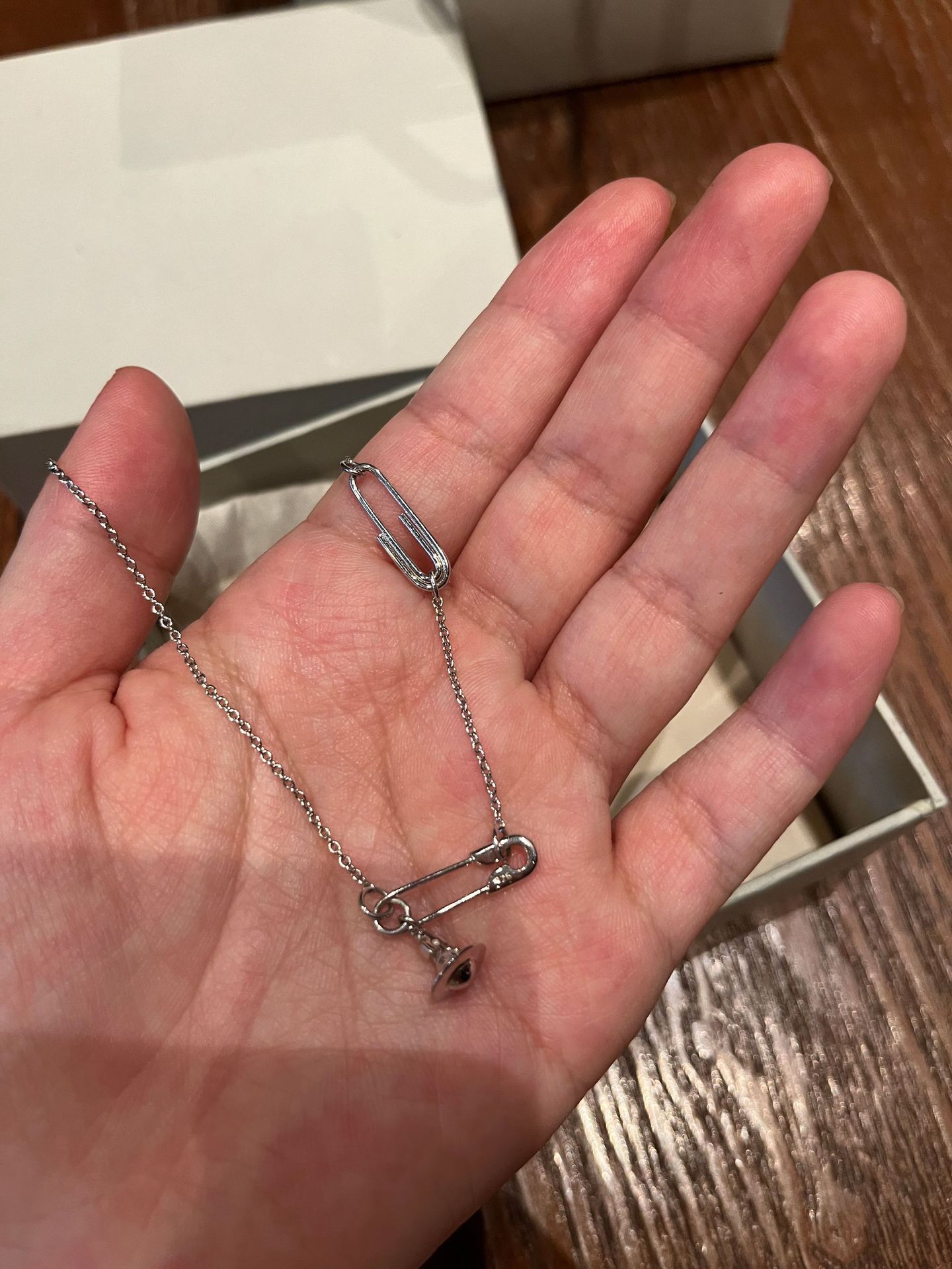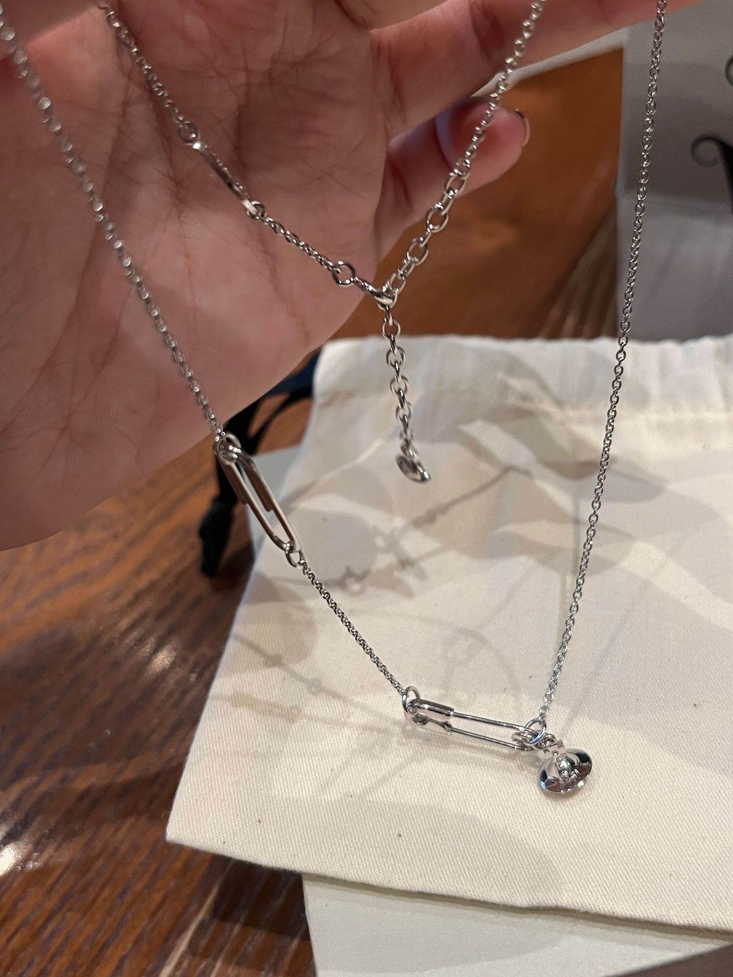 High version Queen Mother West pin three-dimensional Saturn necklace minimalist silver chain glossy paper clip planet pendant necklace