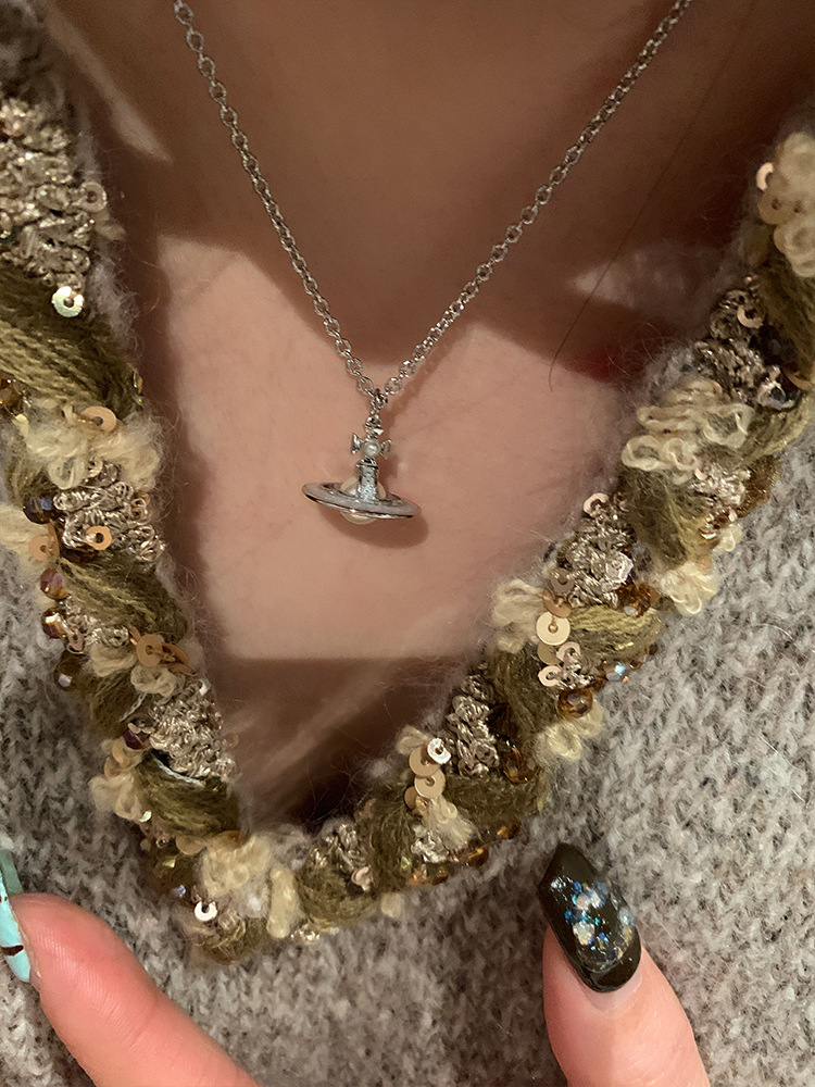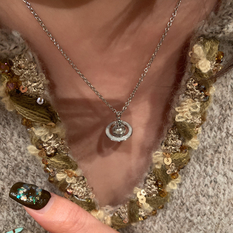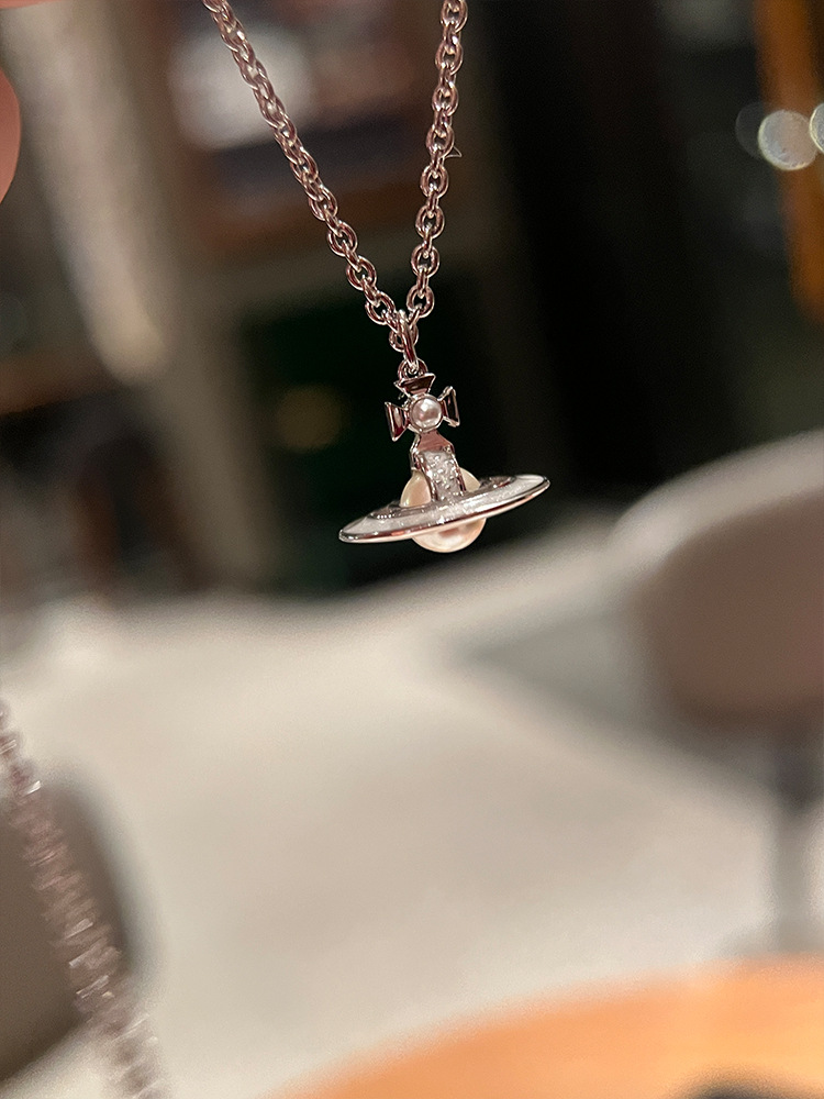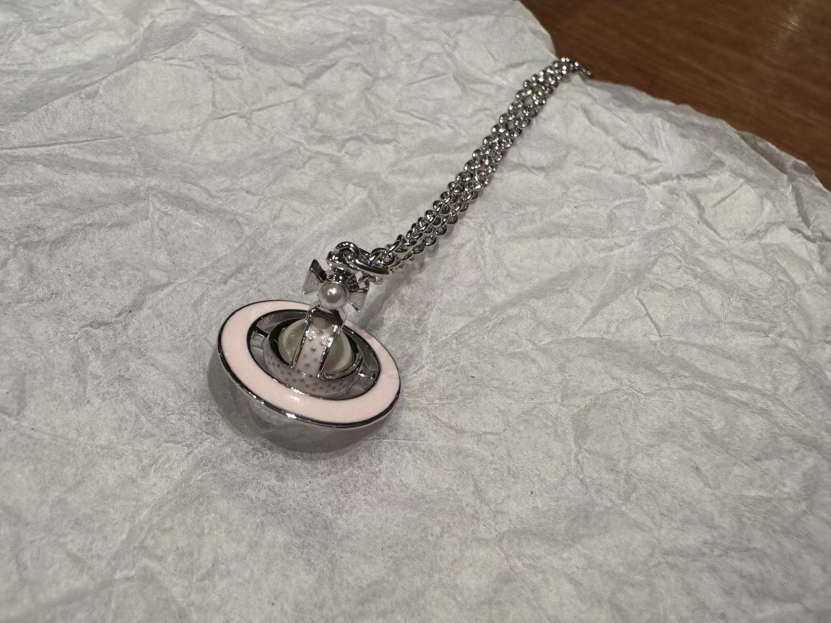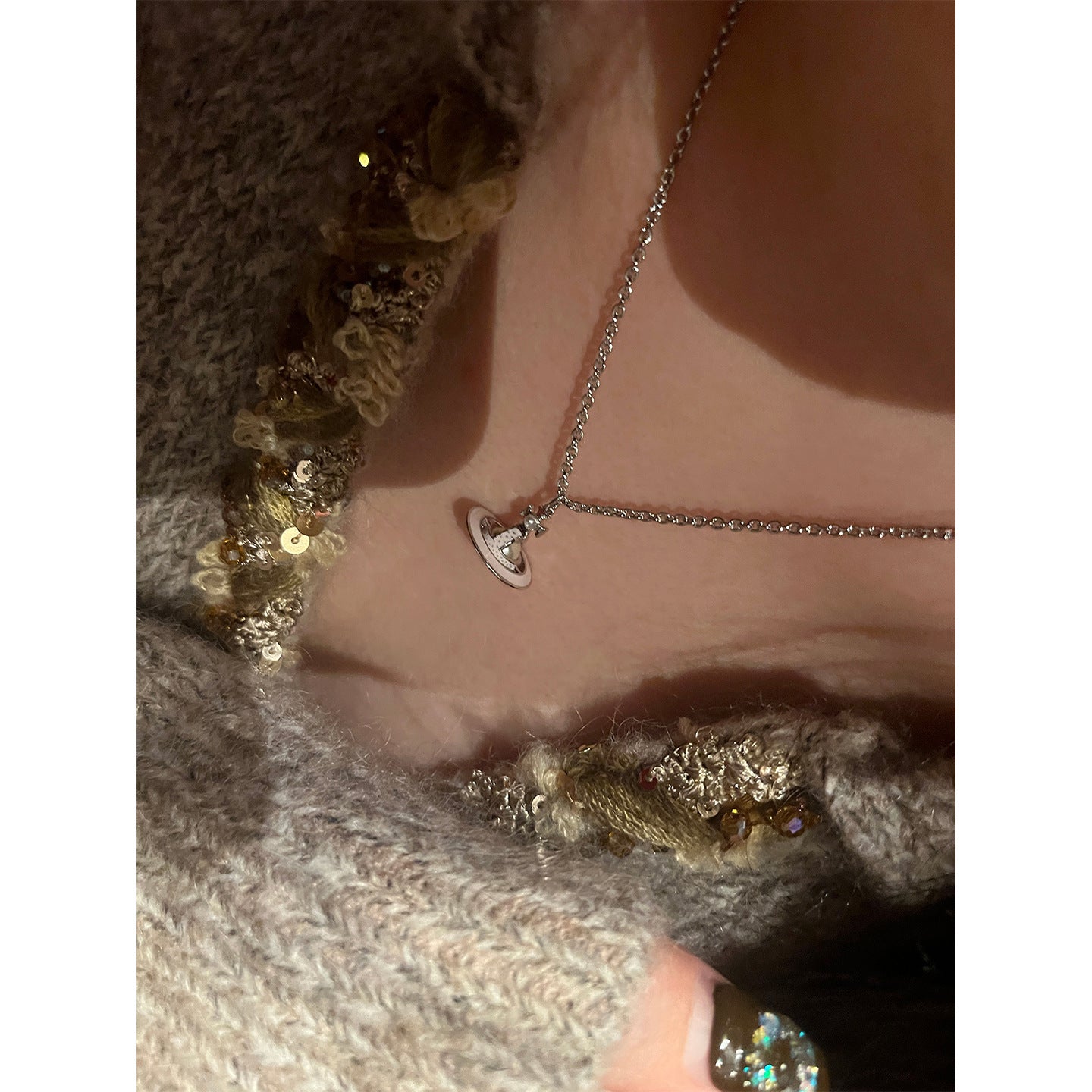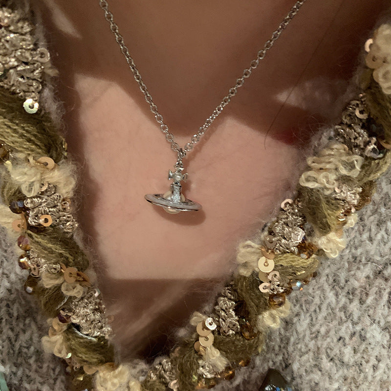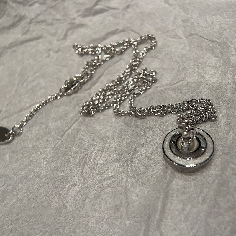 High version Queen West enamel Saturn Aviator necklace gilt orb pearl pendant girly clavicle chain