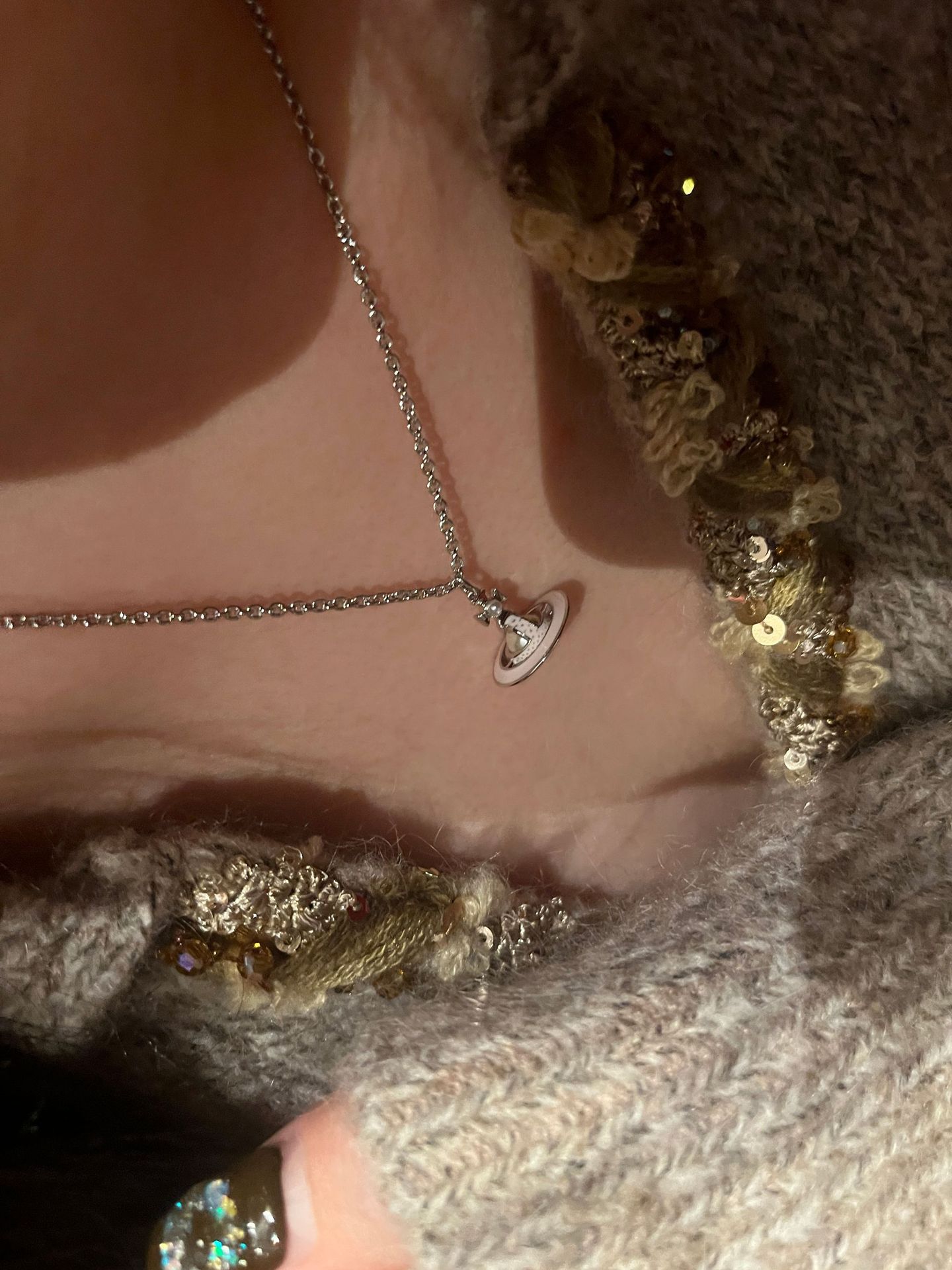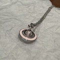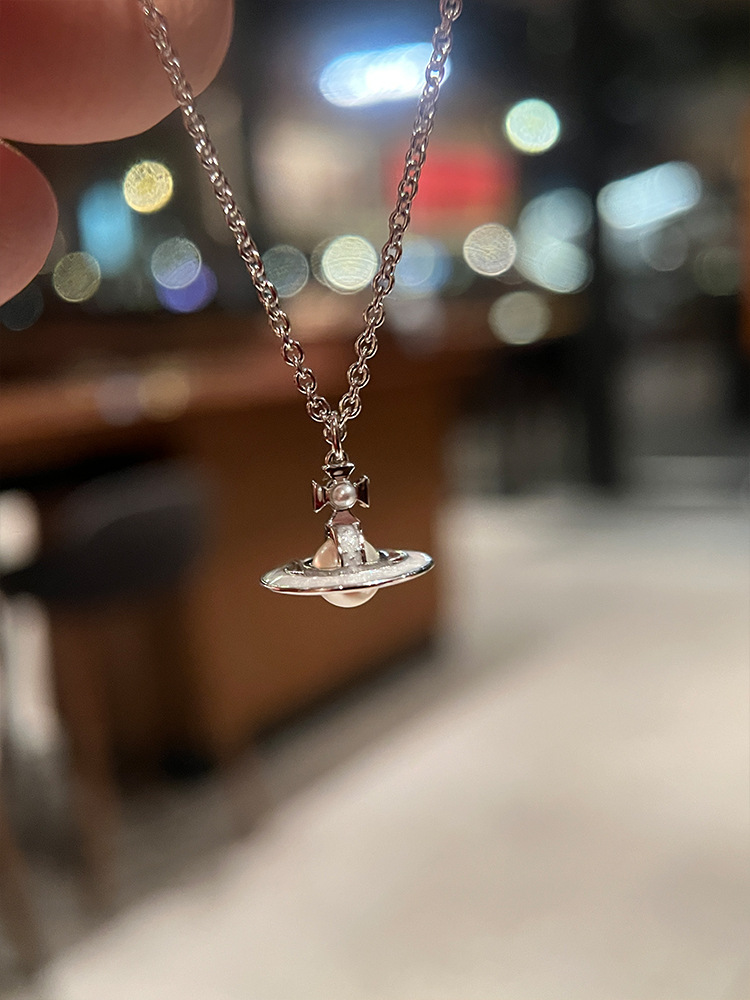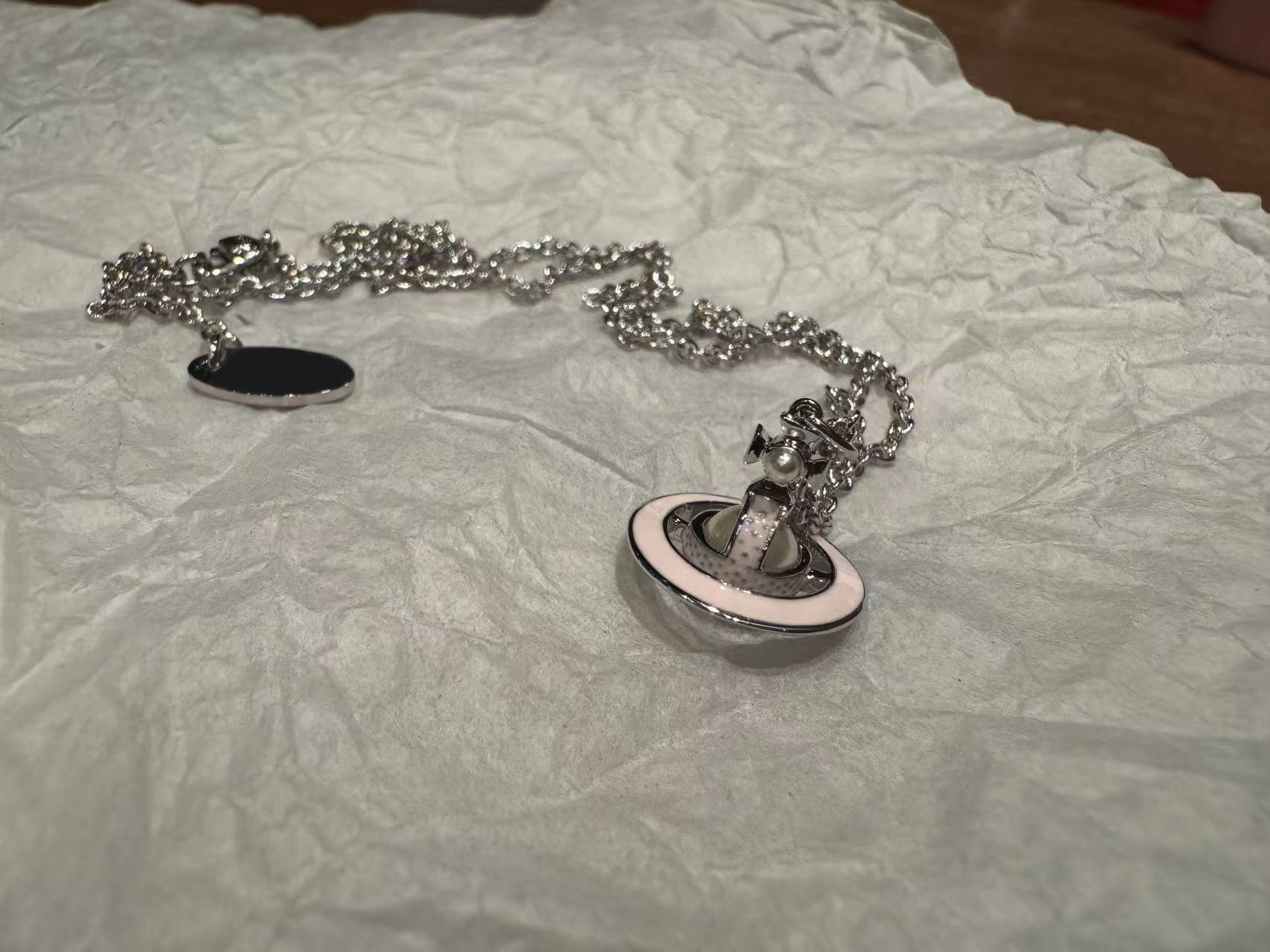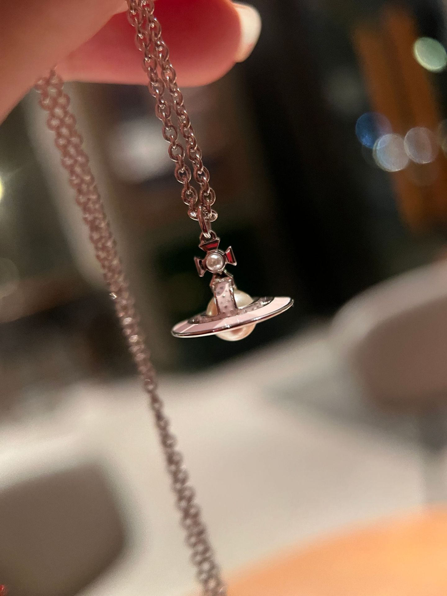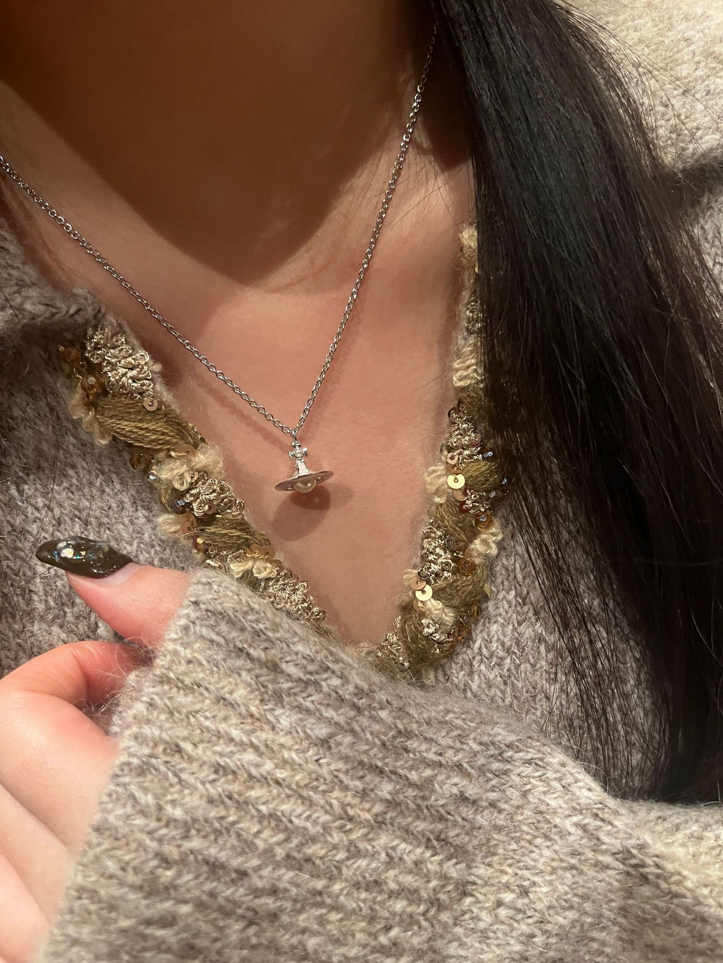 High version Queen West enamel Saturn Aviator necklace gilt orb pearl pendant girly clavicle chain