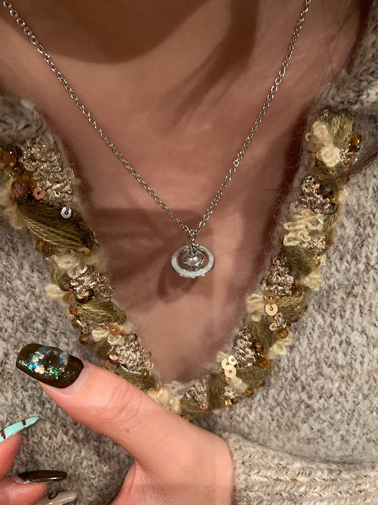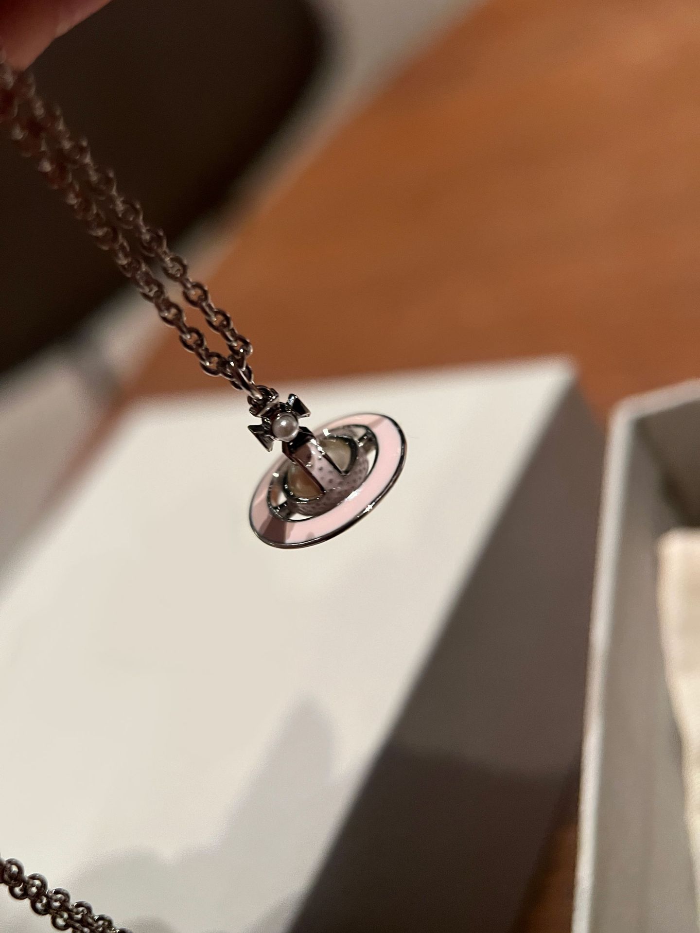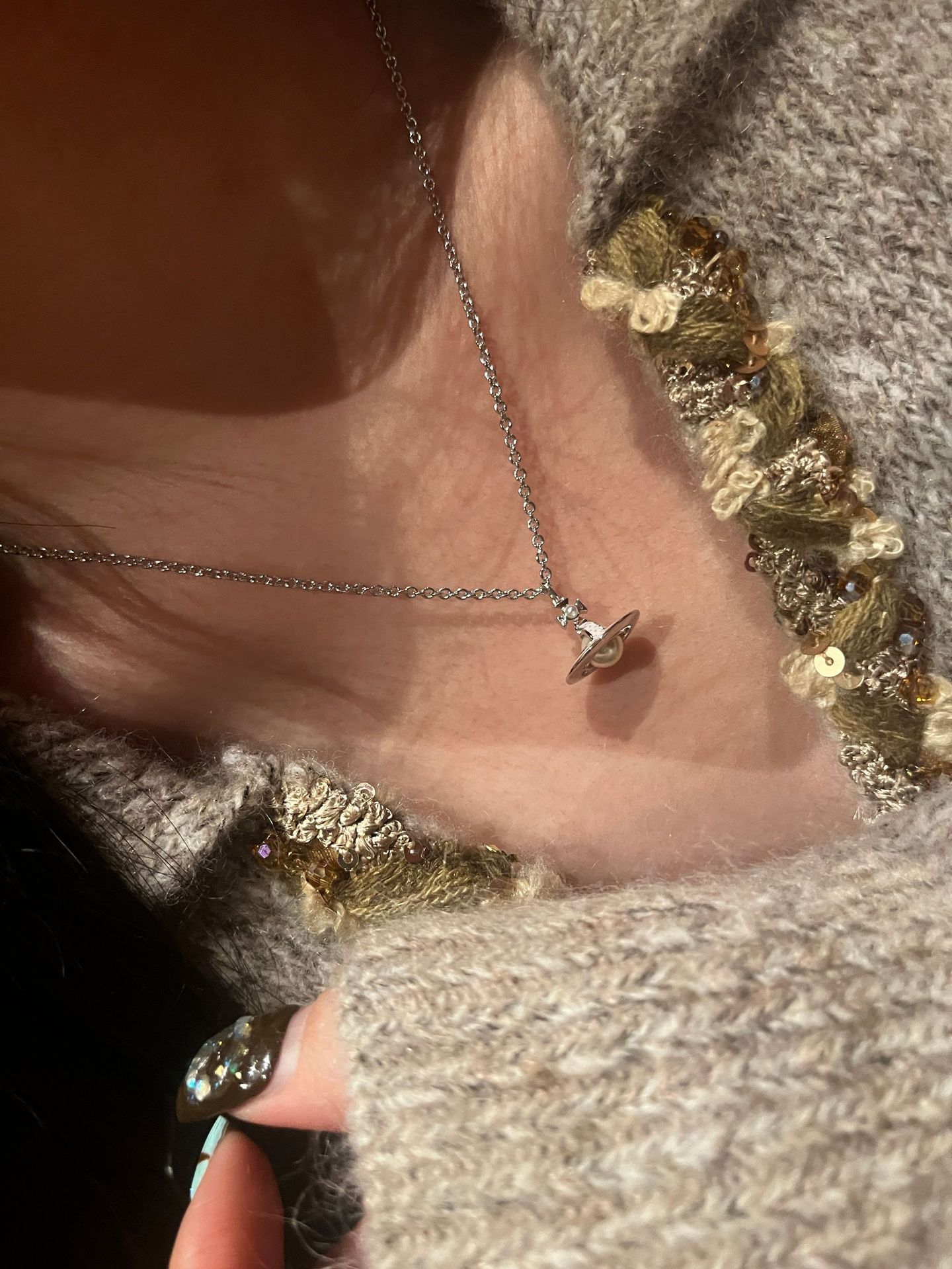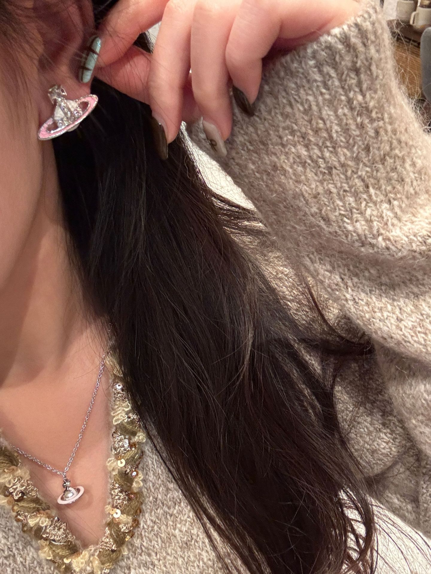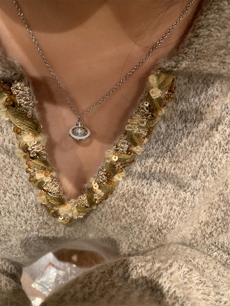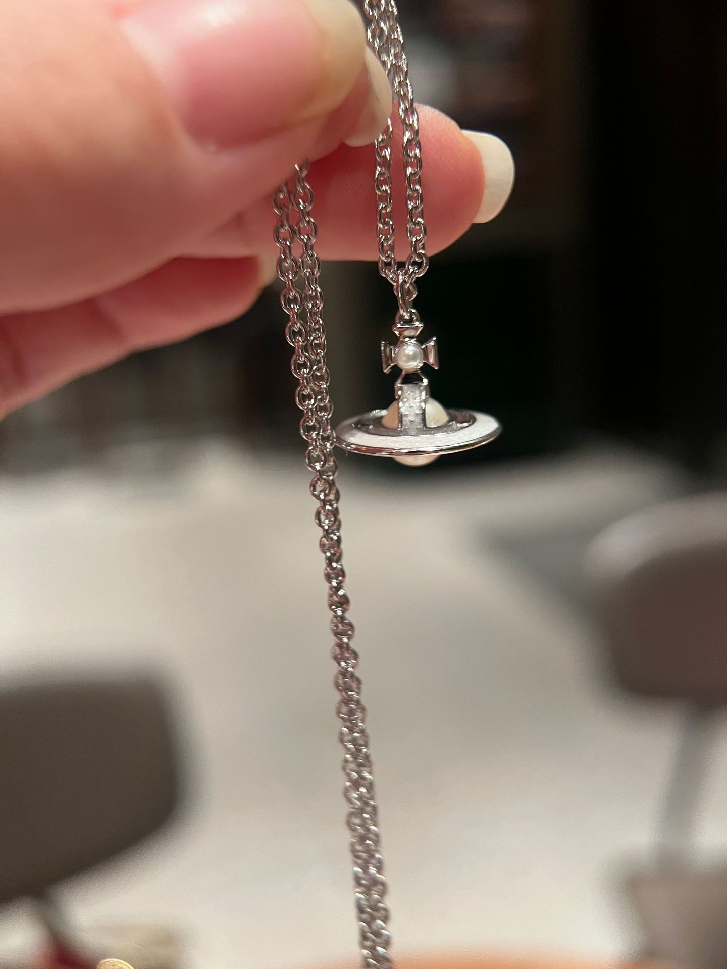 High version Queen West enamel Saturn Aviator necklace gilt orb pearl pendant girly clavicle chain