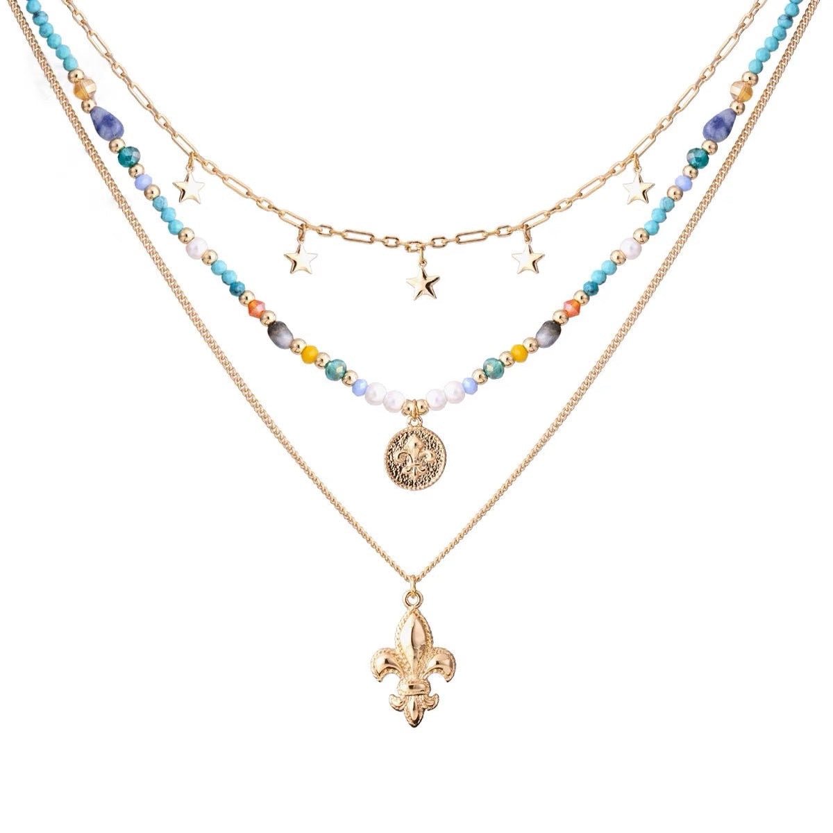 Holiday Ocean Necklace Beaded Color Set Necklace Light Luxury Original Stacked Pendant Clavicle Chain