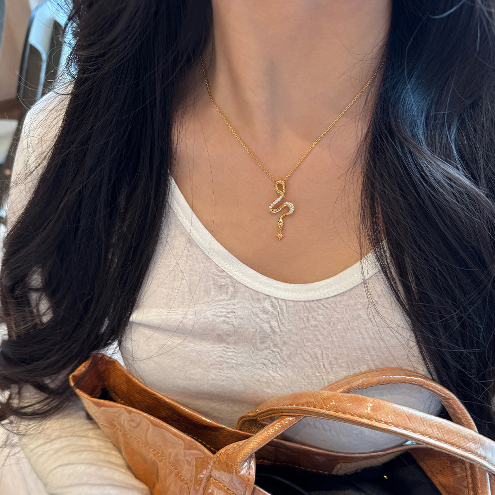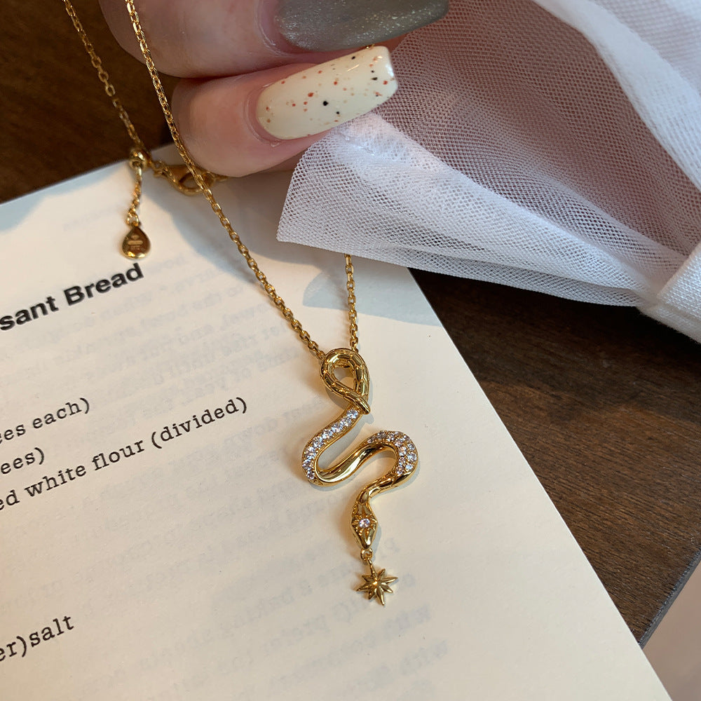 Live broadcast explosive 925 silver gold snake eight-pointed star necklace dot diamond spirit snake pendant zodiac natal year jewelry replacement
