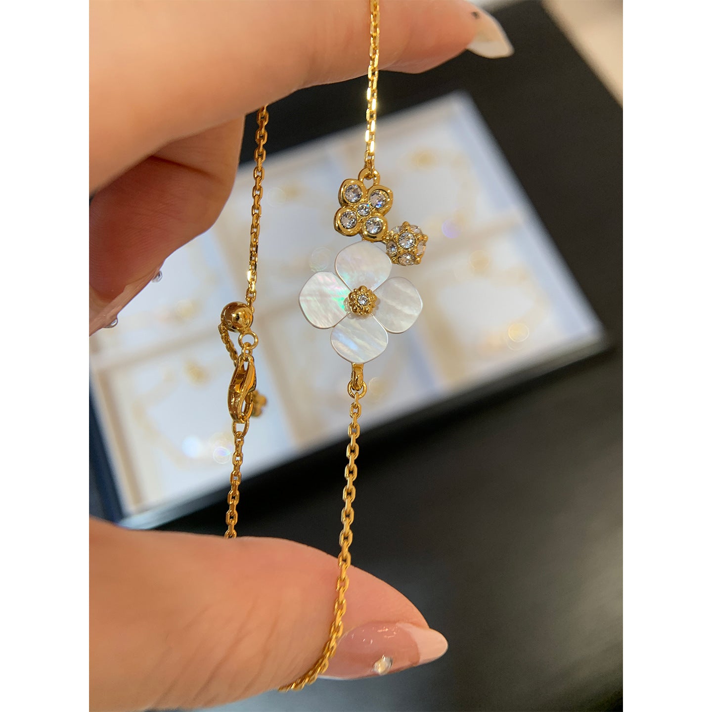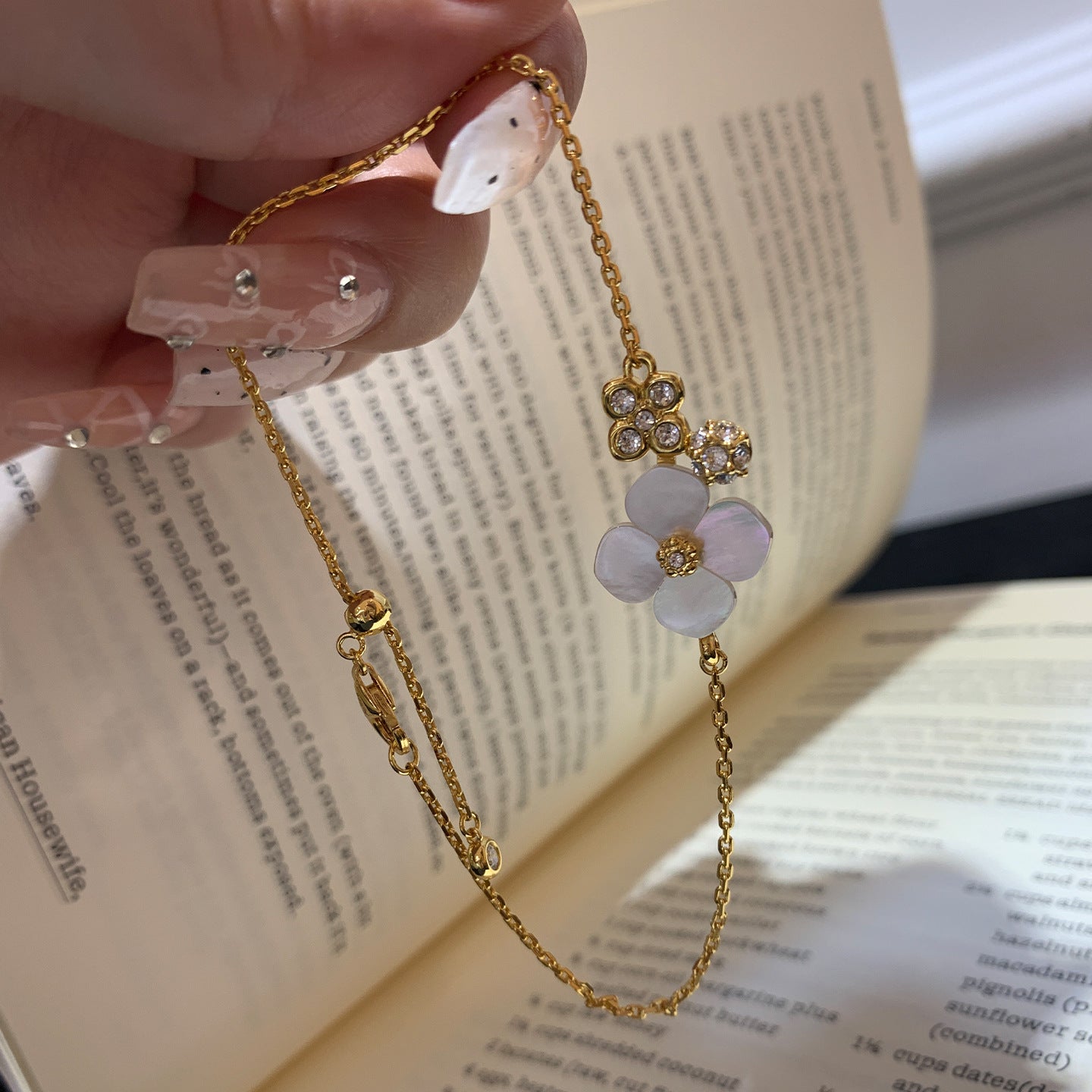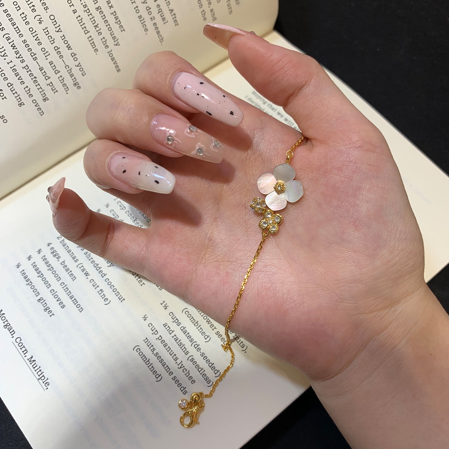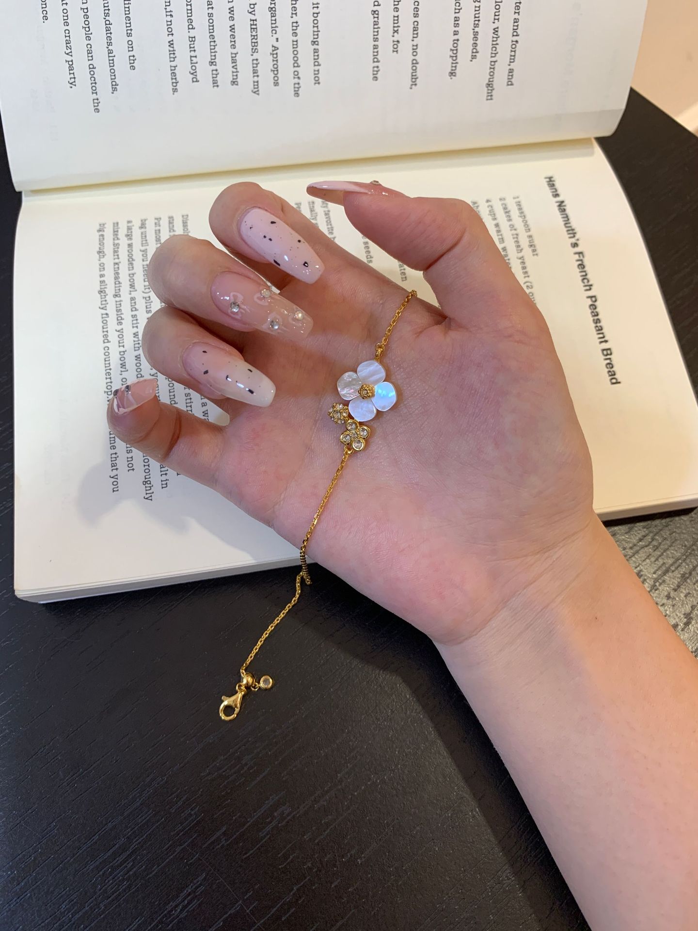 Live broadcast explosive natural white shell flower bracelet Seiko shell four-petal flower explosion flash point diamond stacking to wear versatile hand jewelry